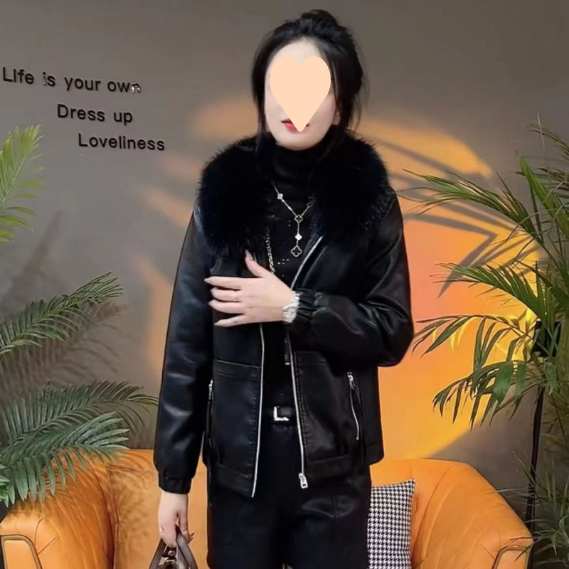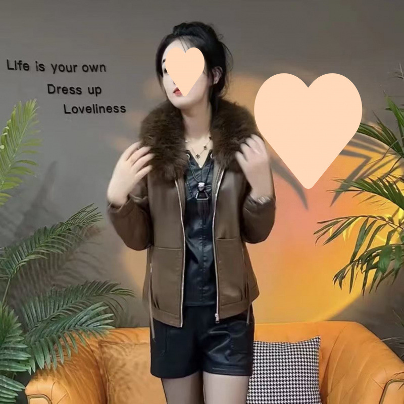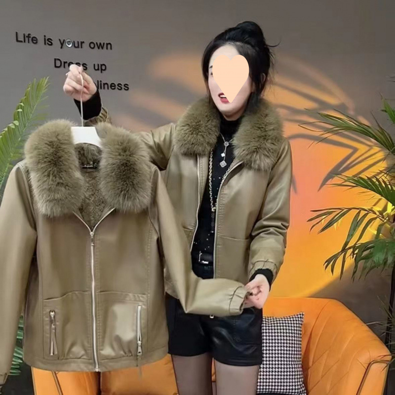 가죽 여성 기모 두꺼운 겨울 코트 2024 가을과 겨울 새로운 울 칼라 세련된 느슨한 패션 따뜻한 가죽 자켓
