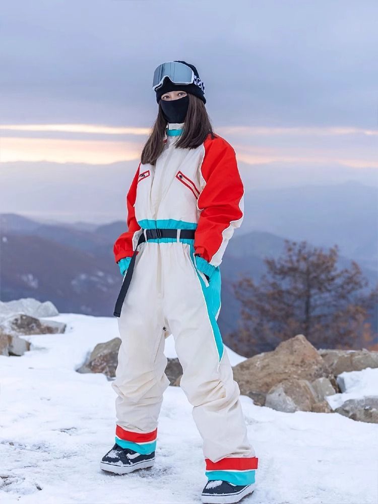 Kasheng 콘트라스트 컬러 원바디 스키 세트 여성 2024 년 겨울 새 디자인 방풍 및 방수 두꺼운 코튼 패딩 재킷 세트스토어 가기