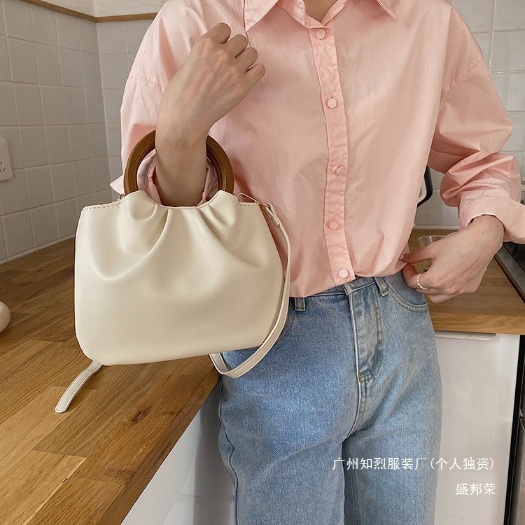 Sheng Bang Rong 핸드백 작은 Guofeng 핸드백 착용 청삼 복고풍 나무 손잡이 여성의 새로운 중국 스타일 새로운 도착스토어 가기