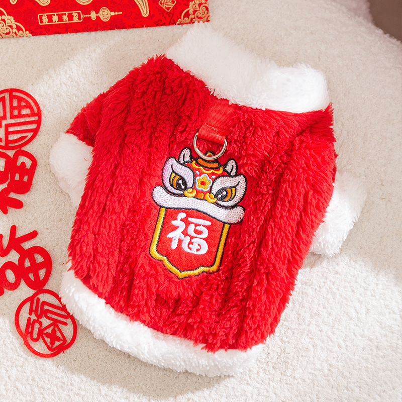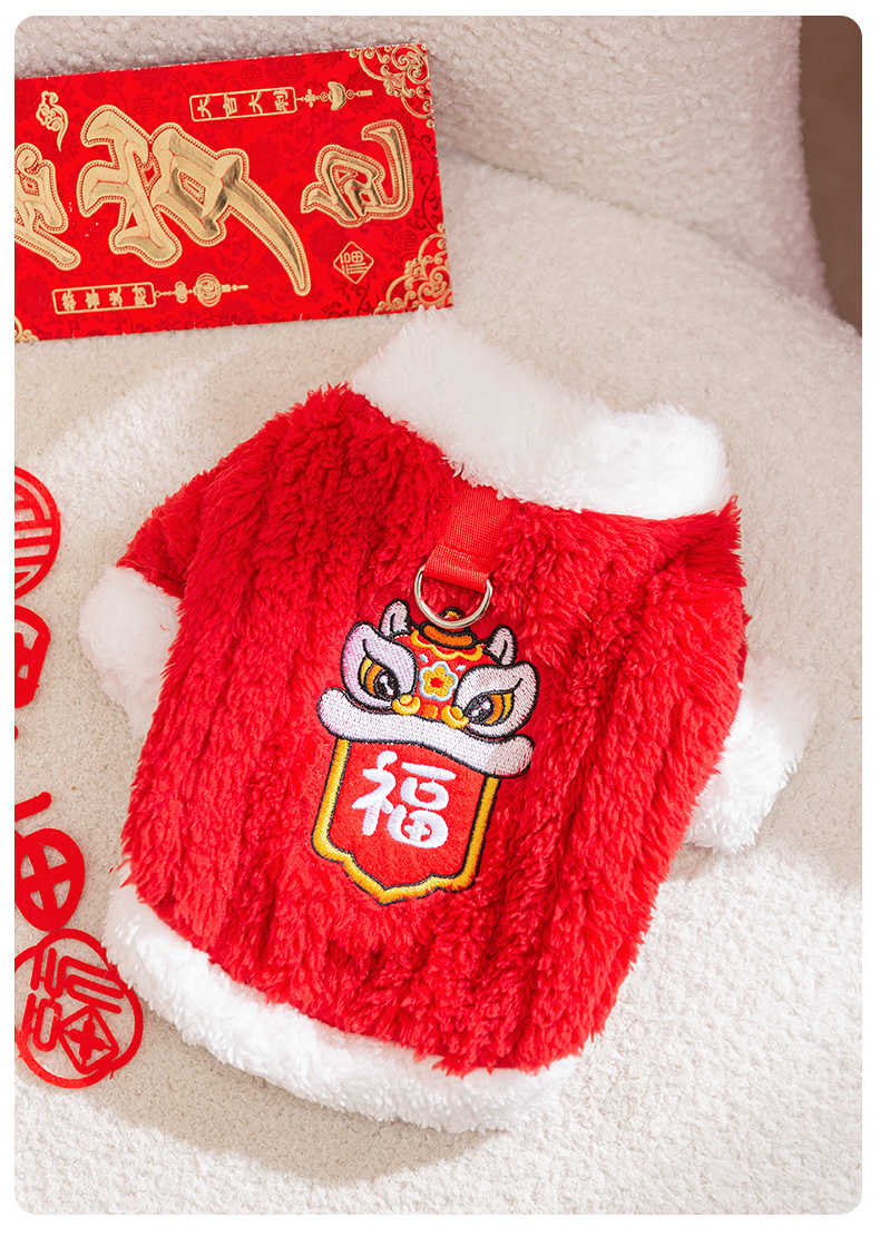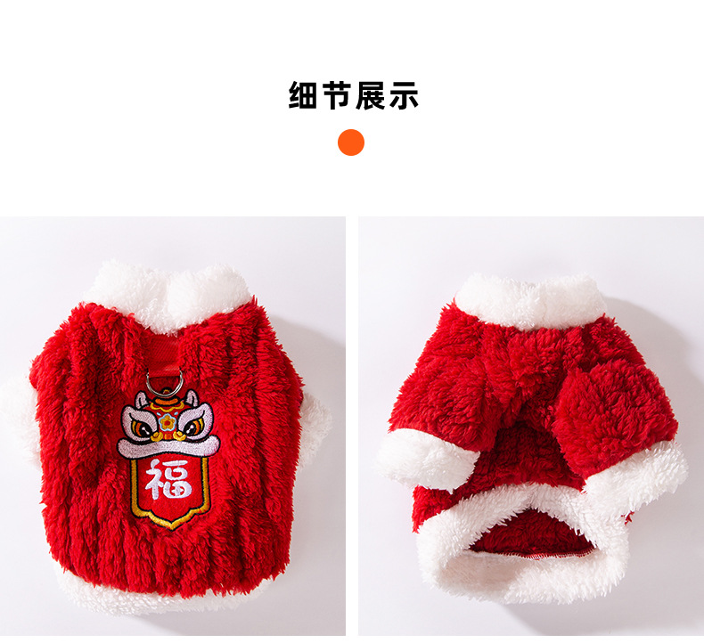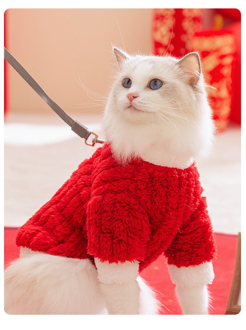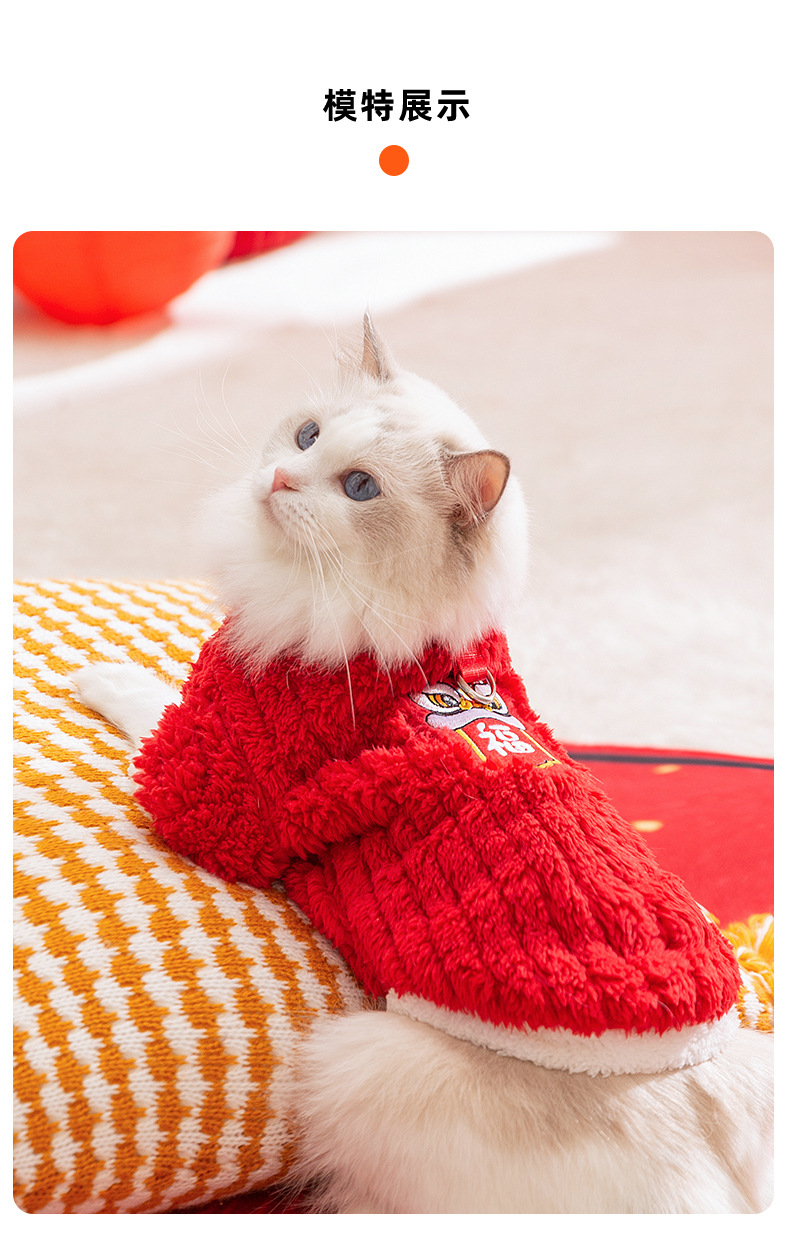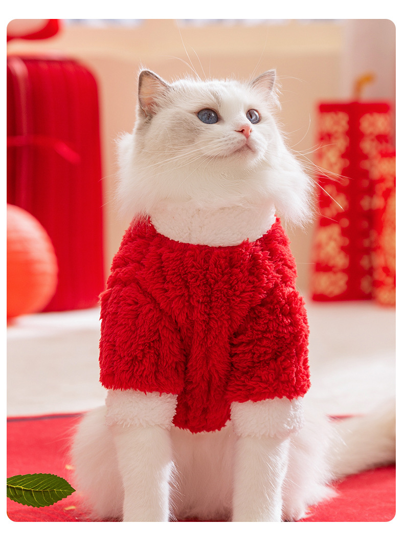 고양이 가을과 겨울 축제 신년 중국 스타일 푸에서 두 다리 벨벳 옷 중소 개 테디 애완 동물 고양이 옷스토어 가기