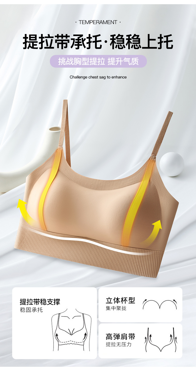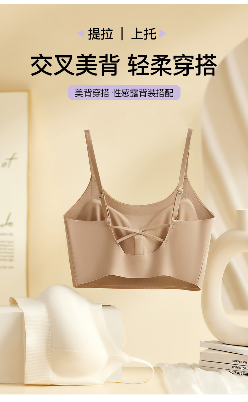 크로스백 리퀴드 파운데이션, 흔적없는 여성용 속옷, 작은 가슴 푸쉬업, 통기성 아이스 실크 고정 컵 튜브탑 브라, 얇은 여름스토어 가기