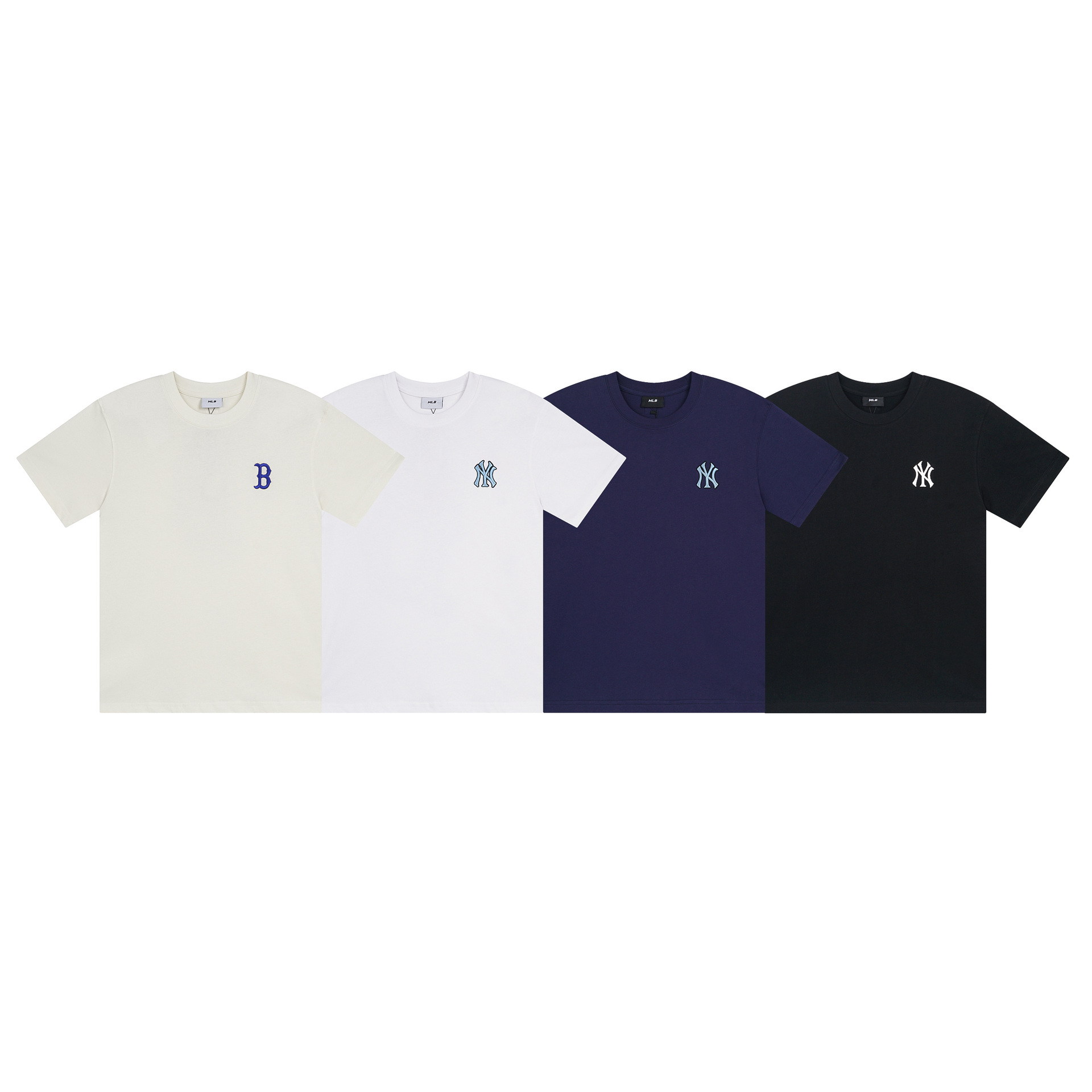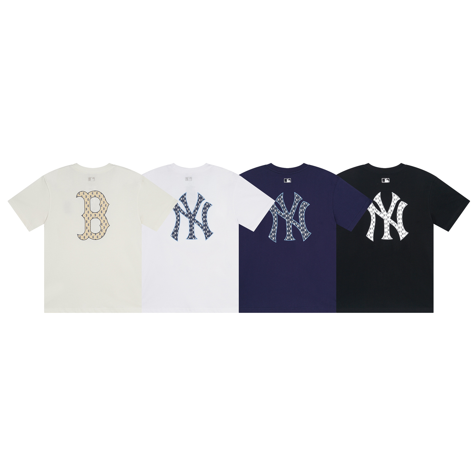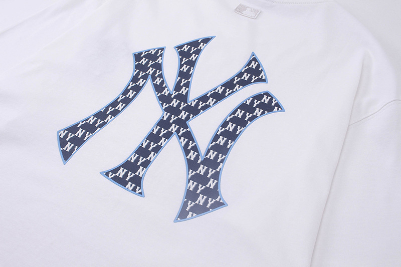 높은 버전. MLB 사전 시리즈 인쇄 NY 한국 스타일 다재다능한 캐주얼 대형 로고 새로운 커플 짧은 소매 티셔츠스토어 가기