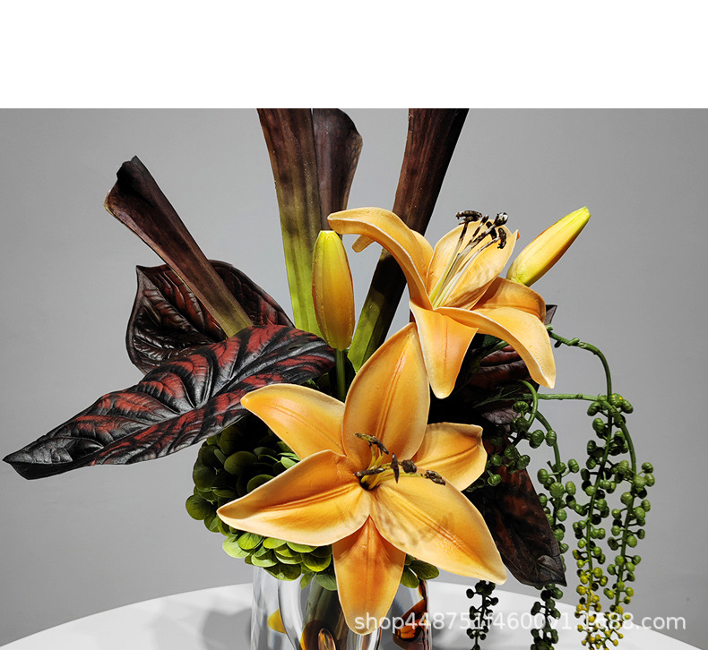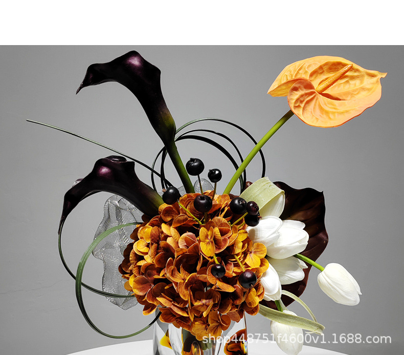 새로운 중국 스타일의 인공 꽃 예술 칼라 릴리 튤립 가짜 꽃 하이 퀄리티 데스크탑 클럽 커피 테이블 장식 디자인 느낌