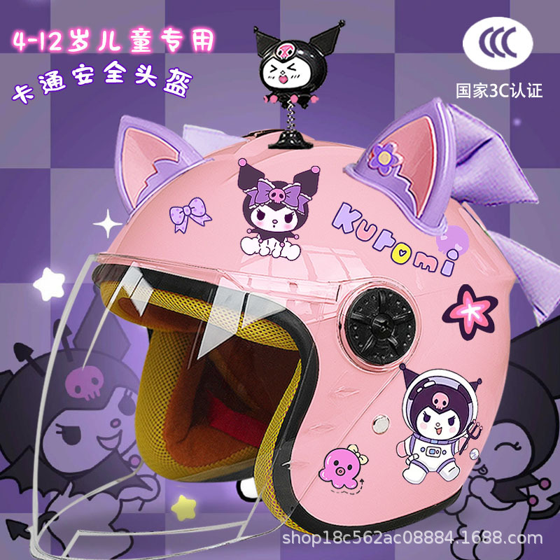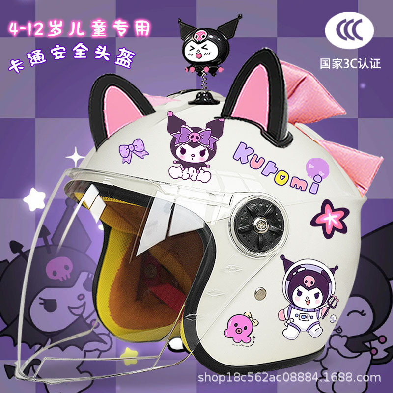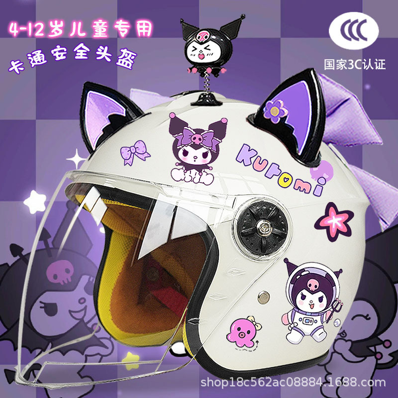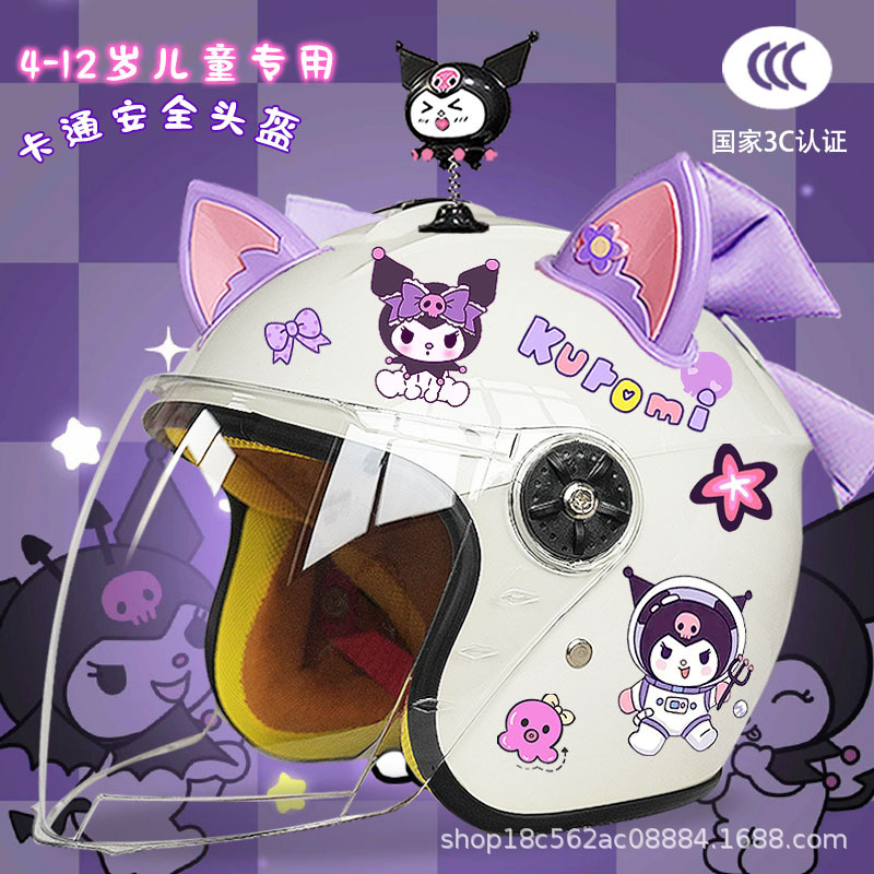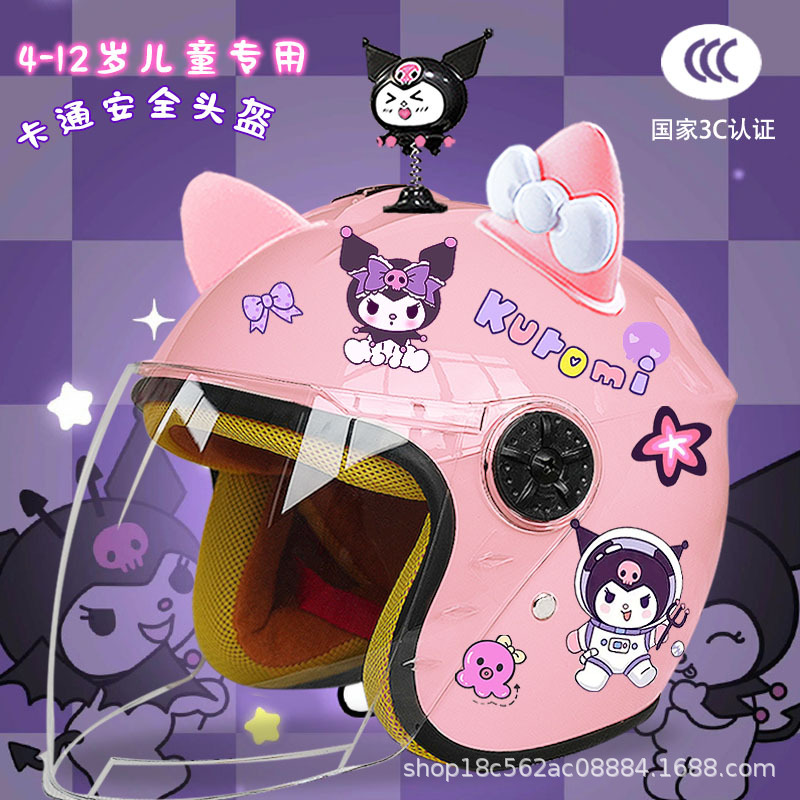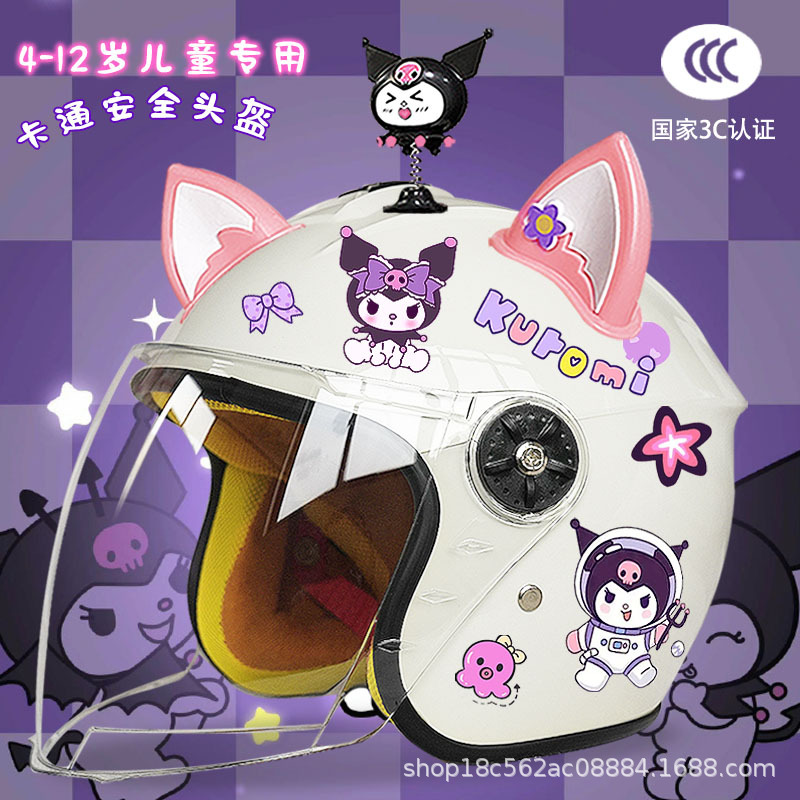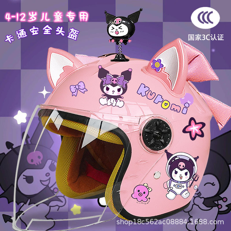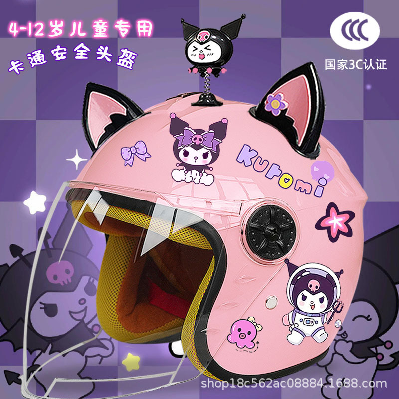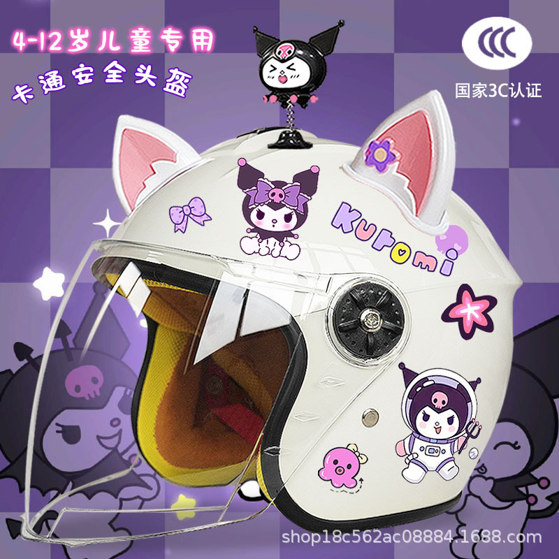 가을과 겨울 어린이 전기 자동차 헬멧 따뜻한 귀여운 Kulomi 하프 헬멧 오토바이 풀 헬멧 3C 헬멧