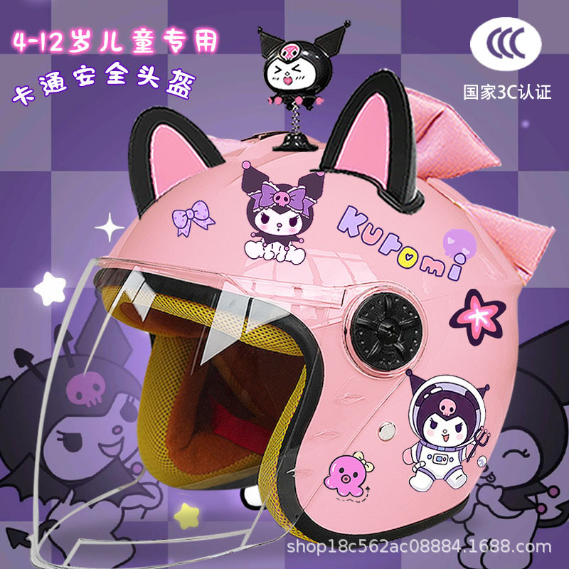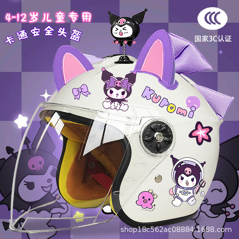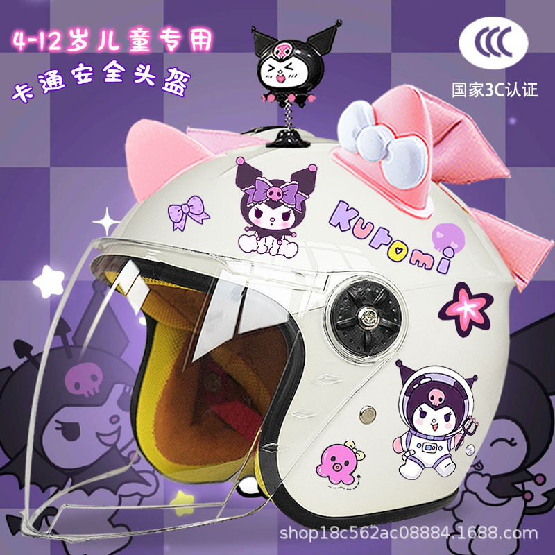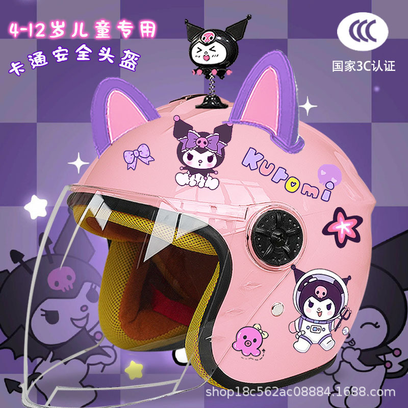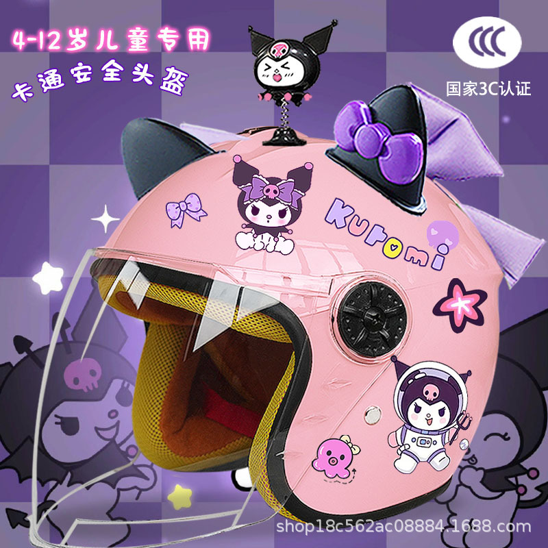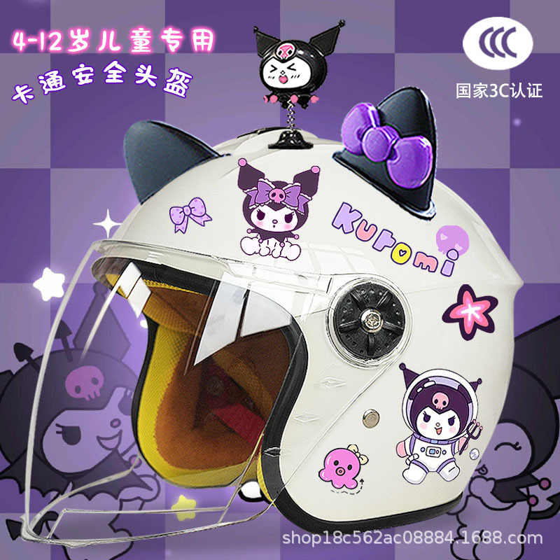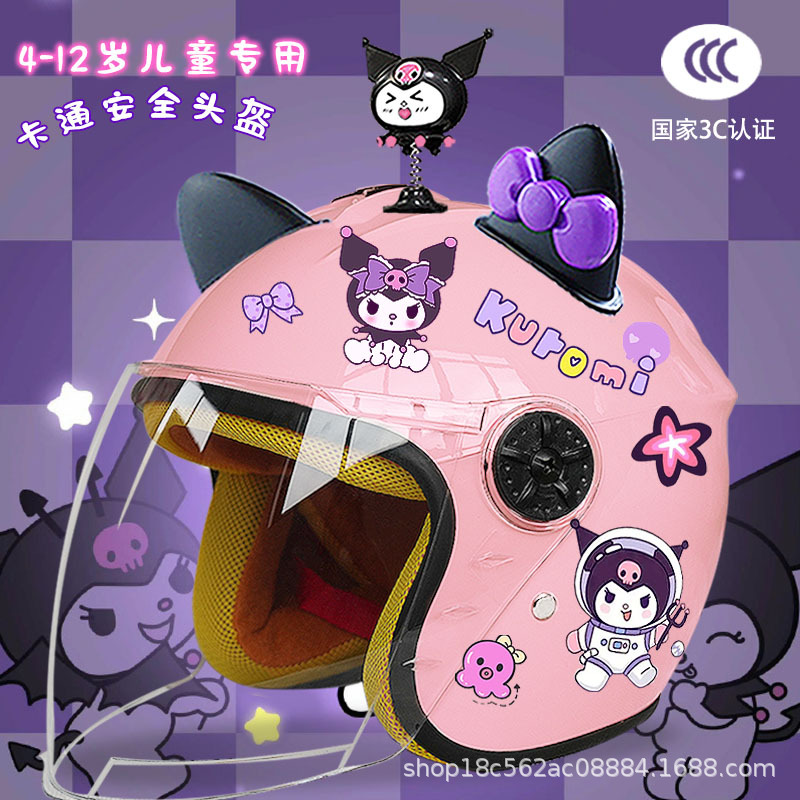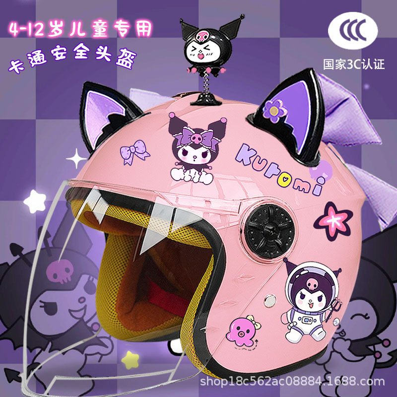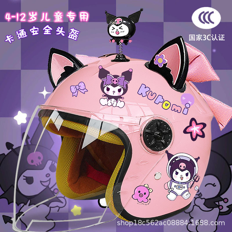 가을과 겨울 어린이 전기 자동차 헬멧 따뜻한 귀여운 Kulomi 하프 헬멧 오토바이 풀 헬멧 3C 헬멧