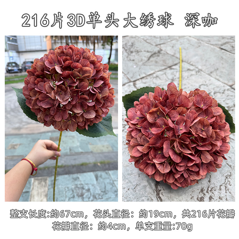 • 5송이 3D 빅 플라워 수국 (갈색)