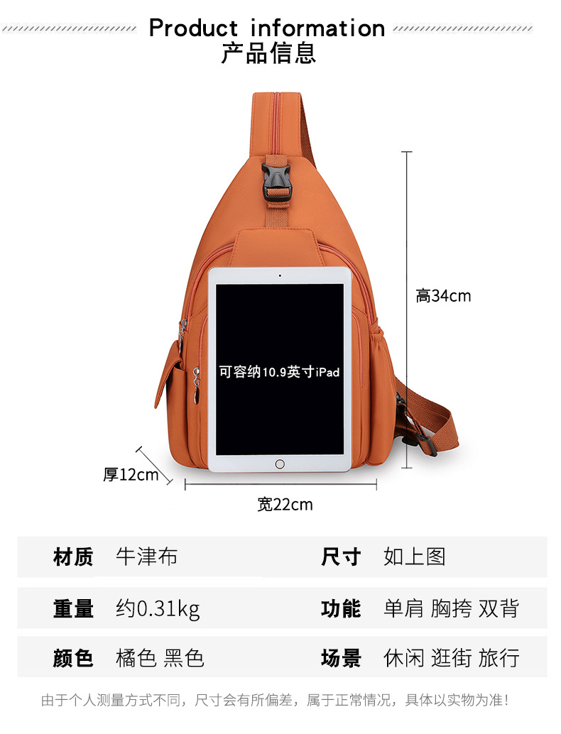 패션 가슴 가방 배낭 패션 트렌드 2024 새로운 여성 가슴 가방 캐주얼 안티 튀는 가방 다기능 가슴 가방스토어 가기