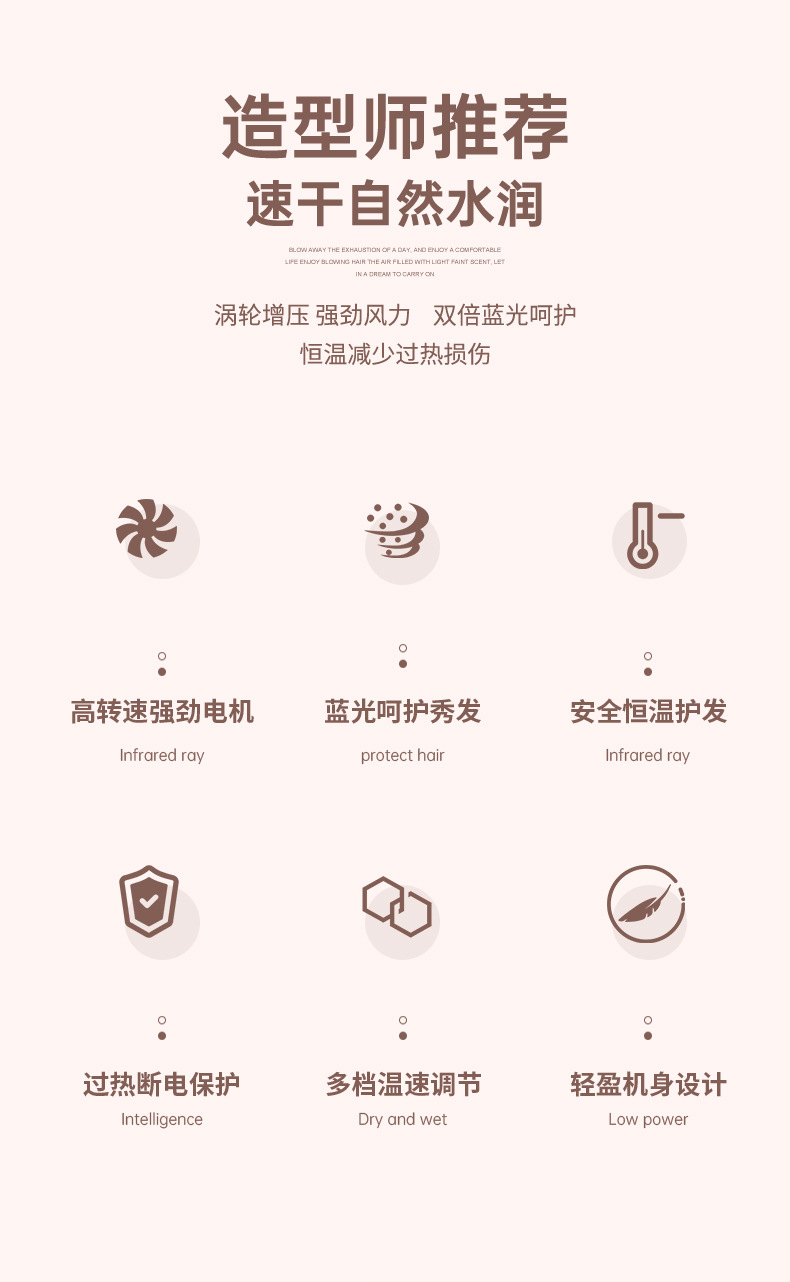 26년 신형 헤어드라이어 가정용 블루라이트 강풍 속건 6단계 풍속 미용실용 고출력 헤어드라이어스토어 가기
