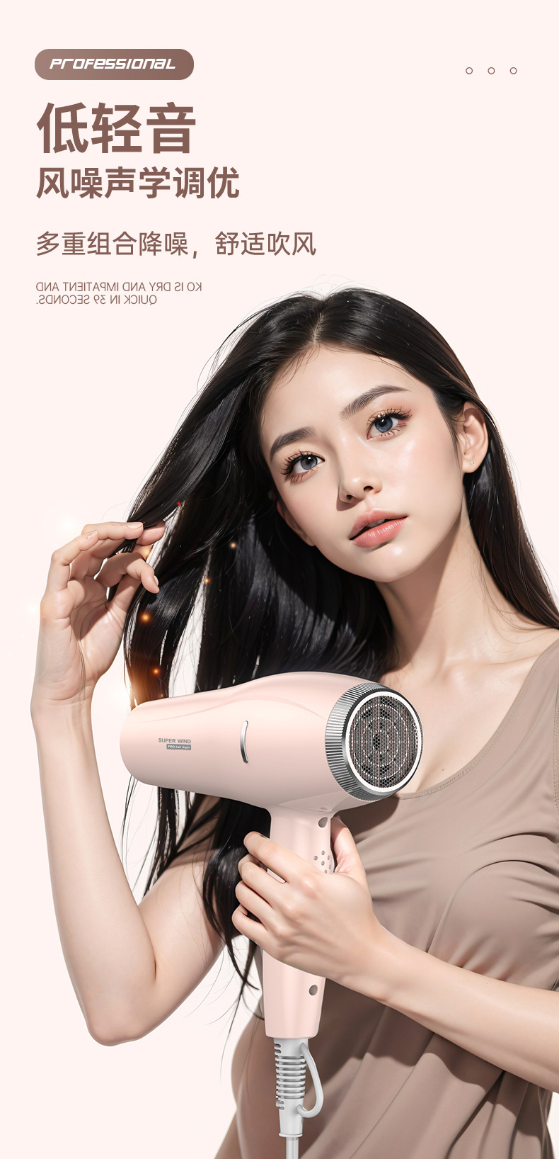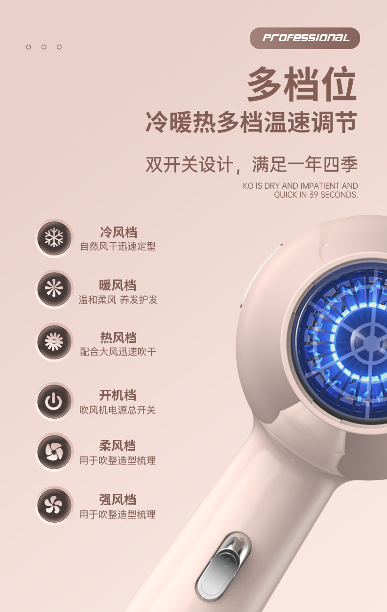 26년 신형 헤어드라이어 가정용 블루라이트 강풍 속건 6단계 풍속 미용실용 고출력 헤어드라이어