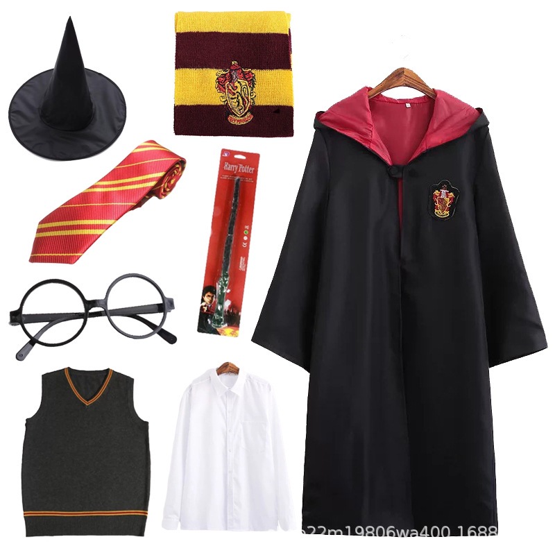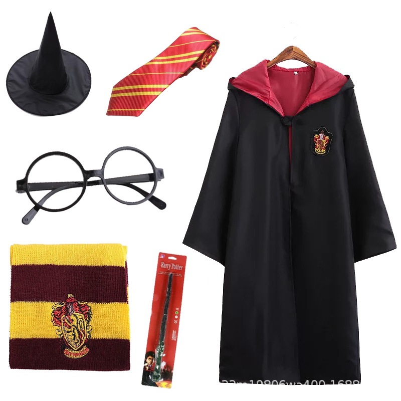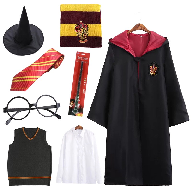 • 그리핀도르 로브 + 그레이 스커트 + 안경 + 마술 지팡이 + 넥타이 + 스카프 + 모자 + 목걸이