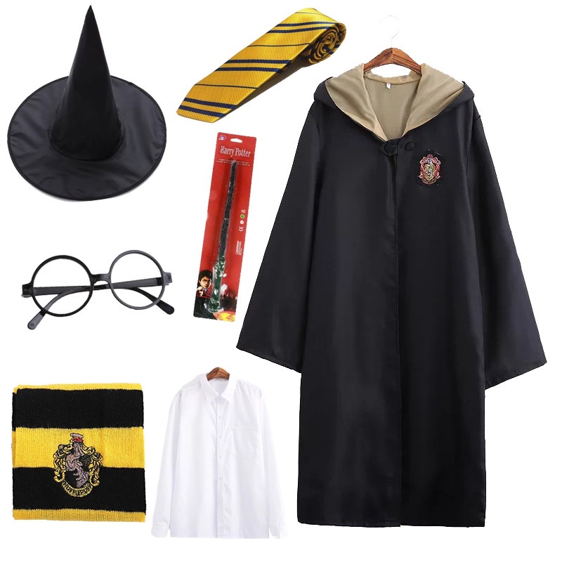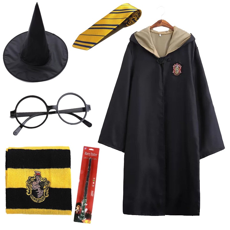 • 후플푸프 가운 + 넥타이 + 스카프 + 안경 + 무광 마술 지팡이