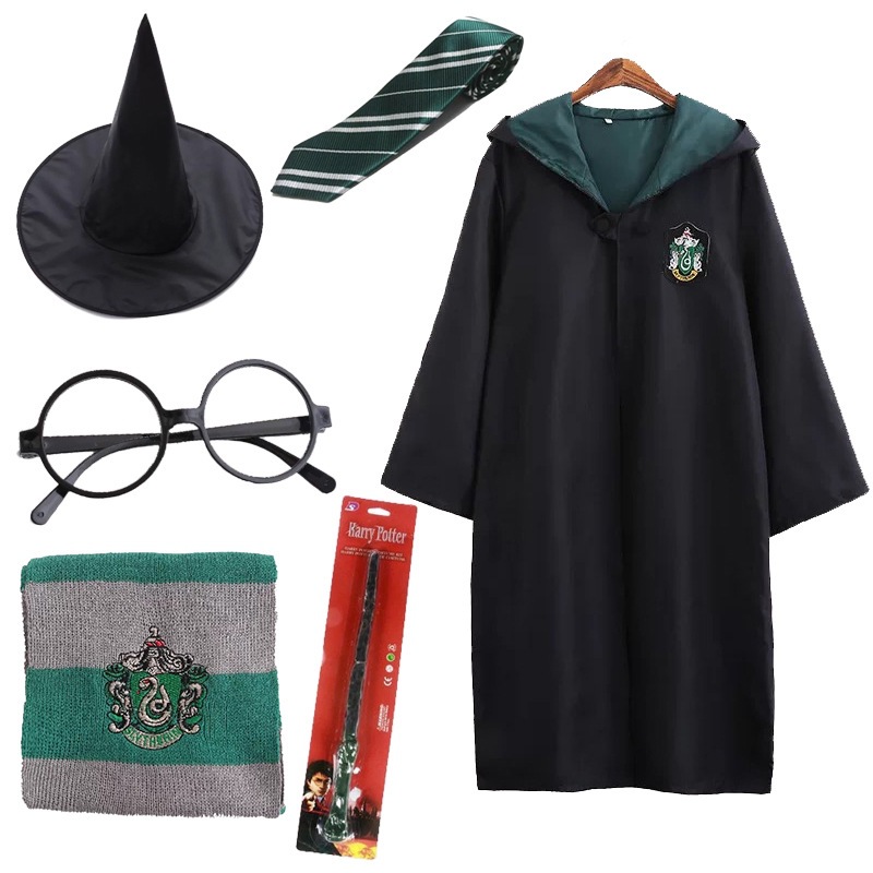 • 슬리데린 로브 + 넥타이 + 스카프 + 안경 + 무광 마술 지팡이