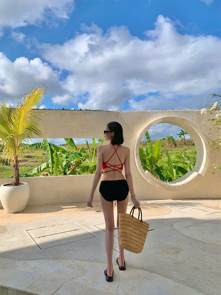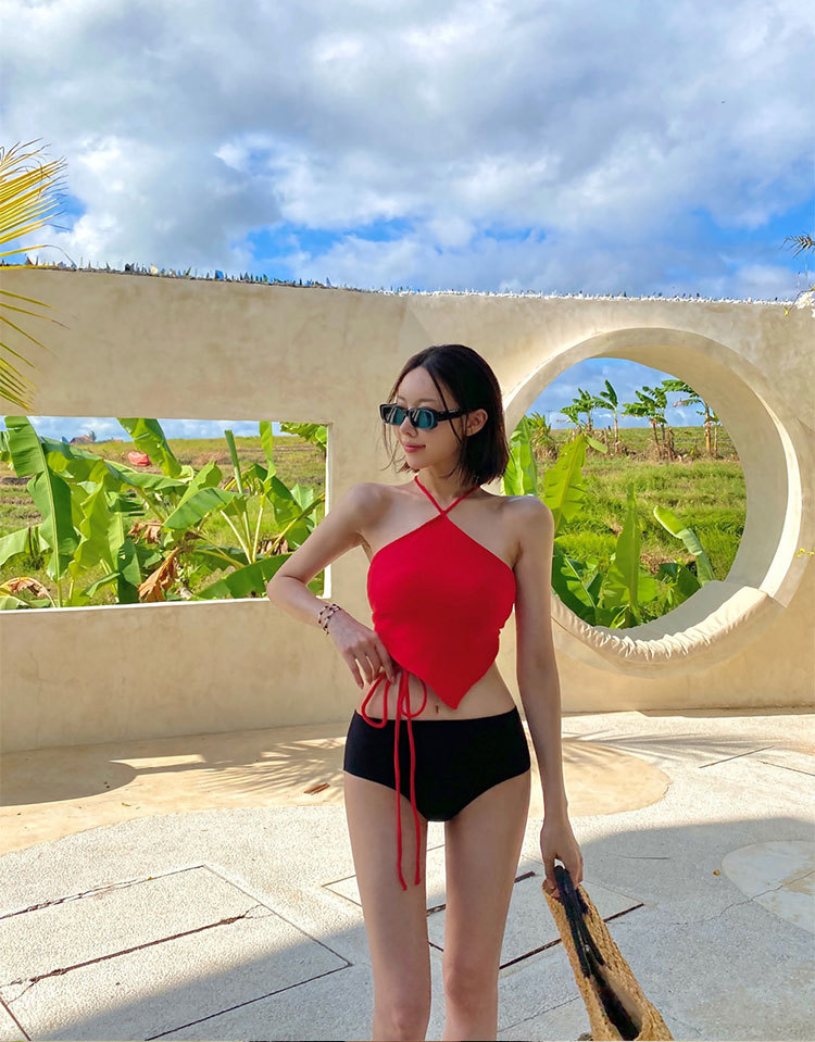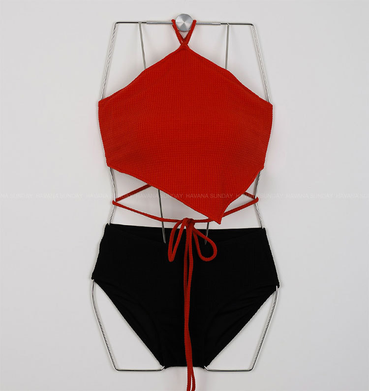 2025 한국 신형 대외 무역 배꼽 벨트 섹시한 홀터넥 스트랩 스플릿 비키니 하이 웨이스트 여성용 온천 크로스 보더 수영복스토어 가기