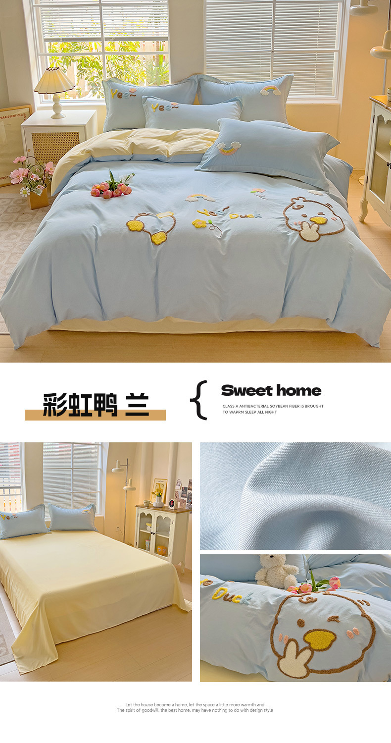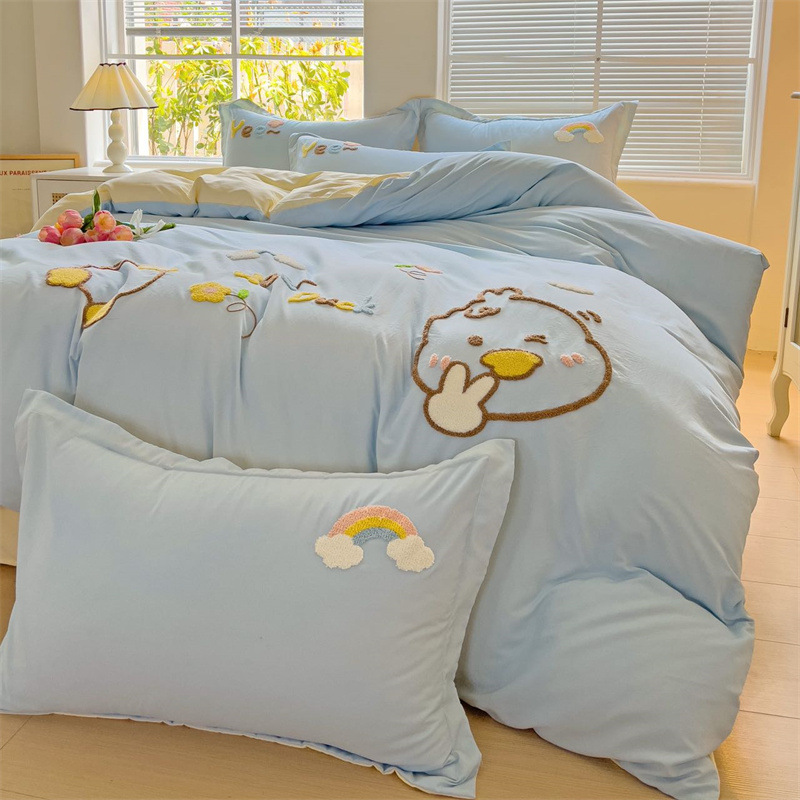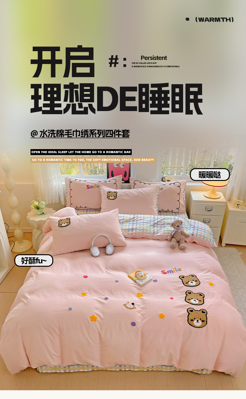 폭발 구름면 타월 자수 4 종 세트 유아 침구는 나체 학생 기숙사 3 종 세트 도매스토어 가기