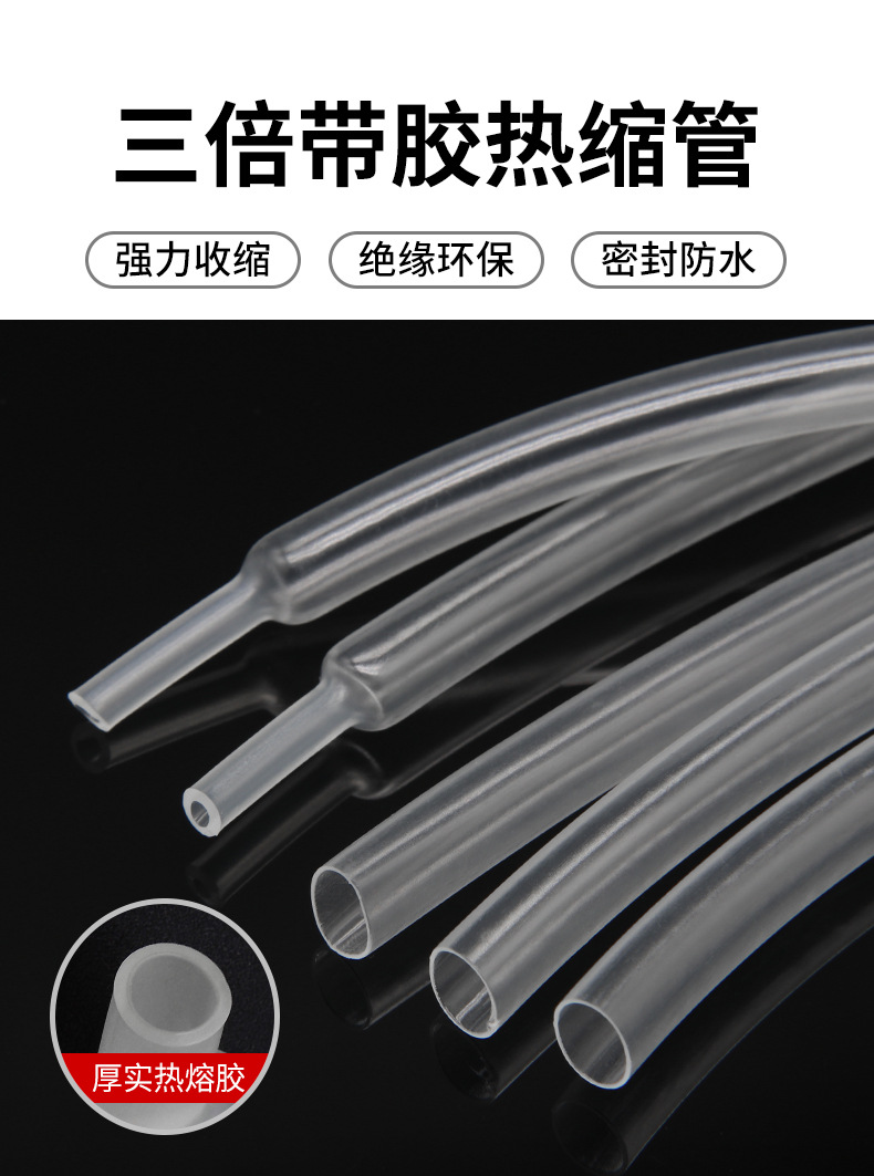 트리플 투명 이중 벽 열 수축 튜브 접착 절연 방수 두꺼운 벽 높은 수축 이중 벽 튜브 도매스토어 가기