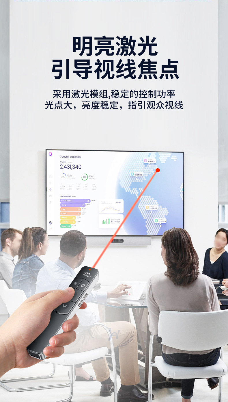 레이저 펜 다기능 플립 펜 충전 PPT 데모 비즈니스 교육 연설 붉은 빛 원격 제어 펜 도매 제조 업체