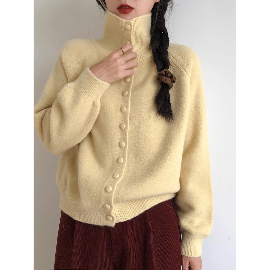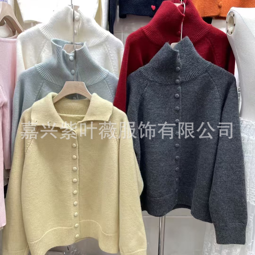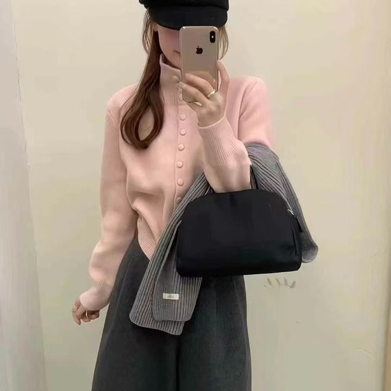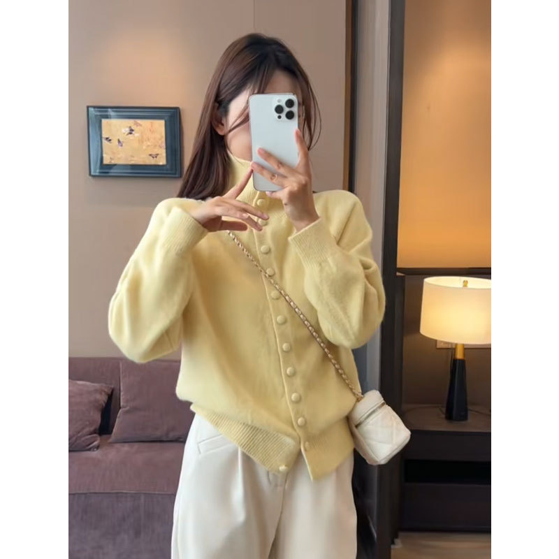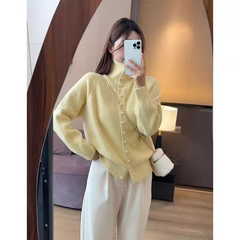 2025년 신상 가을 겨울 한국 스타일 시크하고 고급스러운 작은 프렌치 스타일 니트 탑 숏 스웨터 여성용스토어 가기
