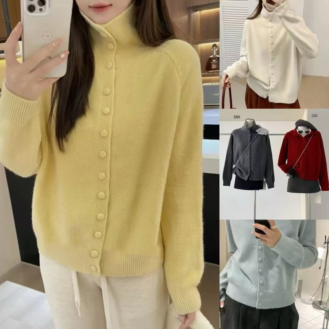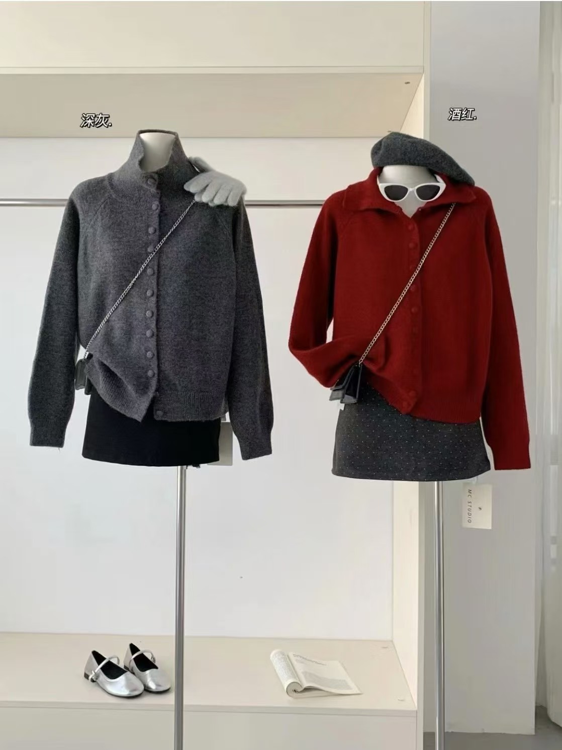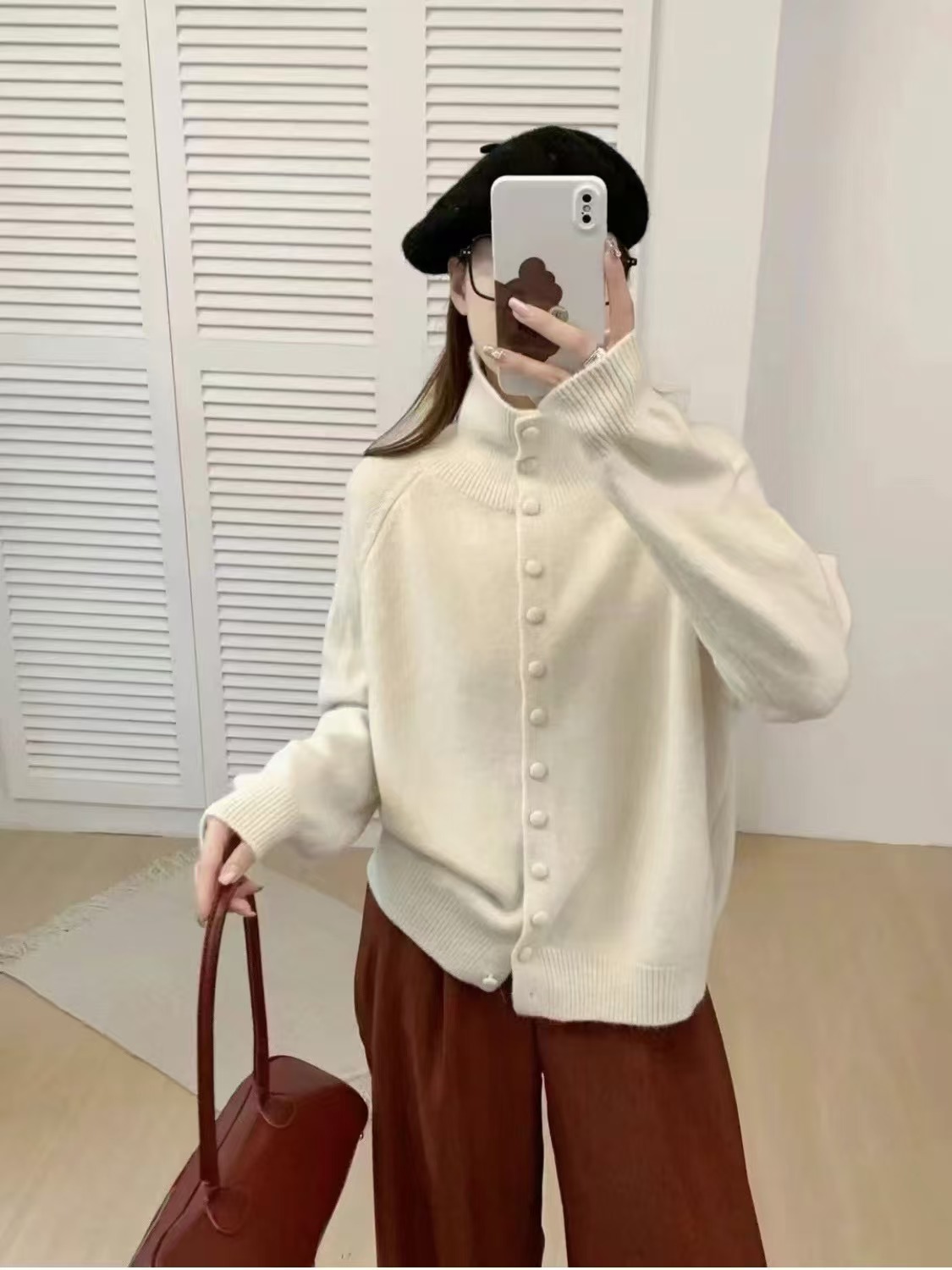2025년 신상 가을 겨울 한국 스타일 시크하고 고급스러운 작은 프렌치 스타일 니트 탑 숏 스웨터 여성용스토어 가기