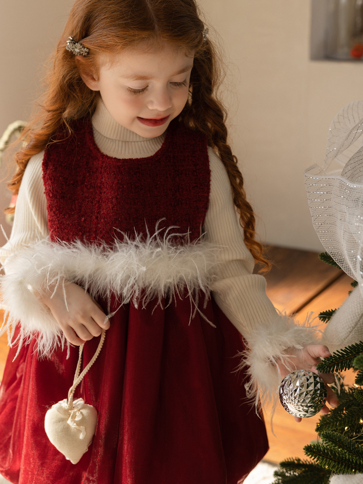 24 어린이 겨울 새 스타일 두꺼운 조끼 원피스 소녀의 하이 세트 토끼 모피 원피스 소녀의 달콤한 생일 공주 원피스스토어 가기