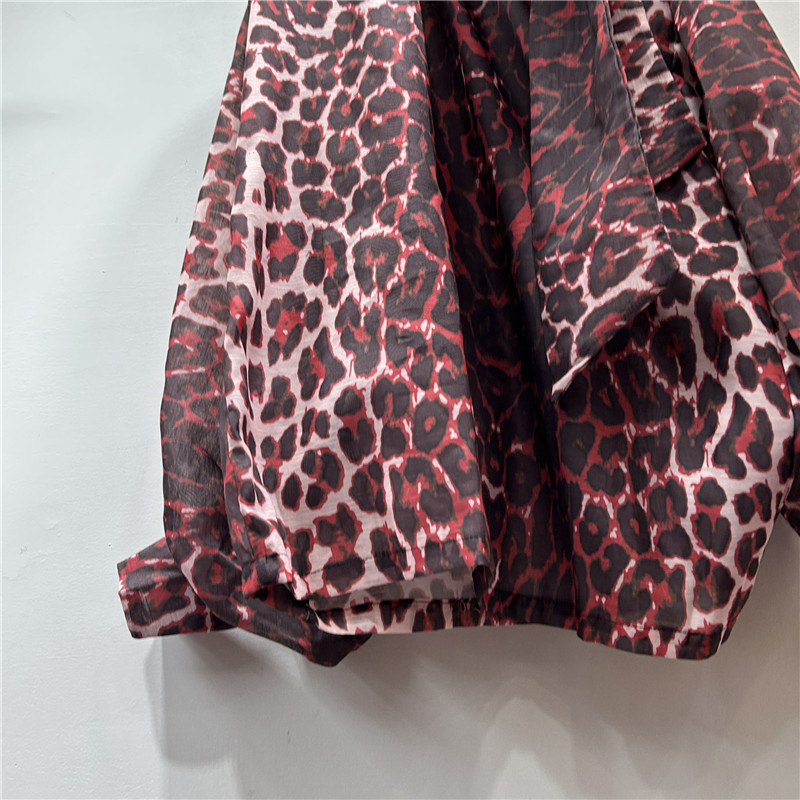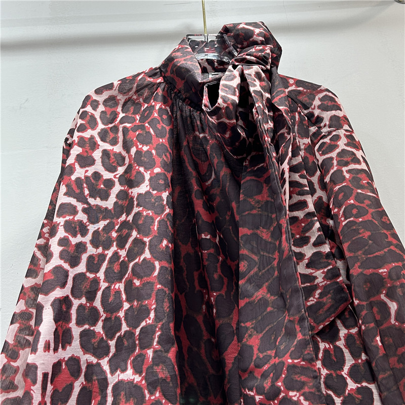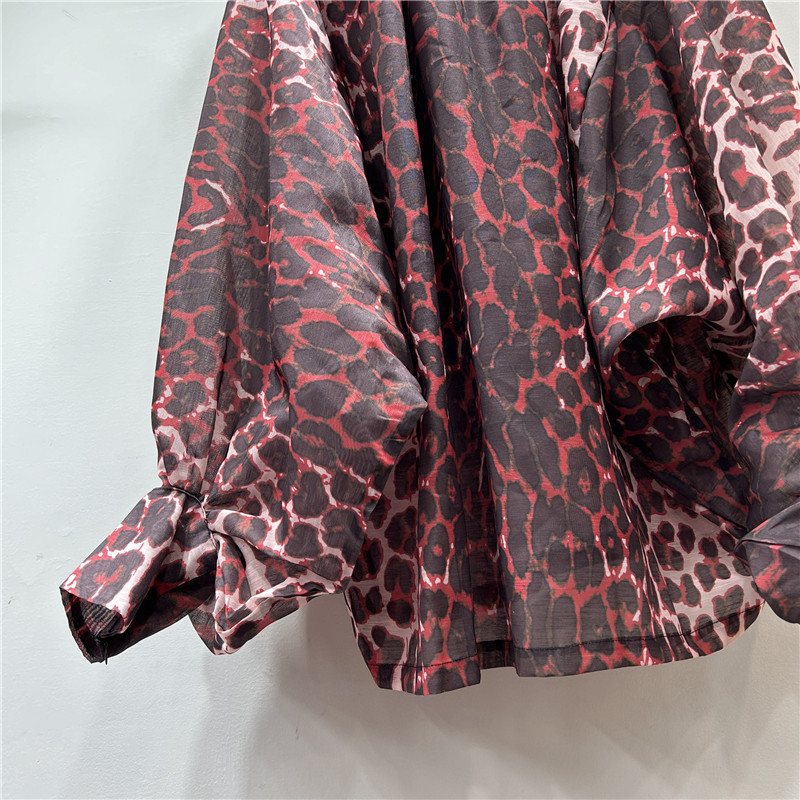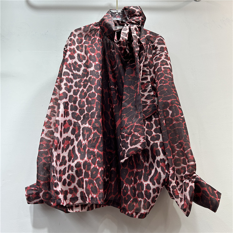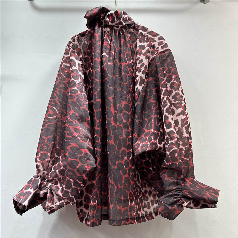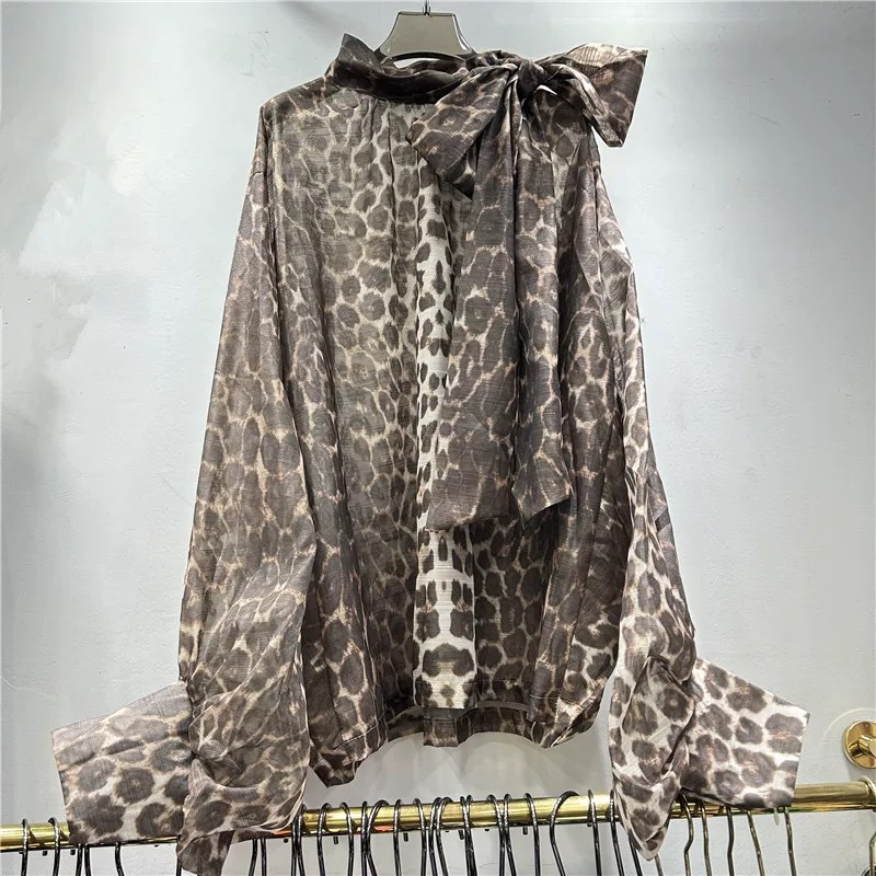 독특한 거리 레오파드 무늬 레이스 업 큰 나비 과장된 등불 긴팔 불규칙한 풀오버 셔츠 이른 가을 유행 새로운 스타일스토어 가기