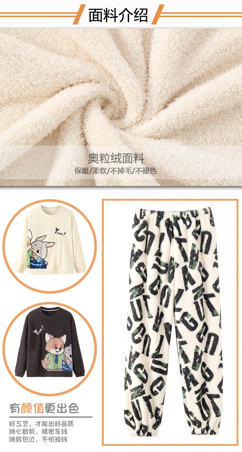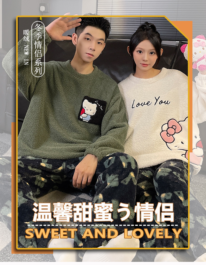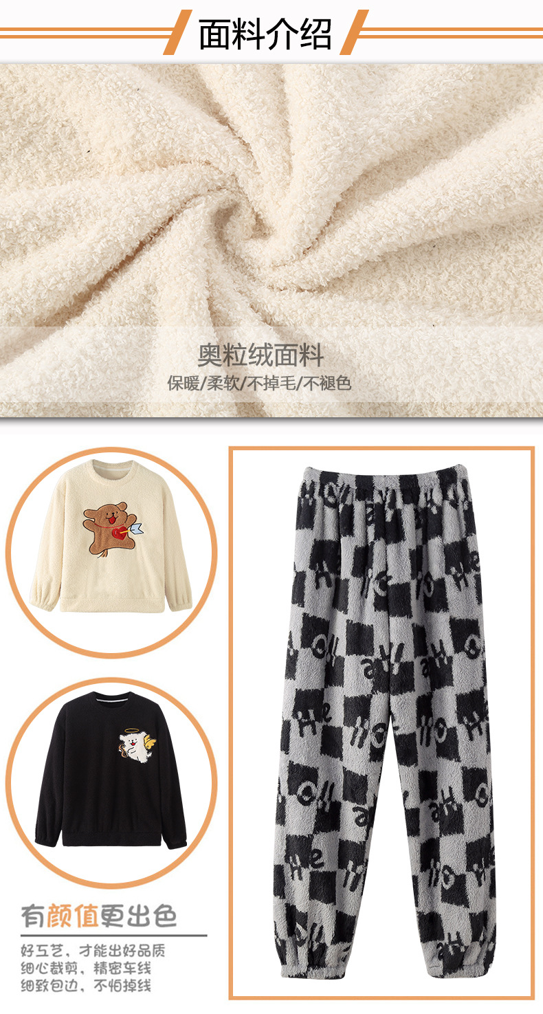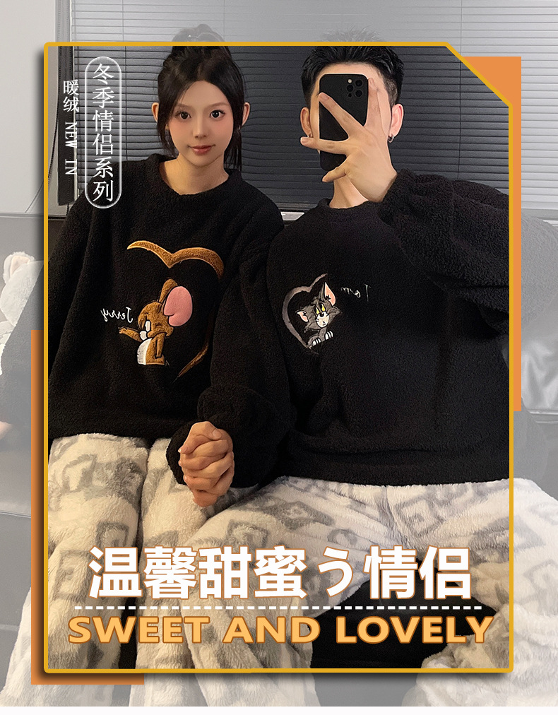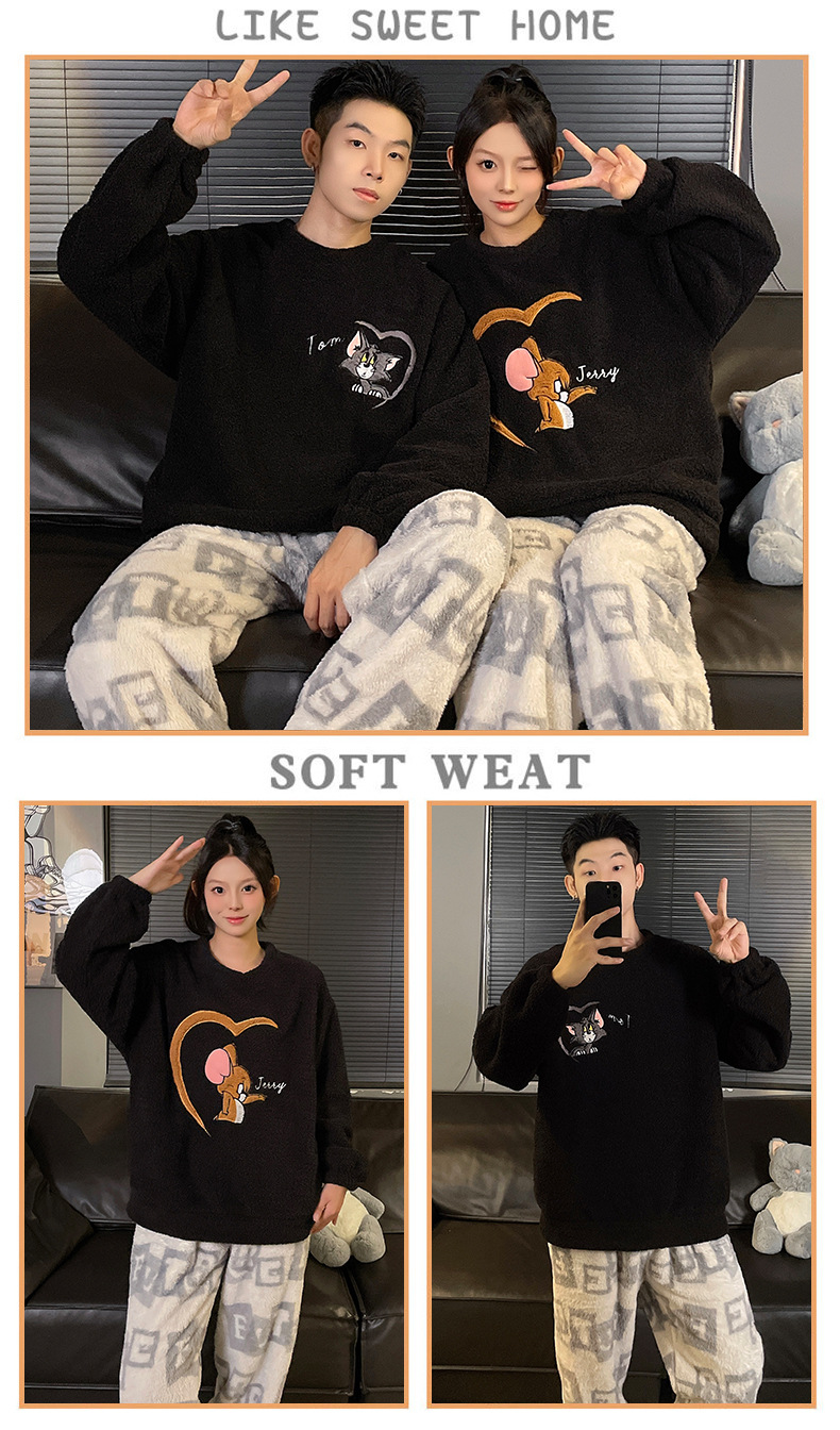 산호 벨벳 커플 잠옷 여성의 가을과 겨울 기모 두꺼운 만화 귀여운 플란넬 남성 홈 의류 세트스토어 가기