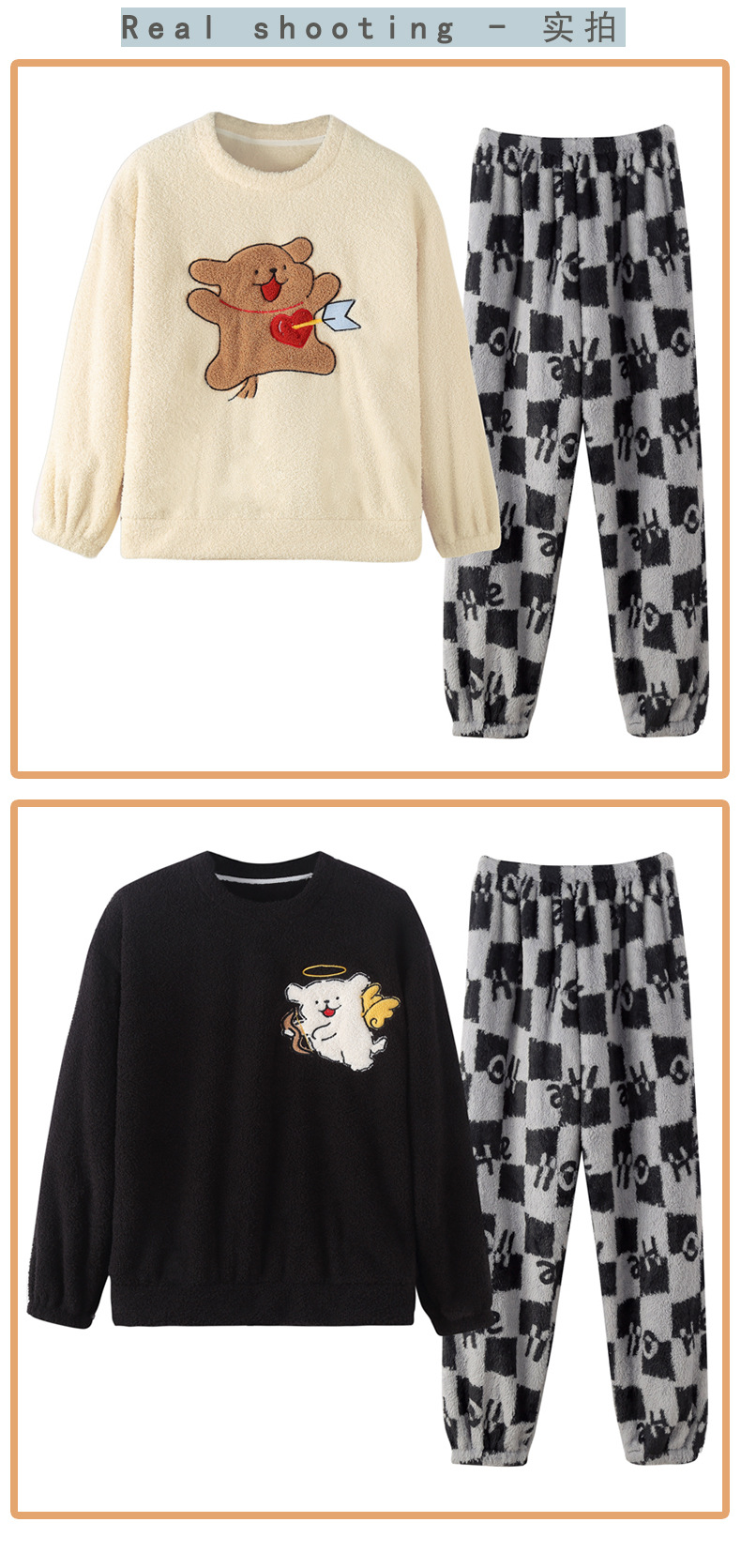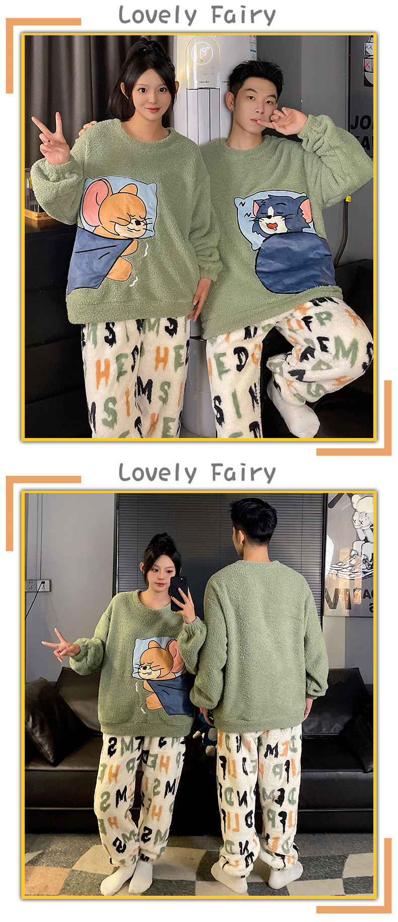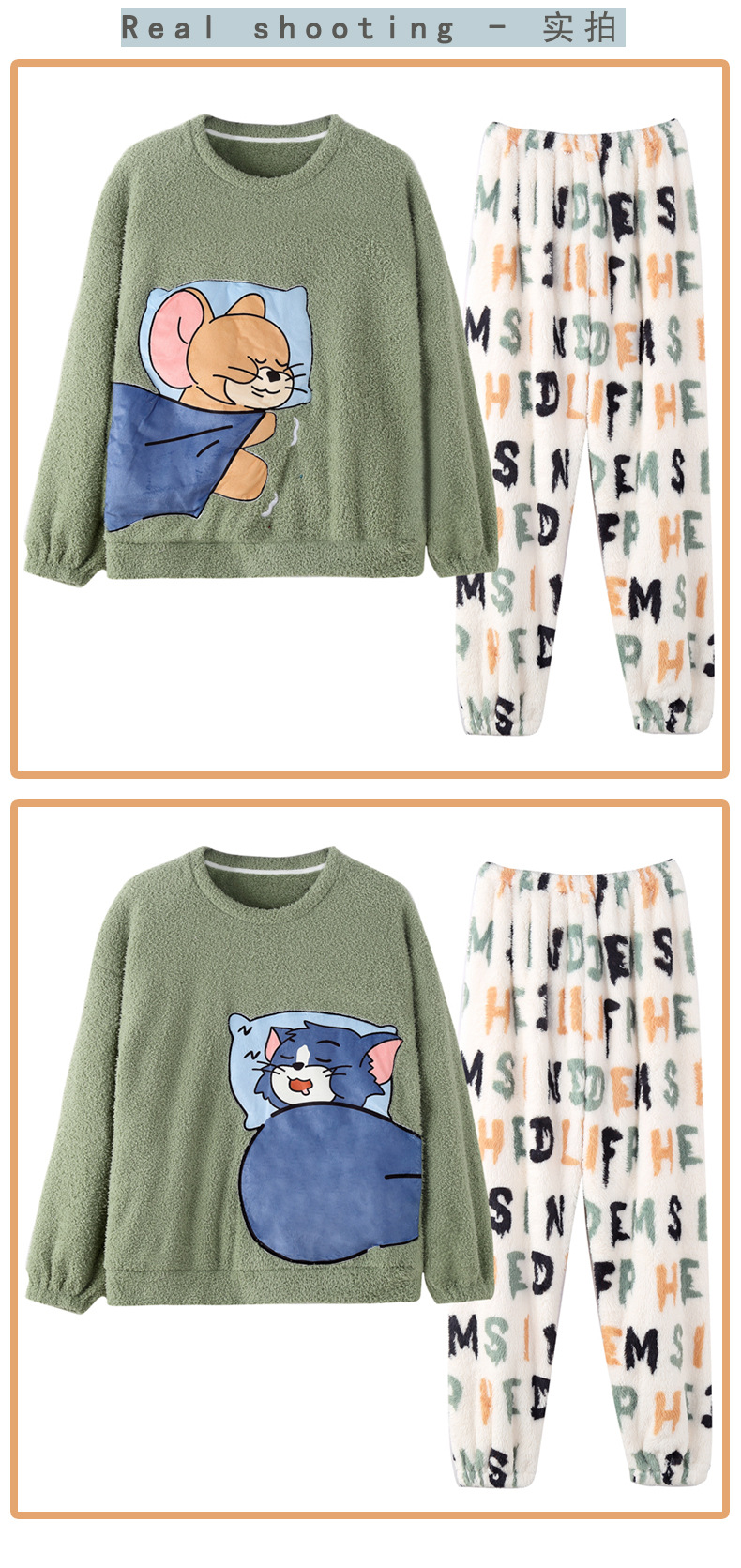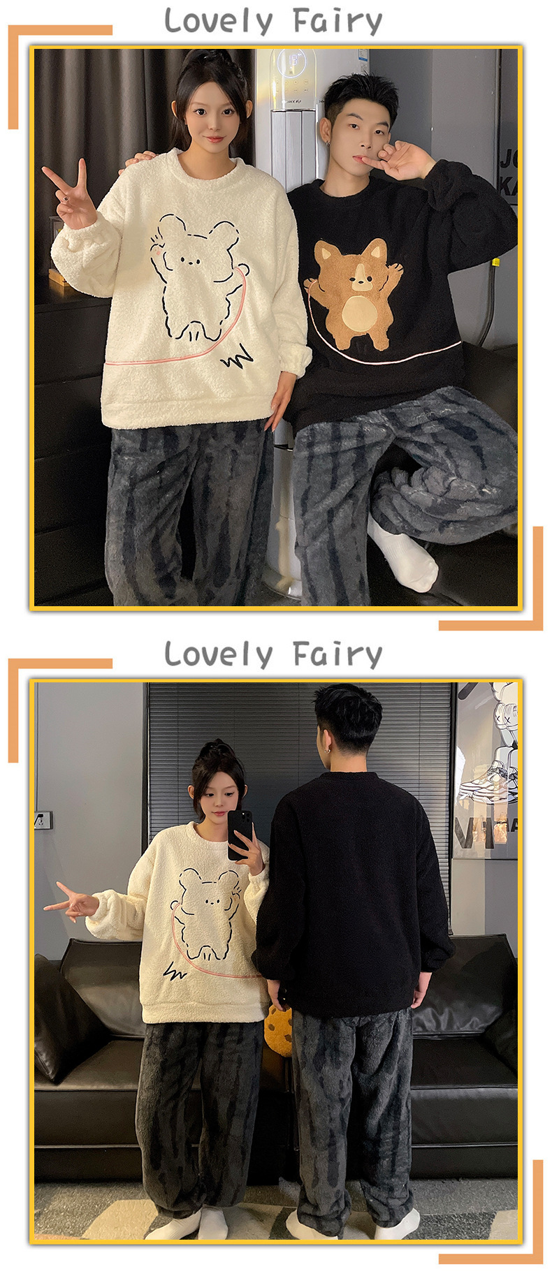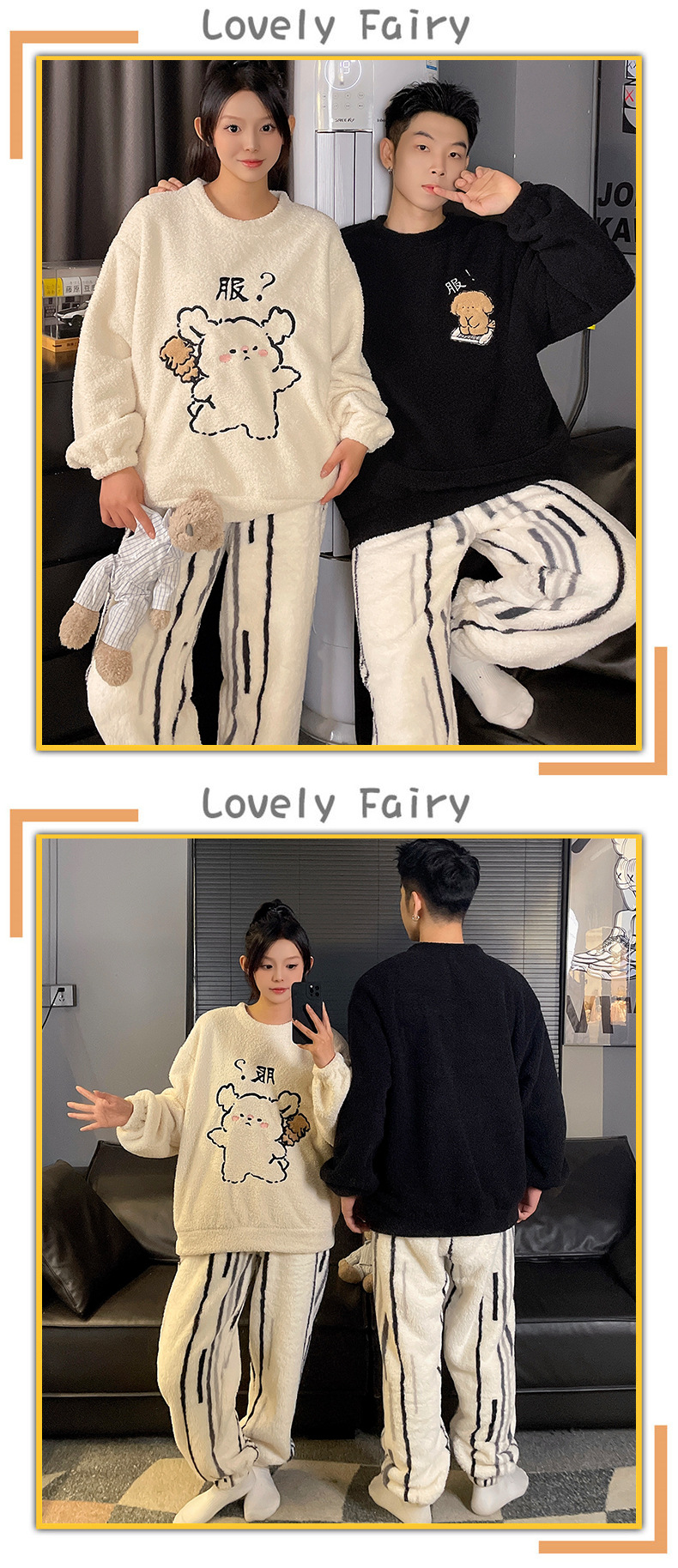 산호 벨벳 커플 잠옷 여성의 가을과 겨울 기모 두꺼운 만화 귀여운 플란넬 남성 홈 의류 세트스토어 가기
