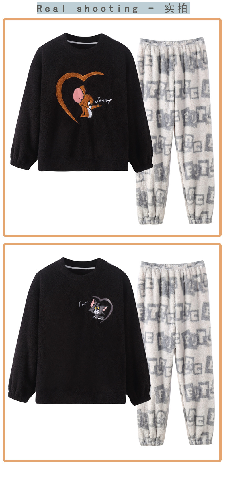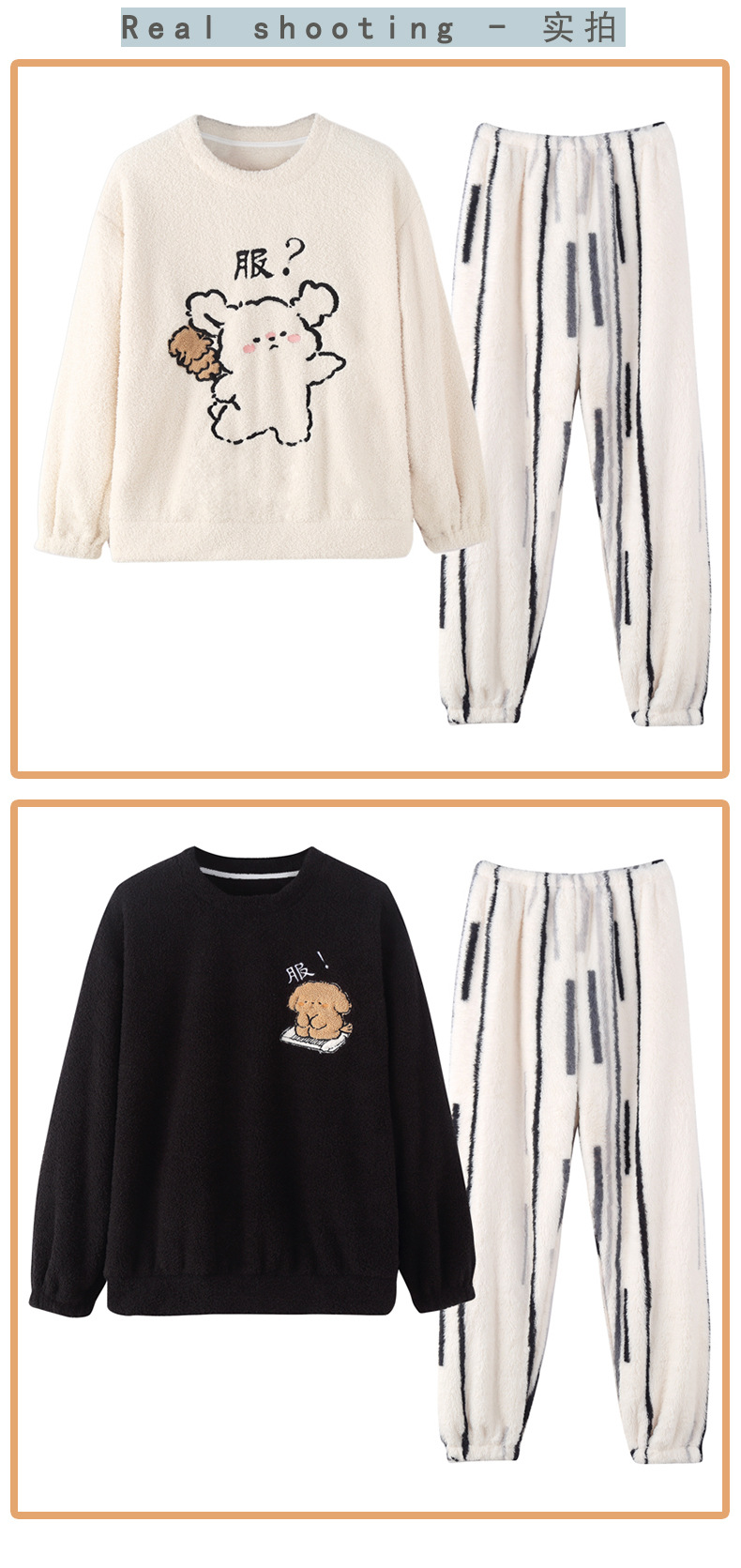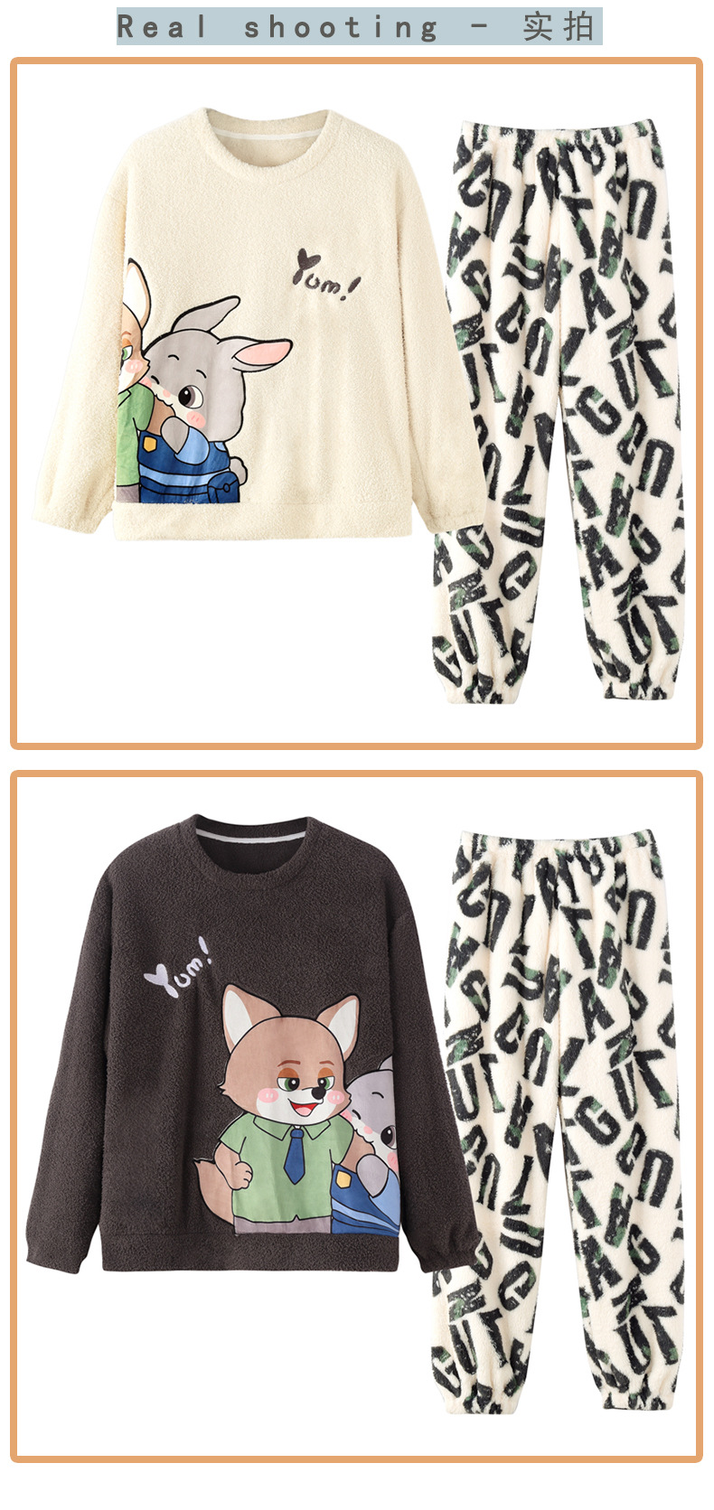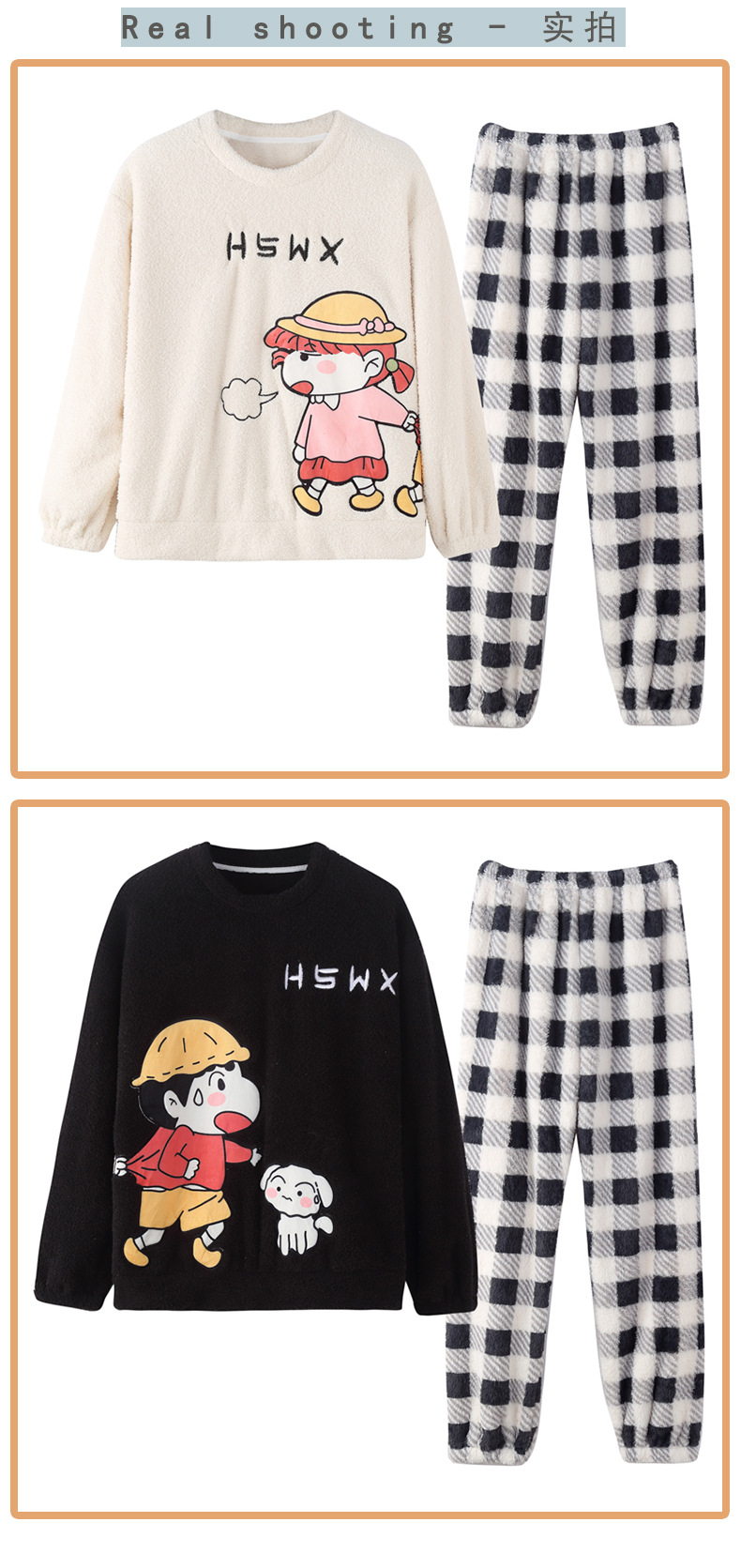 산호 벨벳 커플 잠옷 여성의 가을과 겨울 기모 두꺼운 만화 귀여운 플란넬 남성 홈 의류 세트스토어 가기