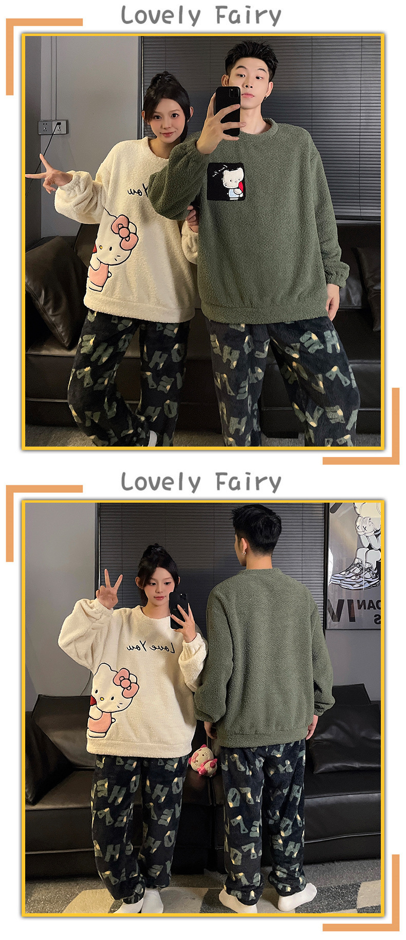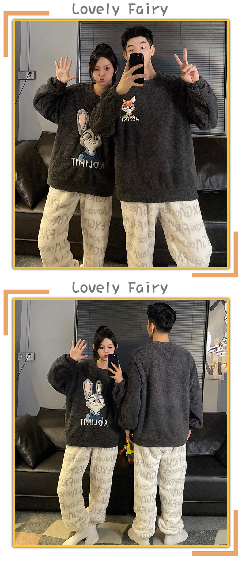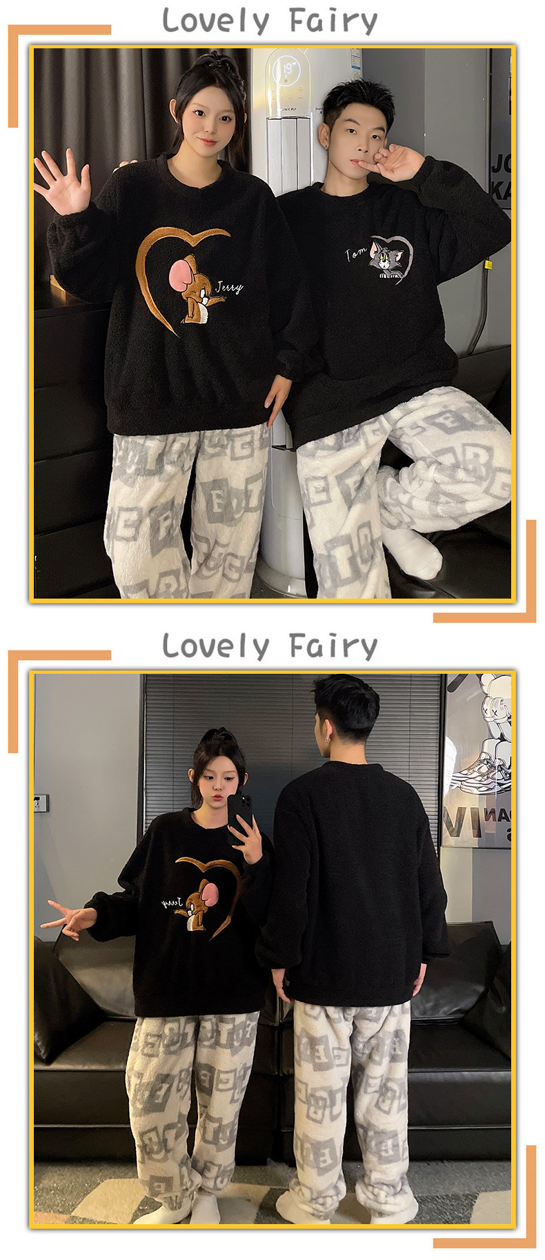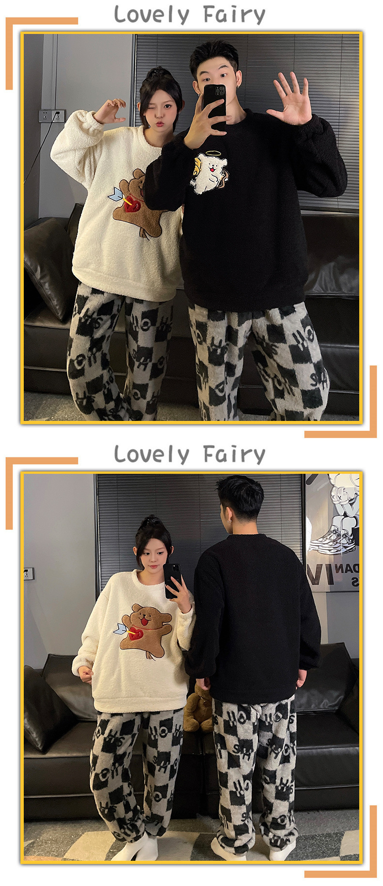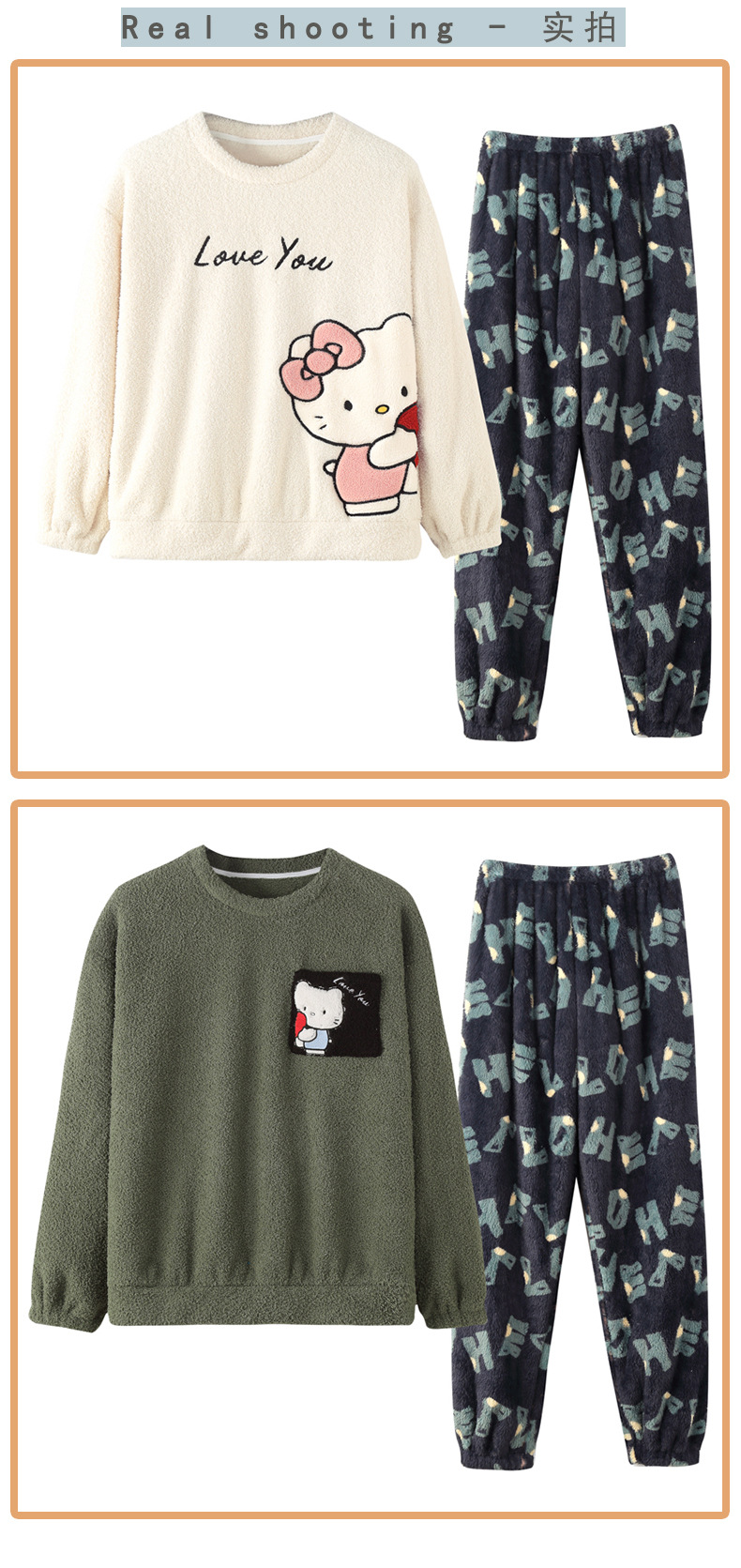 산호 벨벳 커플 잠옷 여성의 가을과 겨울 기모 두꺼운 만화 귀여운 플란넬 남성 홈 의류 세트스토어 가기