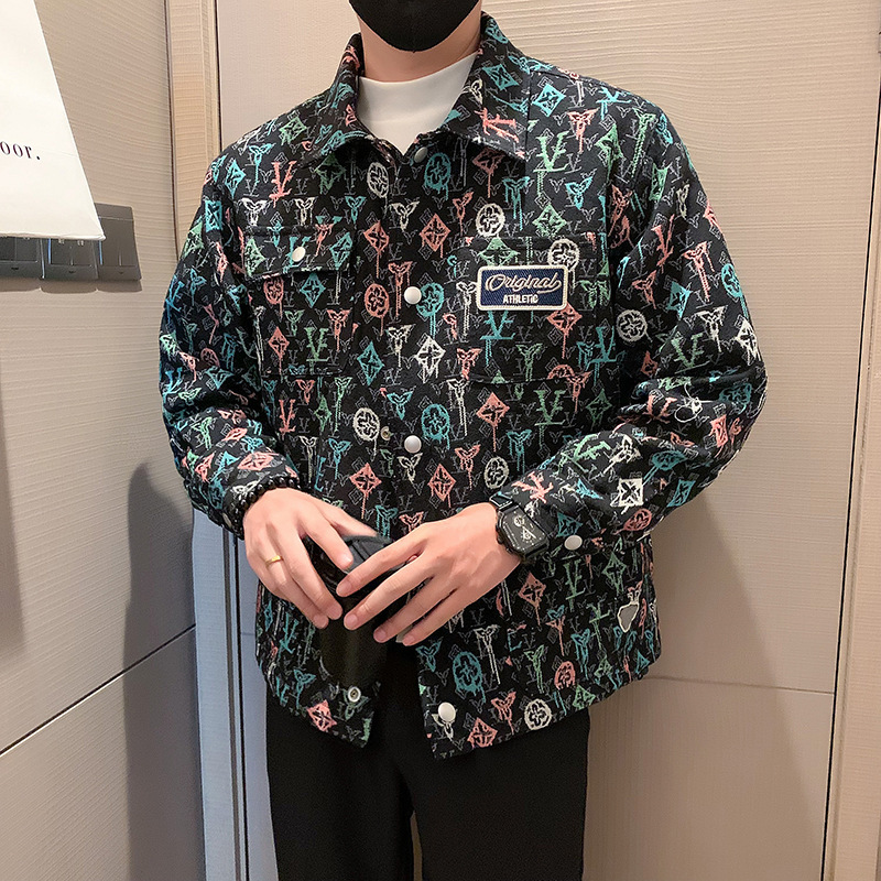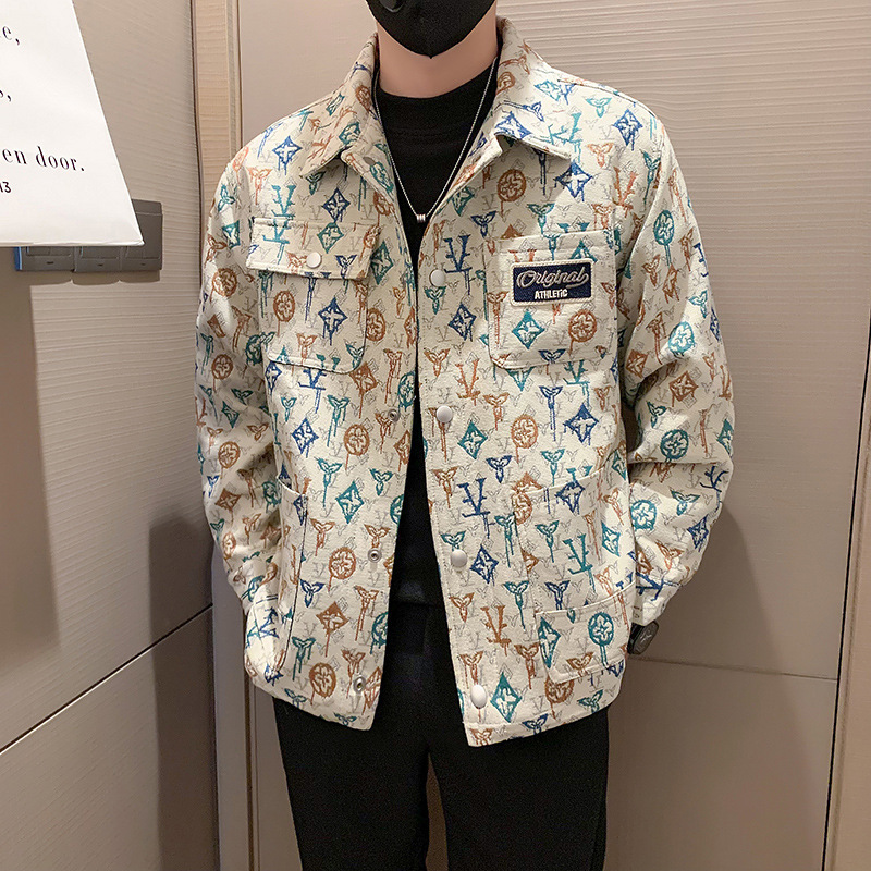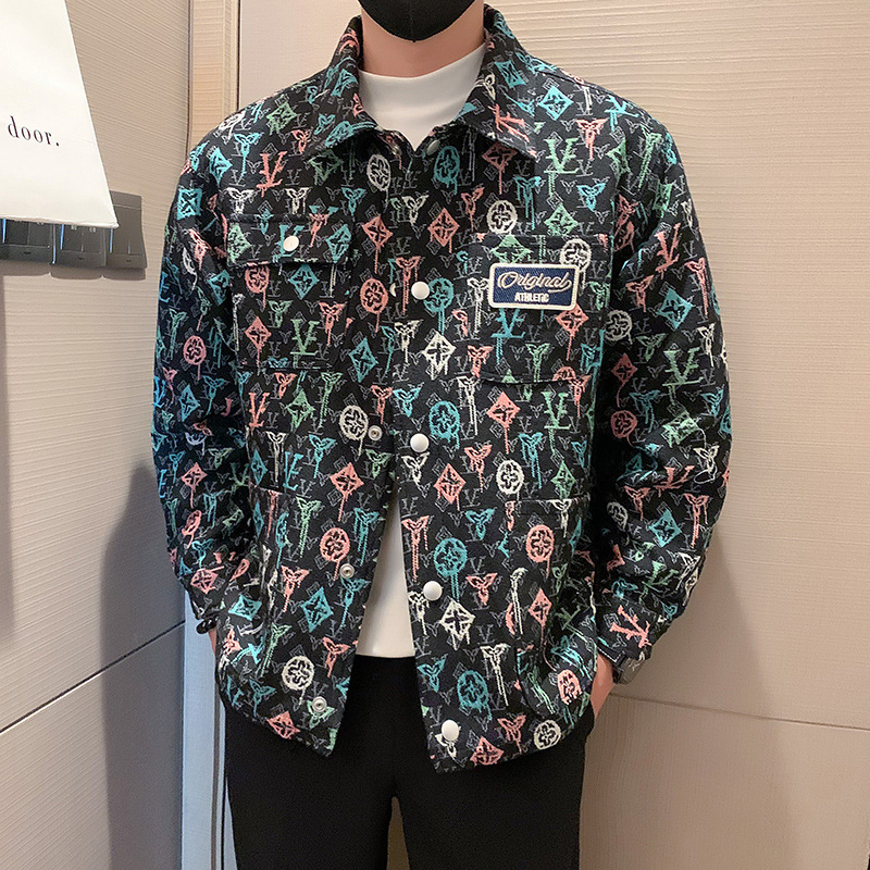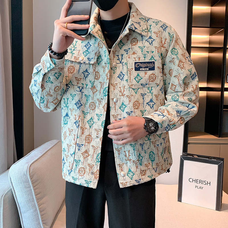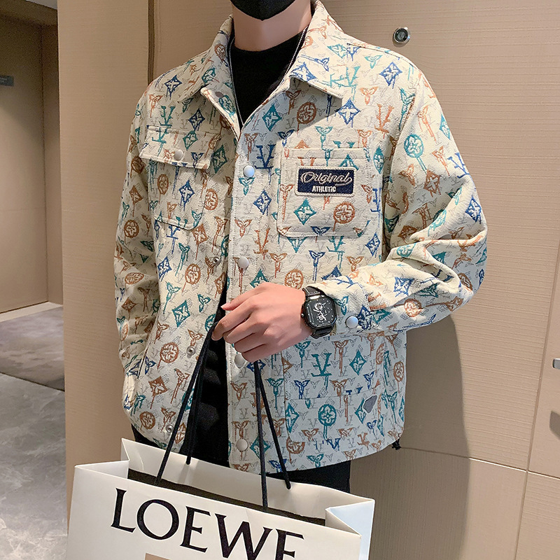자카드 코트 남성 봄과 가을 2024 새로운 인기 패션 브랜드 하이 엔드 자수 풀 프린트 재킷 남성 자켓스토어 가기