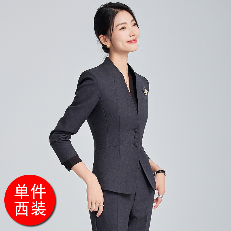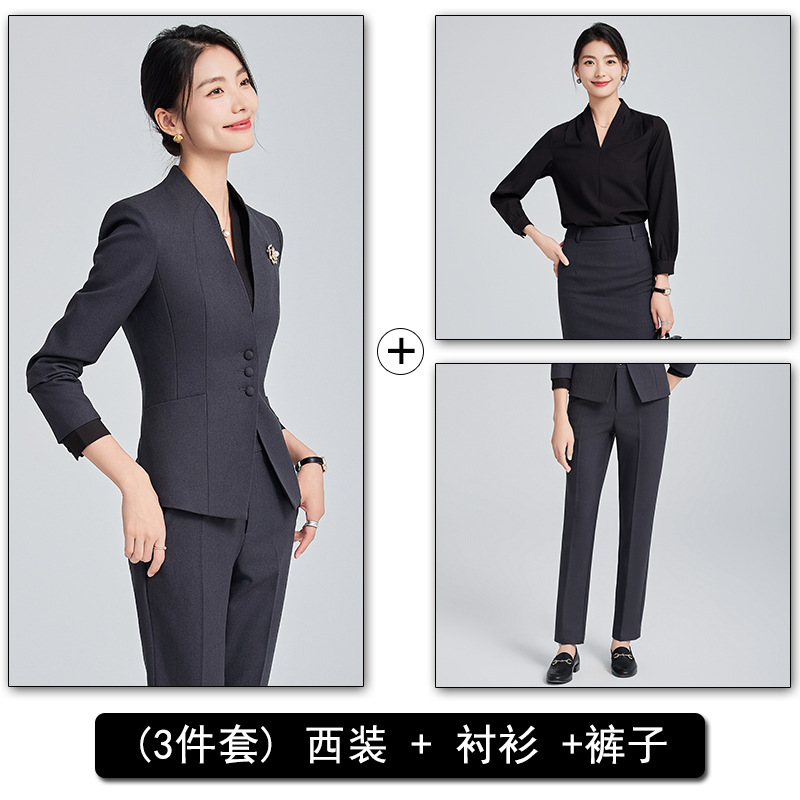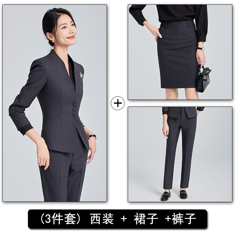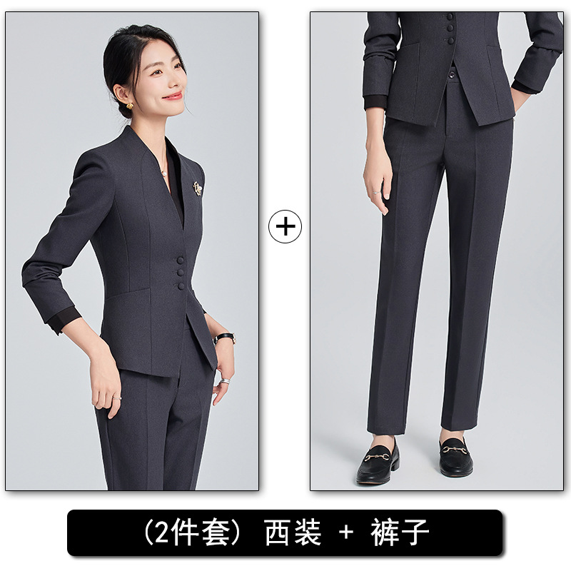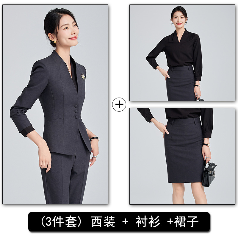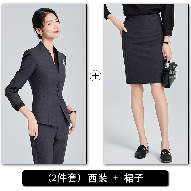 회색 전문 세트 세트 여성 2024 가을/겨울 새 기질 관리자 통근 원피스 호텔 프론트 데스크 작업복스토어 가기