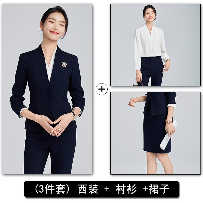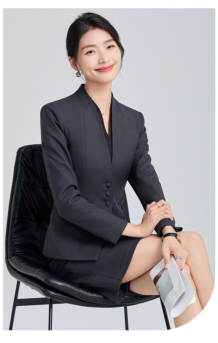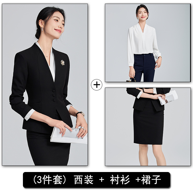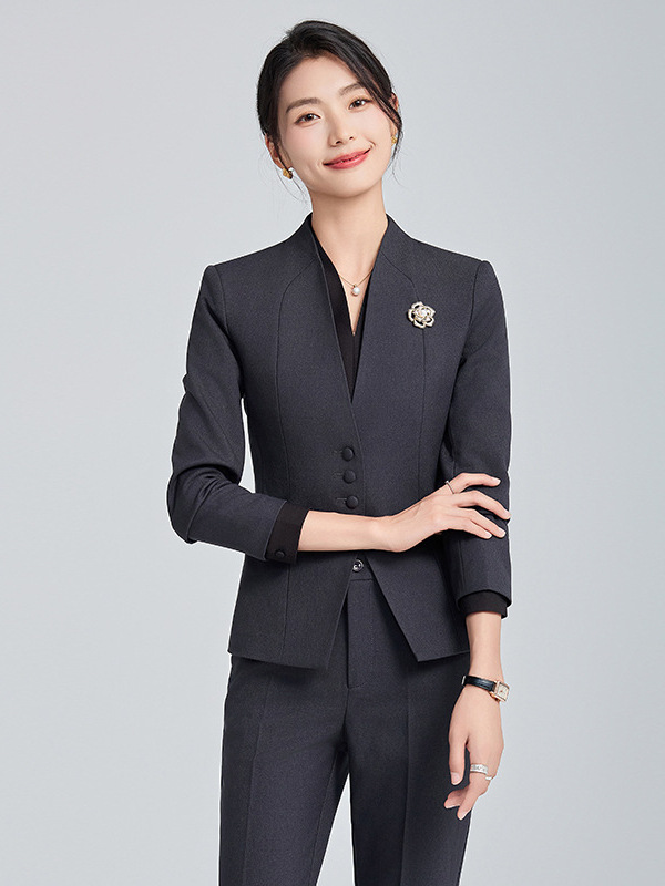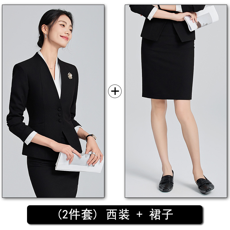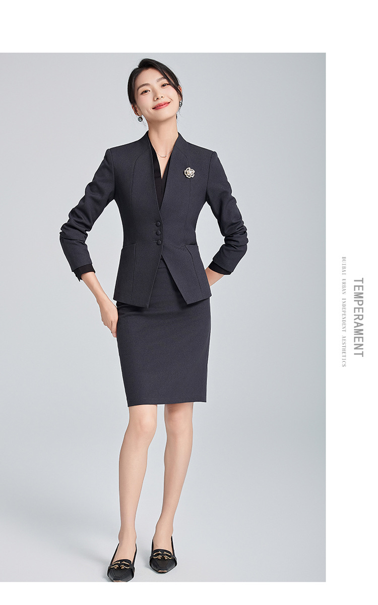회색 전문 세트 세트 여성 2024 가을/겨울 새 기질 관리자 통근 원피스 호텔 프론트 데스크 작업복스토어 가기