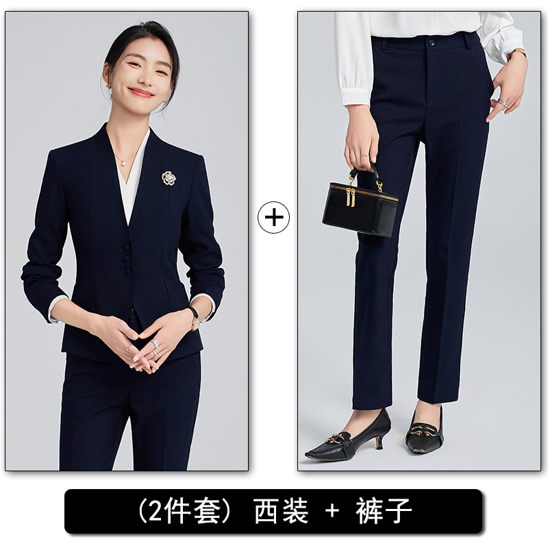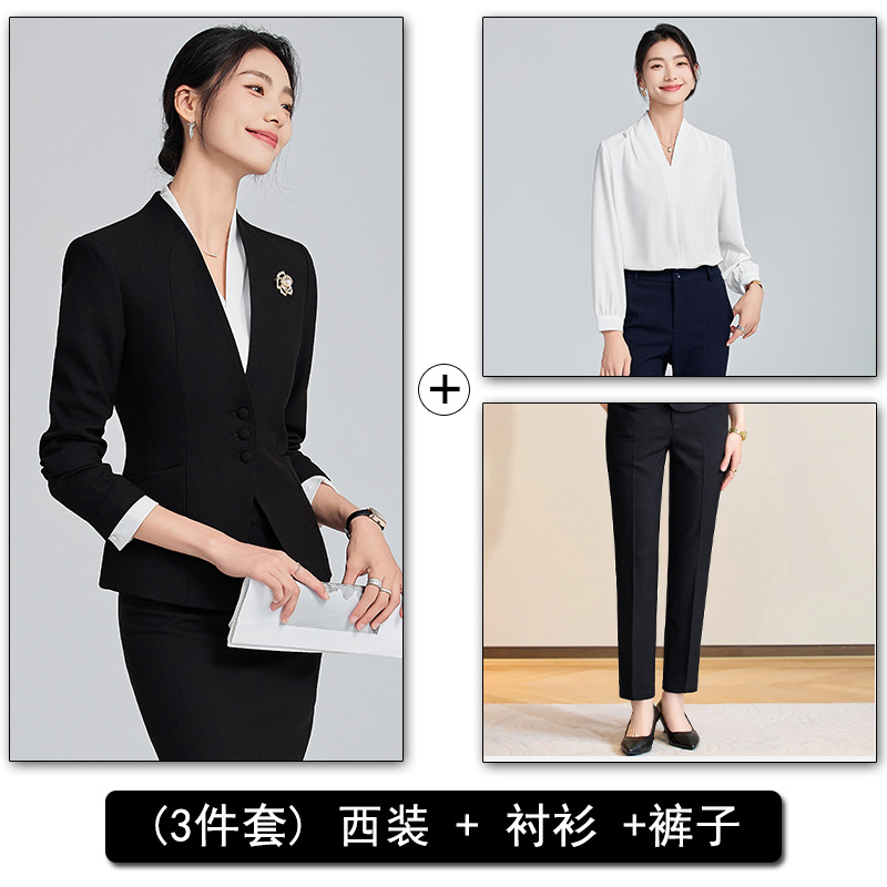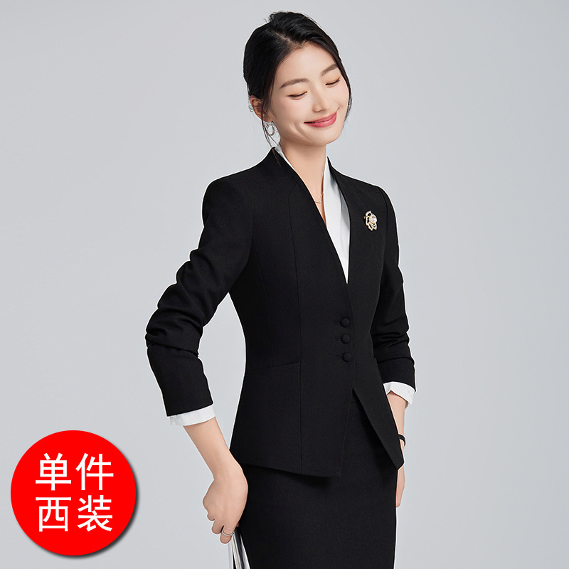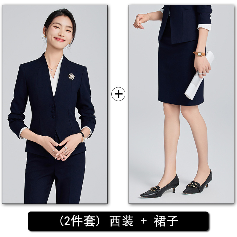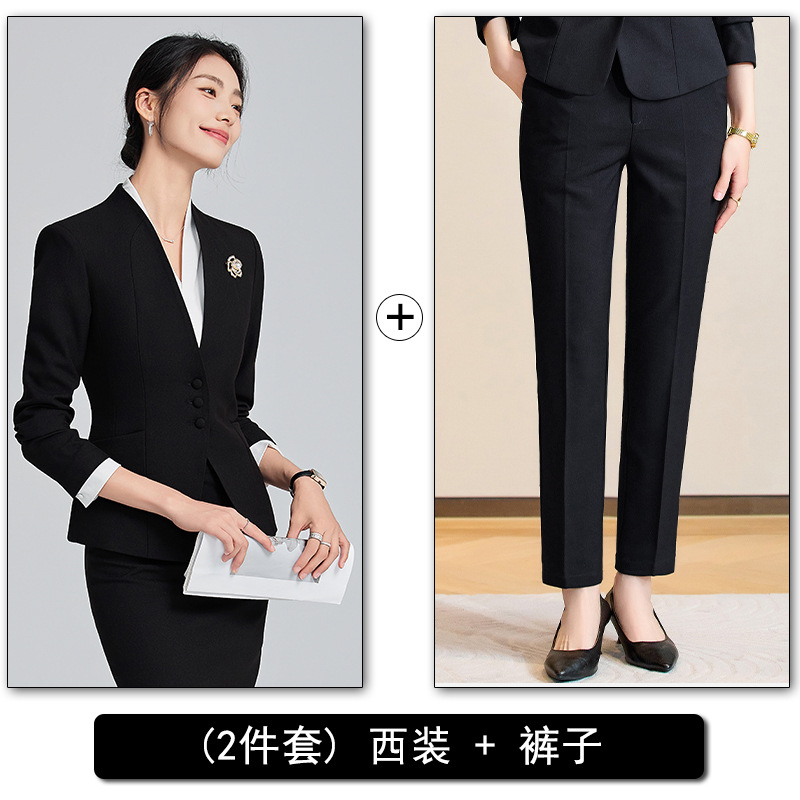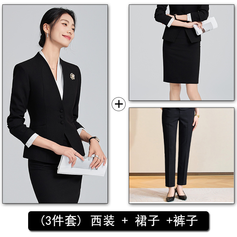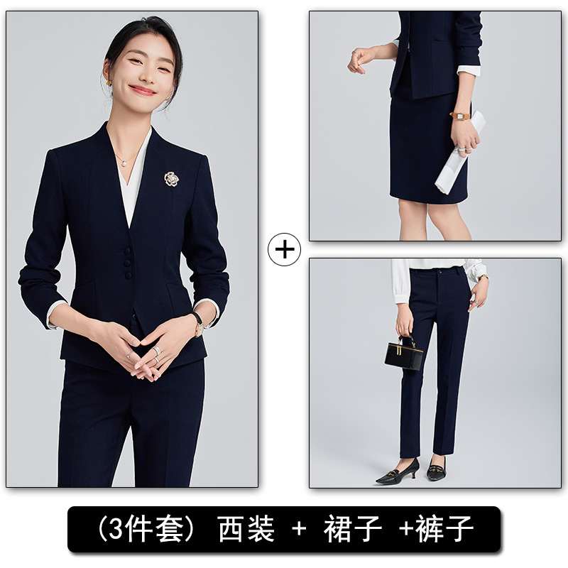 회색 전문 세트 세트 여성 2024 가을/겨울 새 기질 관리자 통근 원피스 호텔 프론트 데스크 작업복스토어 가기