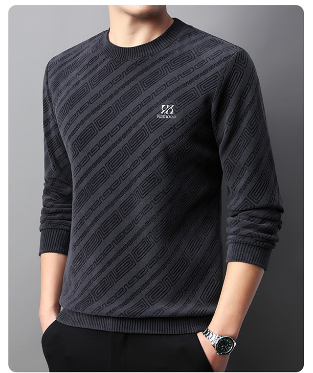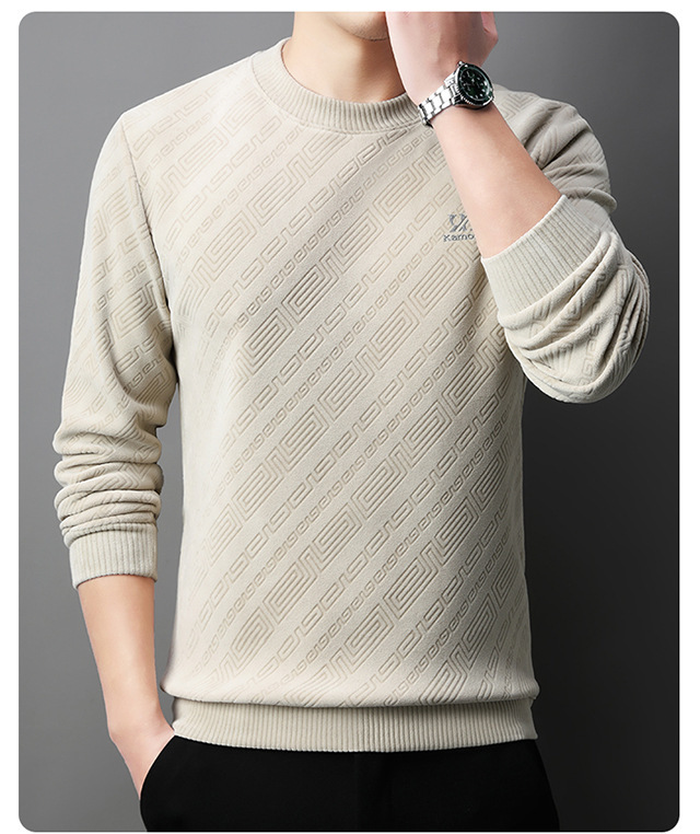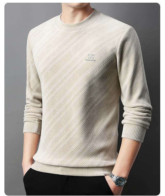 올리 벨벳 스웨터 남자 겨울 새로운 캐주얼 올 매치 원피스 벨벳 두꺼운 따뜻한 오비크 스트라이프 자카드베이스 셔츠스토어 가기