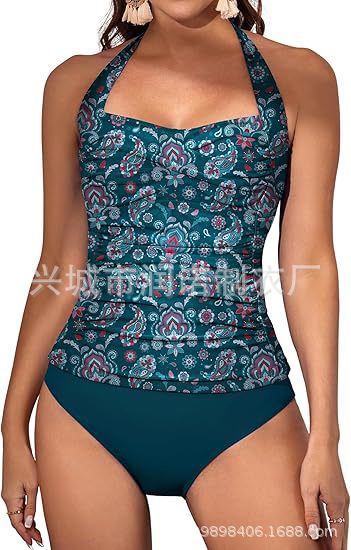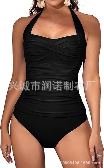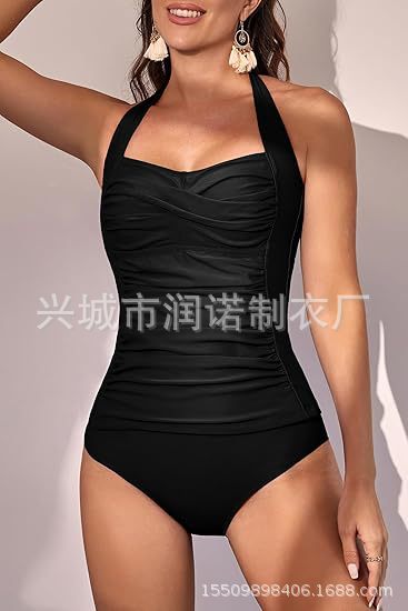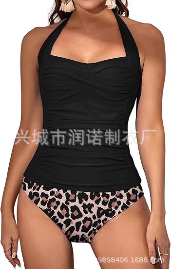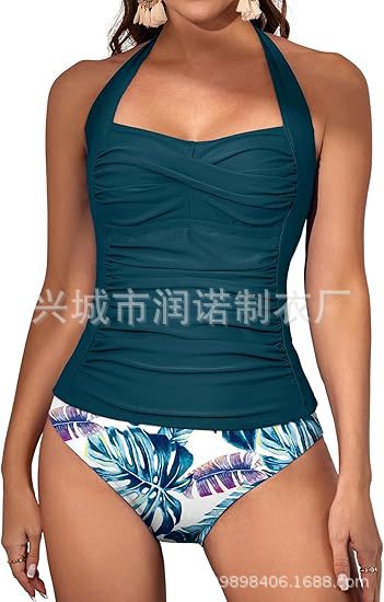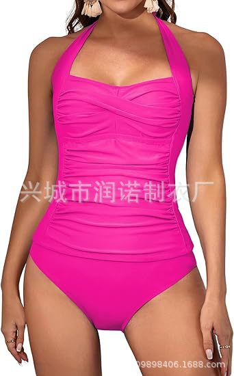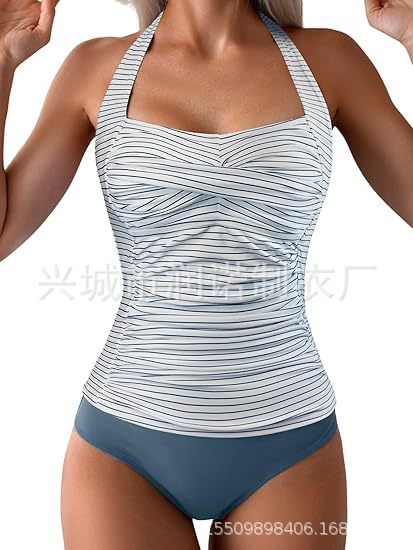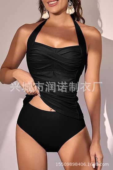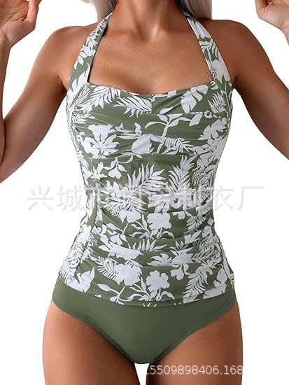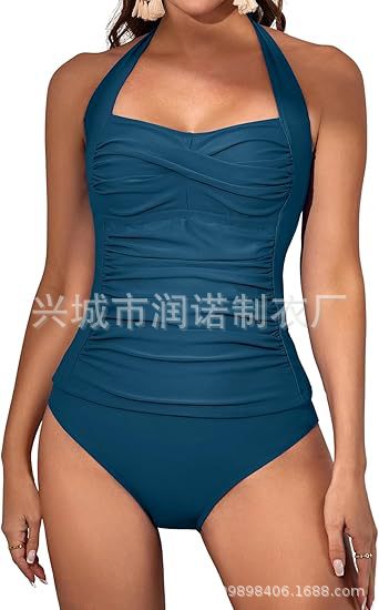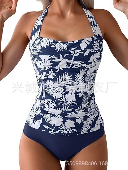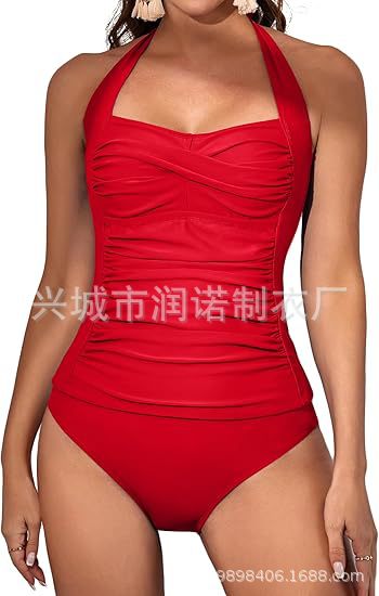 2024 새로운 패션 하이 엔드 여성 목 분할 수영복 수영 트렁크와 함께 벨리 투피스 수영복스토어 가기