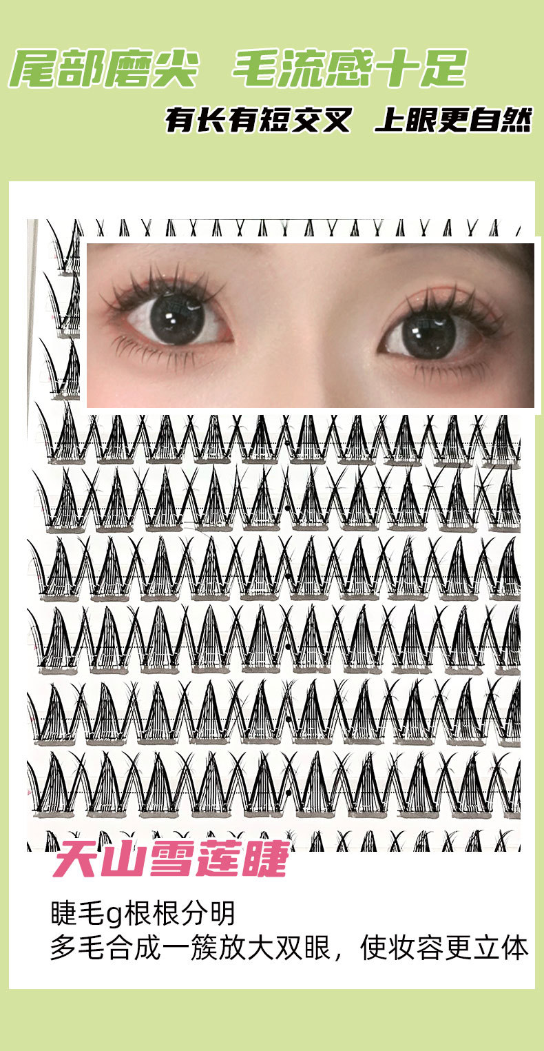 거짓 속눈썹 자연 분절 자체 접착 작은 토끼 톈산 눈 연꽃 공작 물고기
