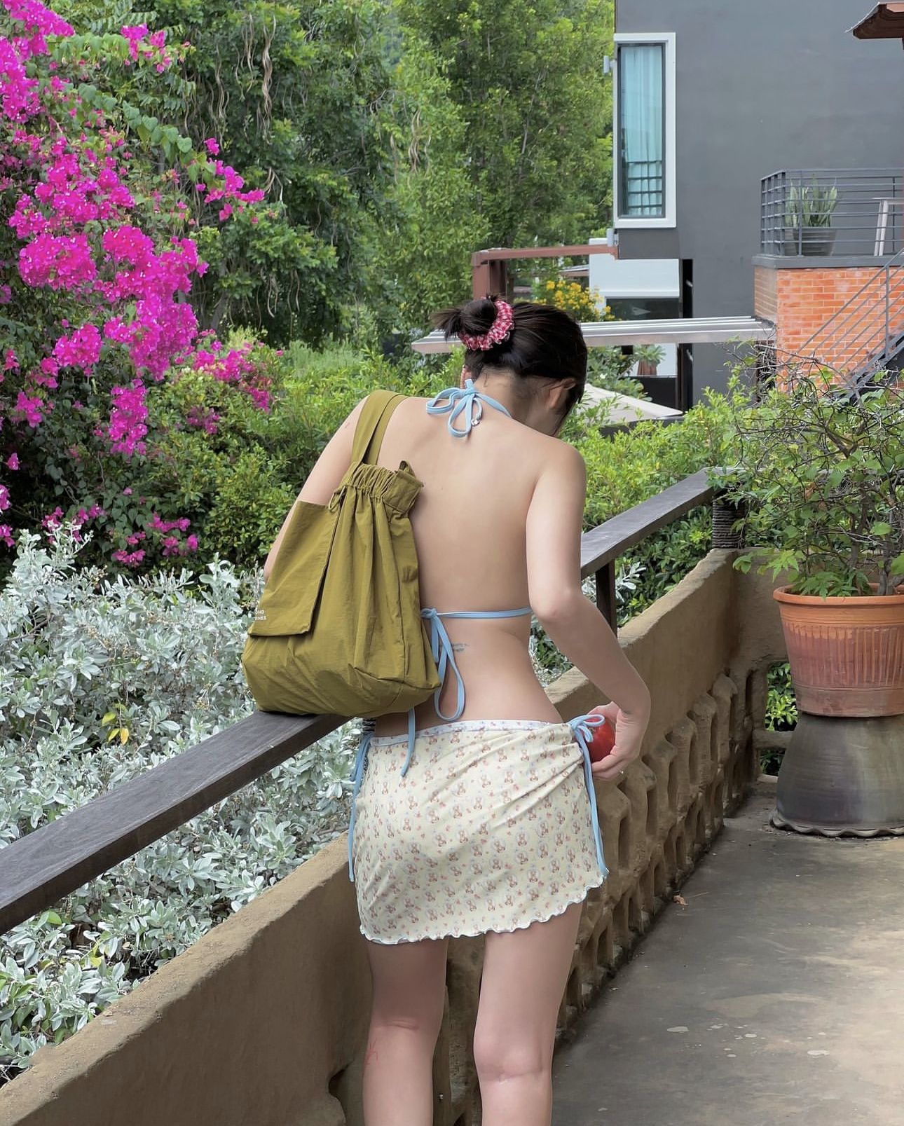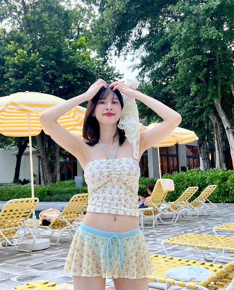 순수한 욕망 작은 향기로운 스타일 달콤한 귀여운 꽃 끈이없는 슬림 보수적 인 스커트 온천 휴가 수영복 여성 수영복