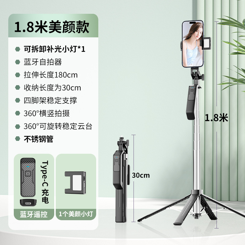 • 1.8米【加粗四脚架★4축 합금강] 무료 블루투스 리모컨 + 전문 라이브 방송