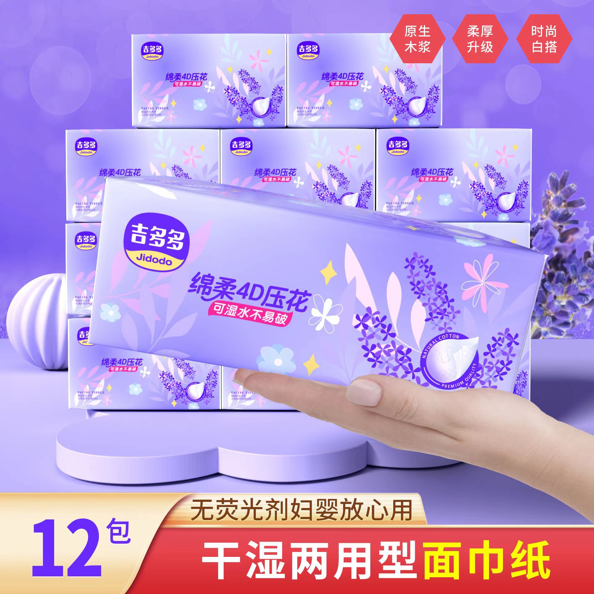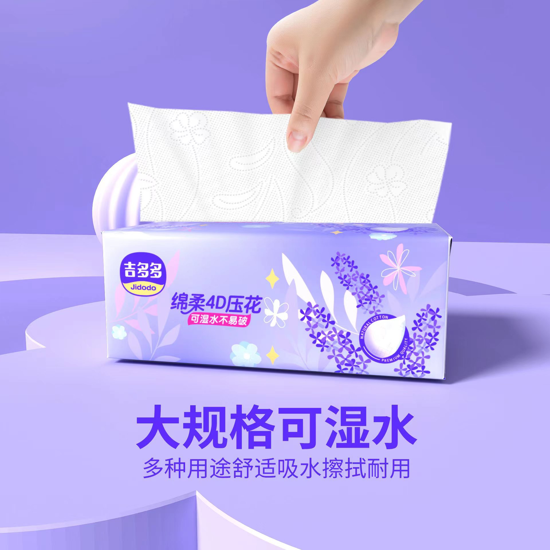 Jidoduo 라벤더 패션 시리즈 종이 젖은 건조 듀얼 사용 대형 피부 친화적 인 종이 가정용 얼굴 조직