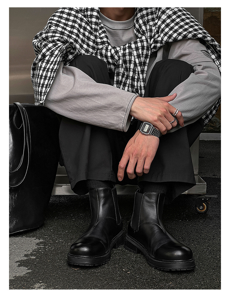 영국 스타일 빈티지 슬리브 부츠 게으른 한 페달 두꺼운 밑창 높은 마틴 부츠 클래식 심플 솔리드 컬러 올 매치 부츠스토어 가기