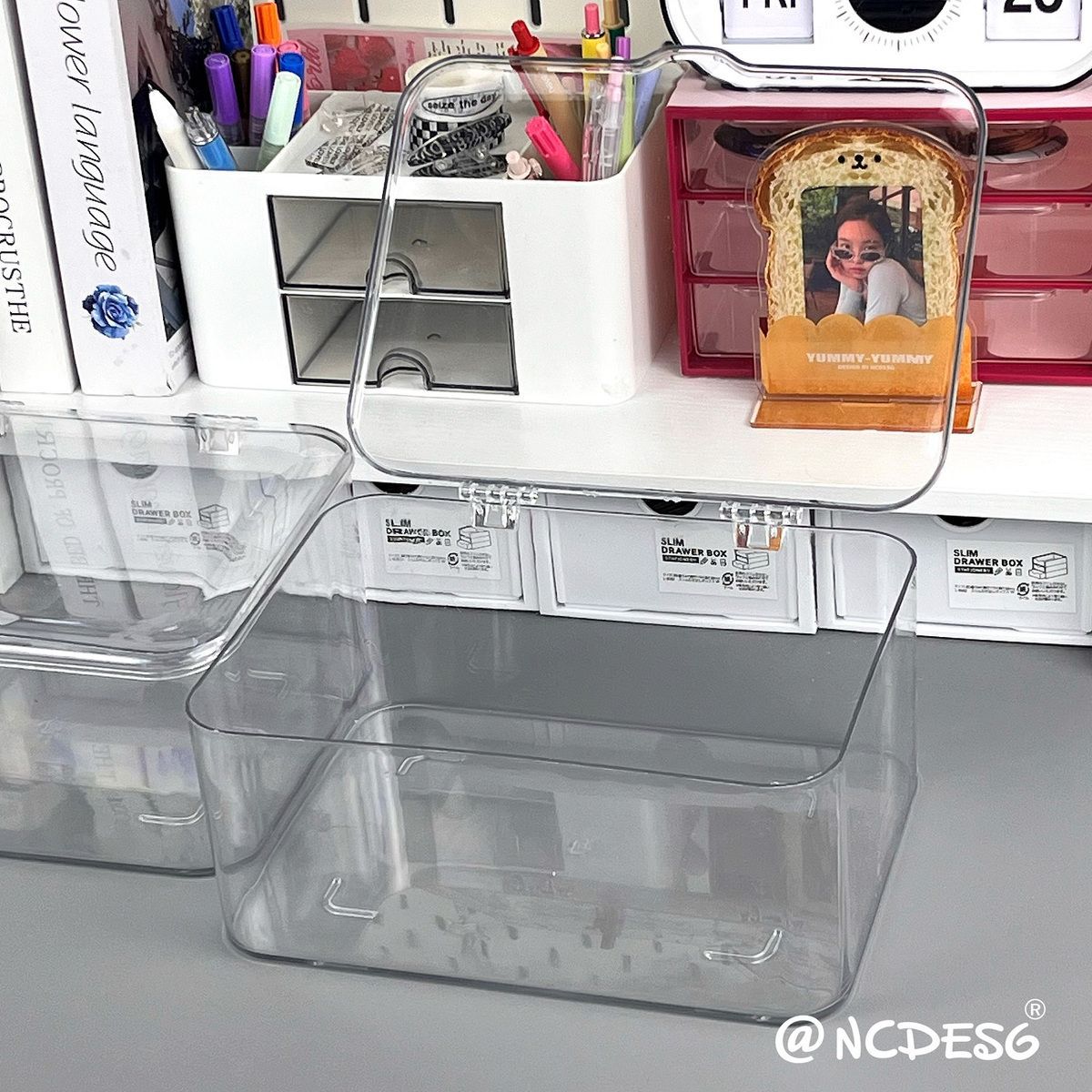 마스크 보관 상자 아크릴 투명 잡화 보관 랙 바구니 사무실 책상 뚜껑 방진 침실 적합 상자