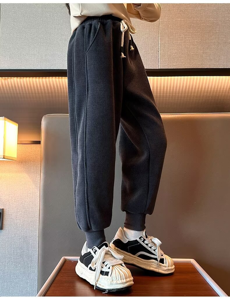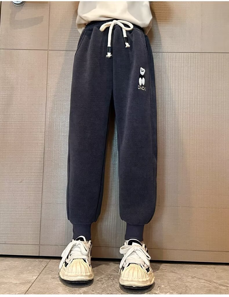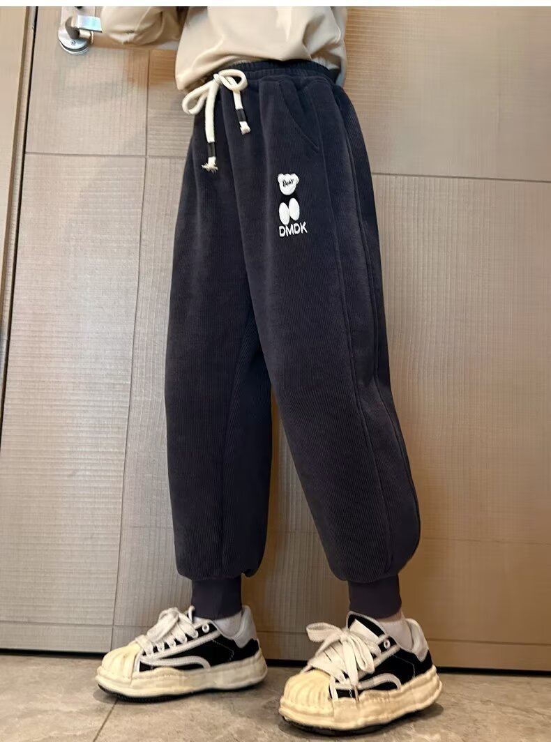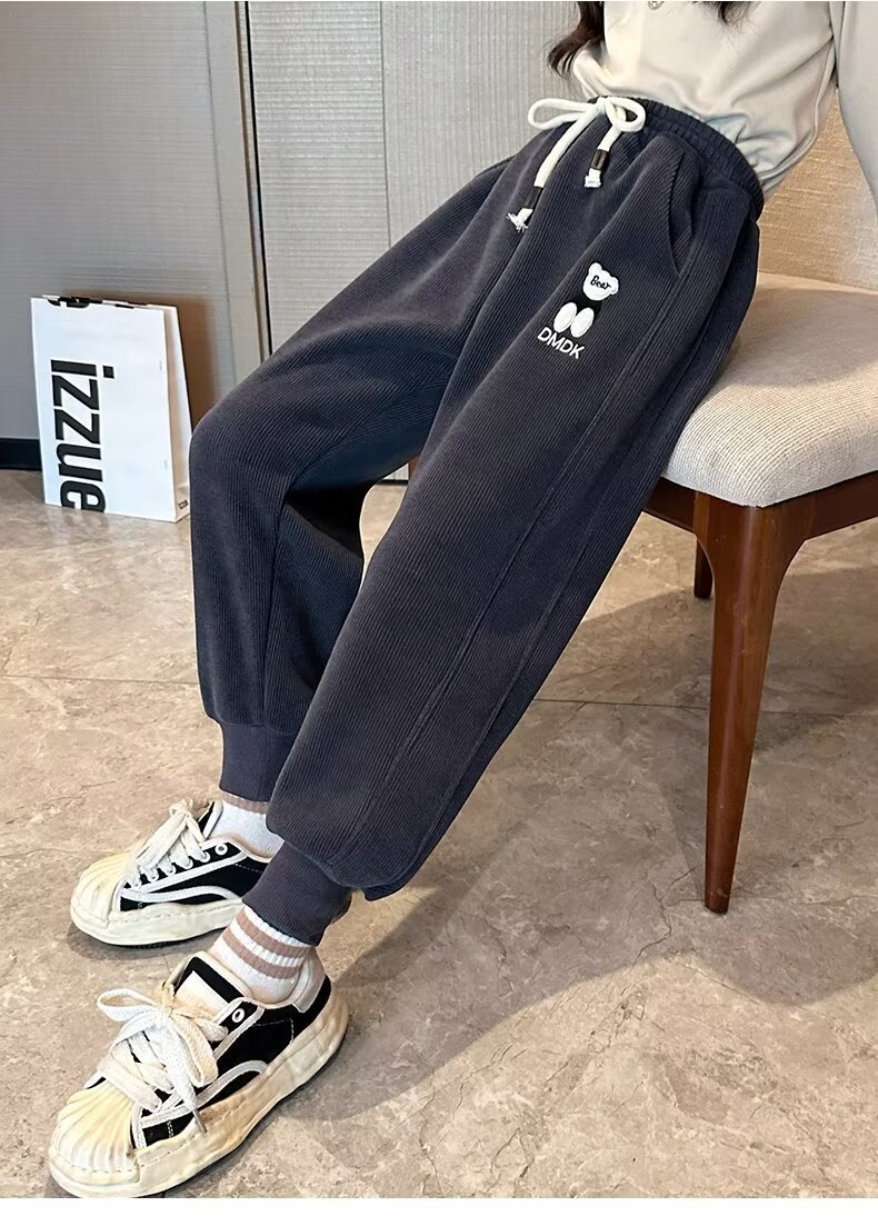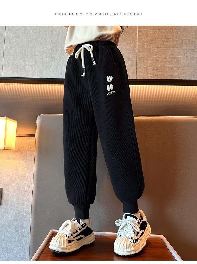소녀 바지 가을과 겨울 기모 바지 2024 새로운 외부 착용 아동복 소녀 코듀로이 어린이 스포츠 바지 트렌디스토어 가기