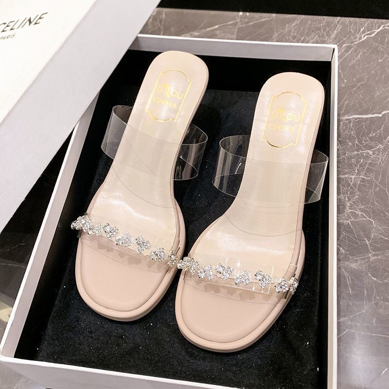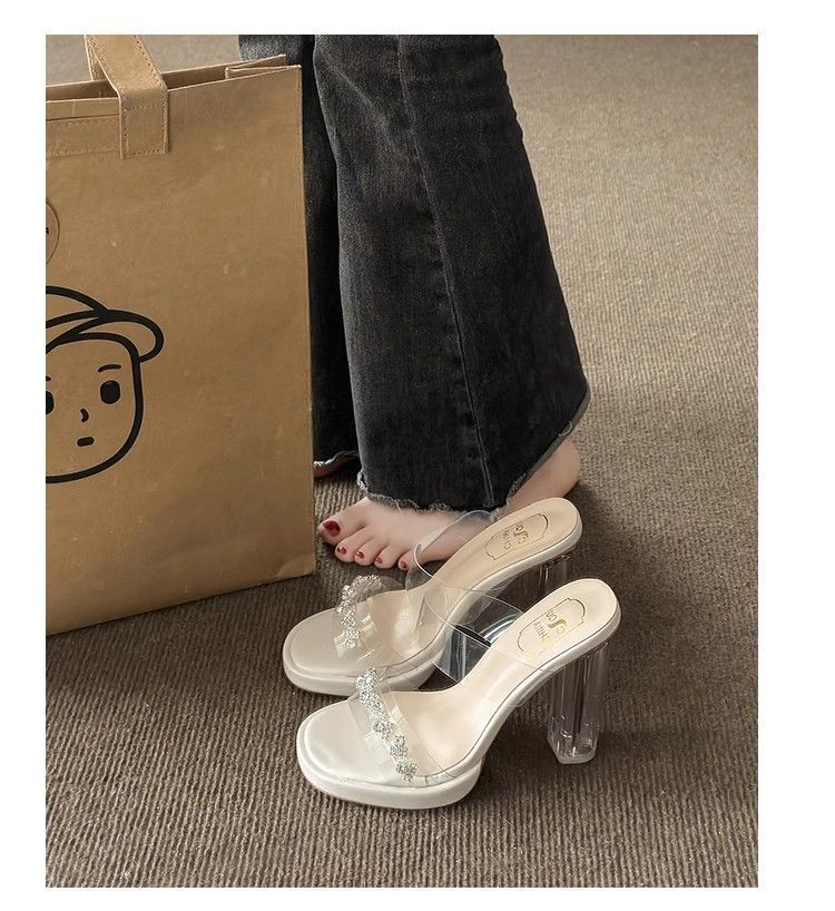 투명한 샌들과 프랑스 스타일 라인석 스타일 여성 패션 올 매치 우아한 크리스탈 굵은 뒤꿈치 방수 플랫폼 2024 가을 새로운스토어 가기