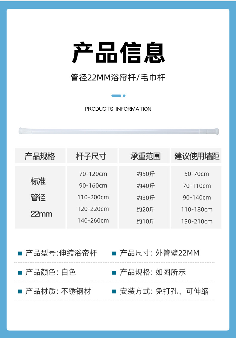 펀치없는 텔레스코픽 의류 건조 막대 다기능 지원 막대 욕실 샤워 커튼 침실 수축 가능한 커튼 옷장 교수형 막대스토어 가기