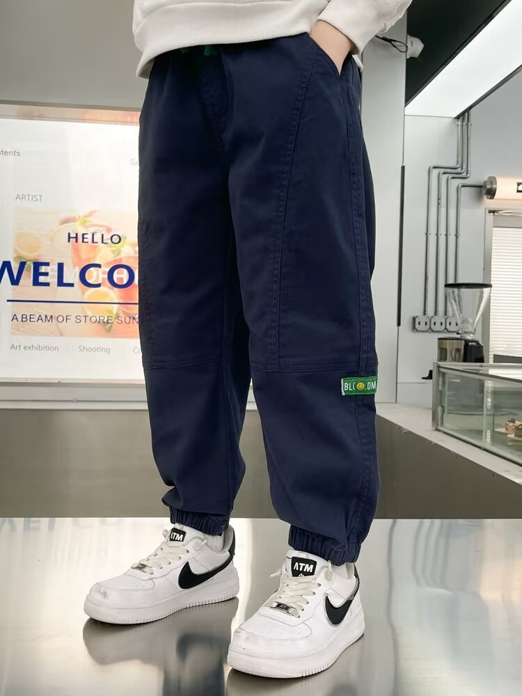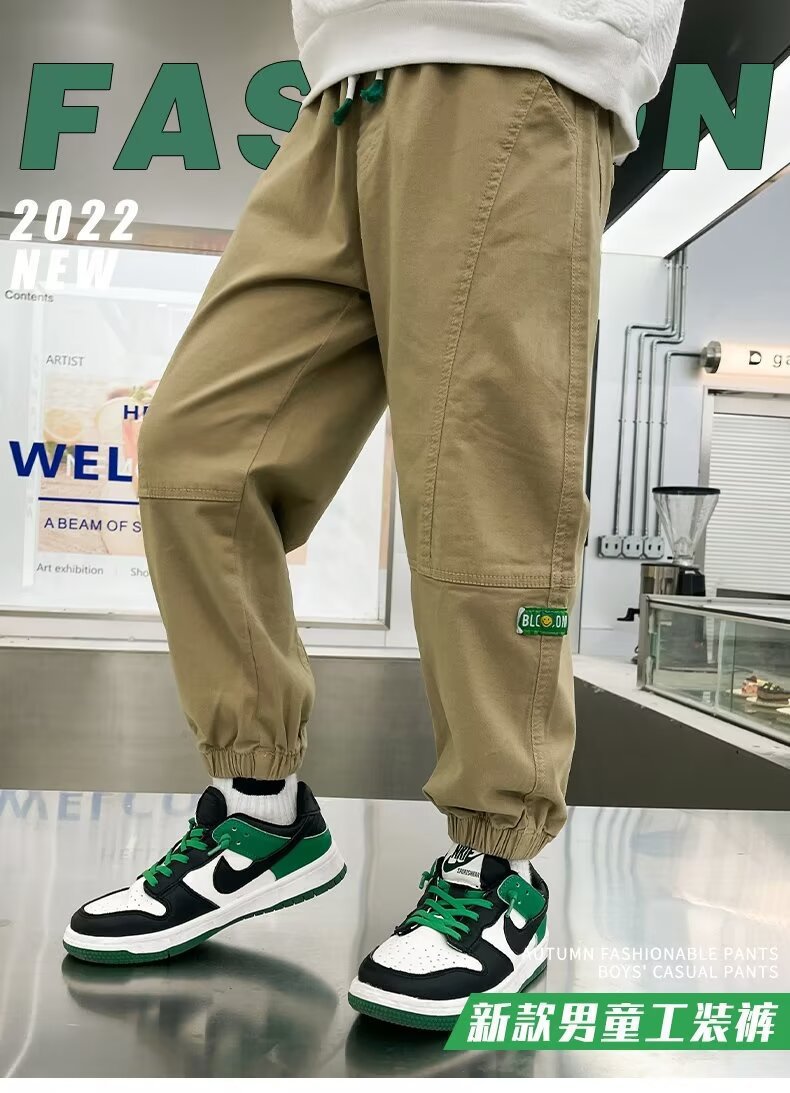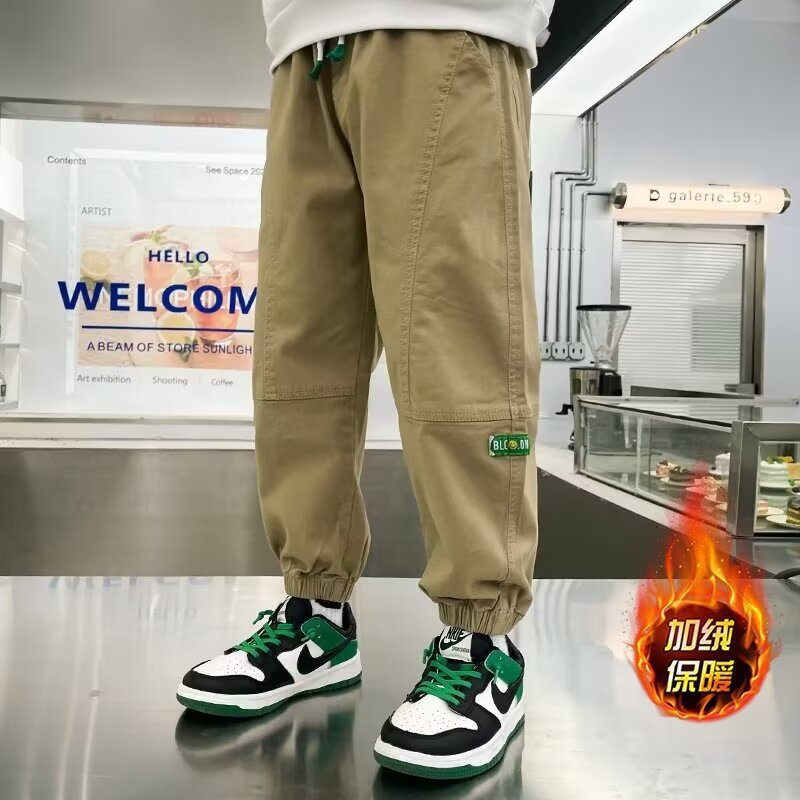 가을 겨울 기모 소년 바지 2024 새로운 대형 소년 바지 어린이 캐주얼 스포츠 긴 바지스토어 가기