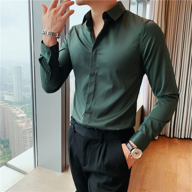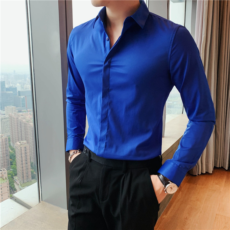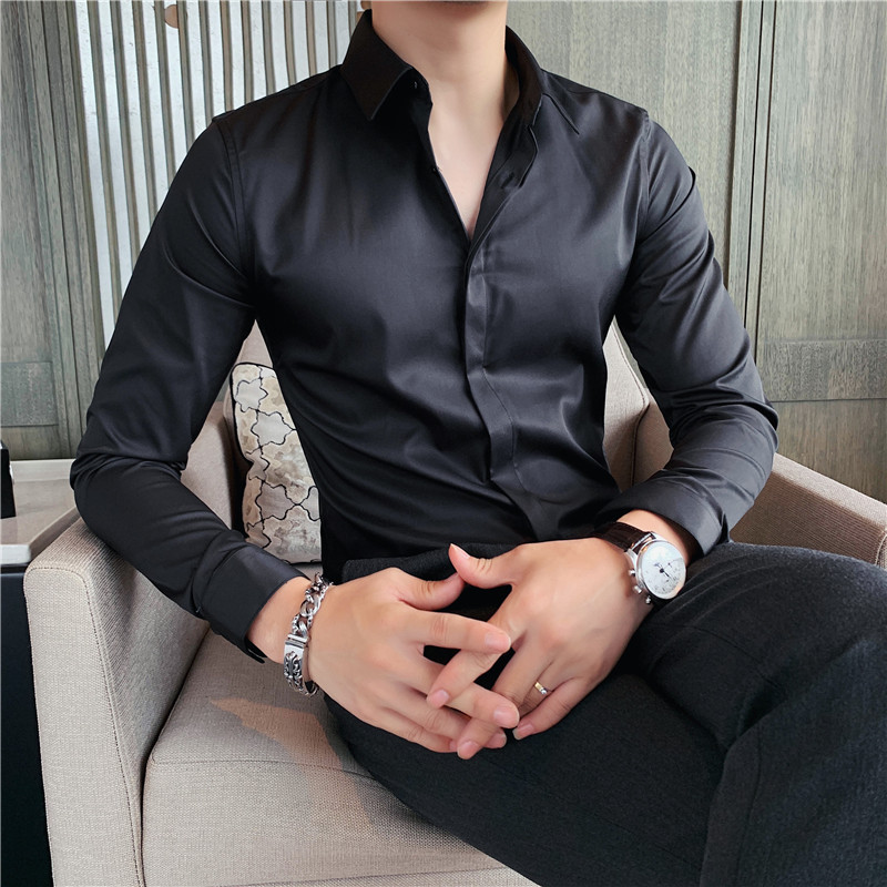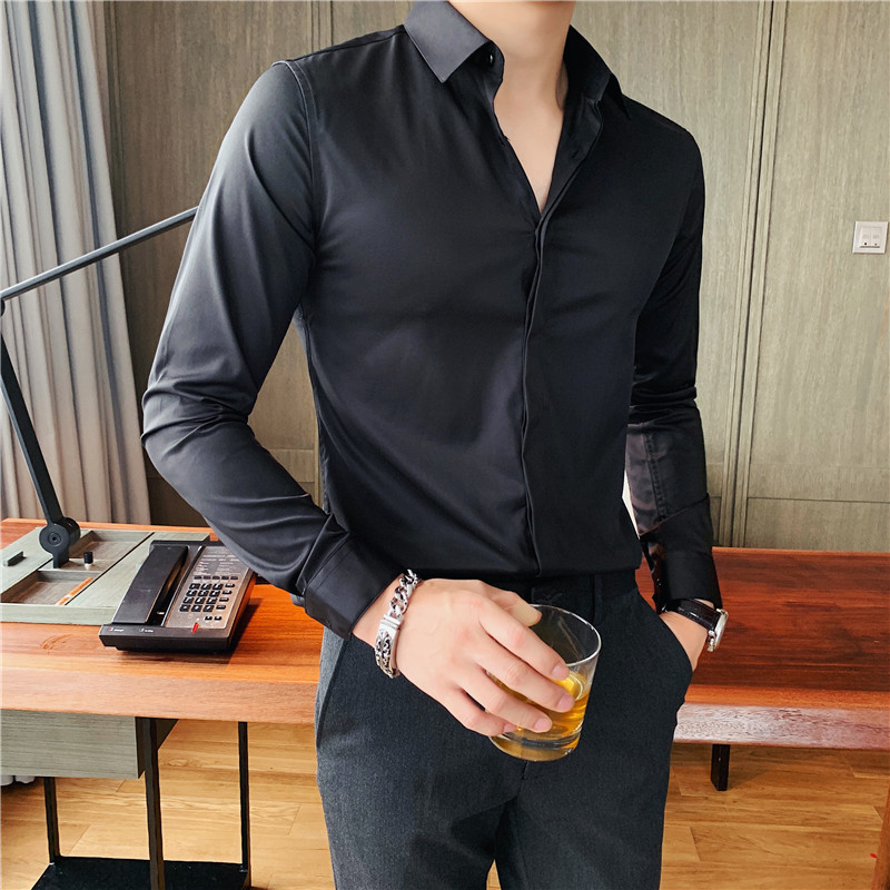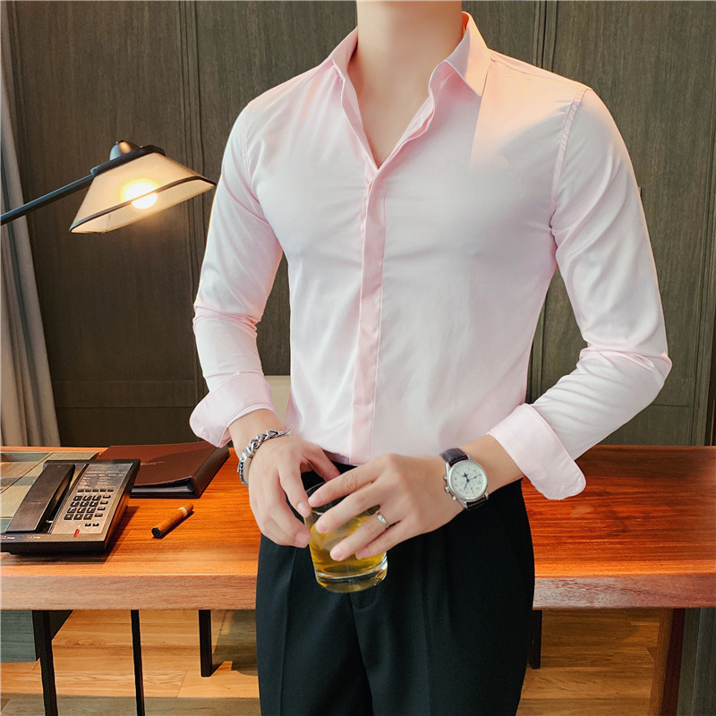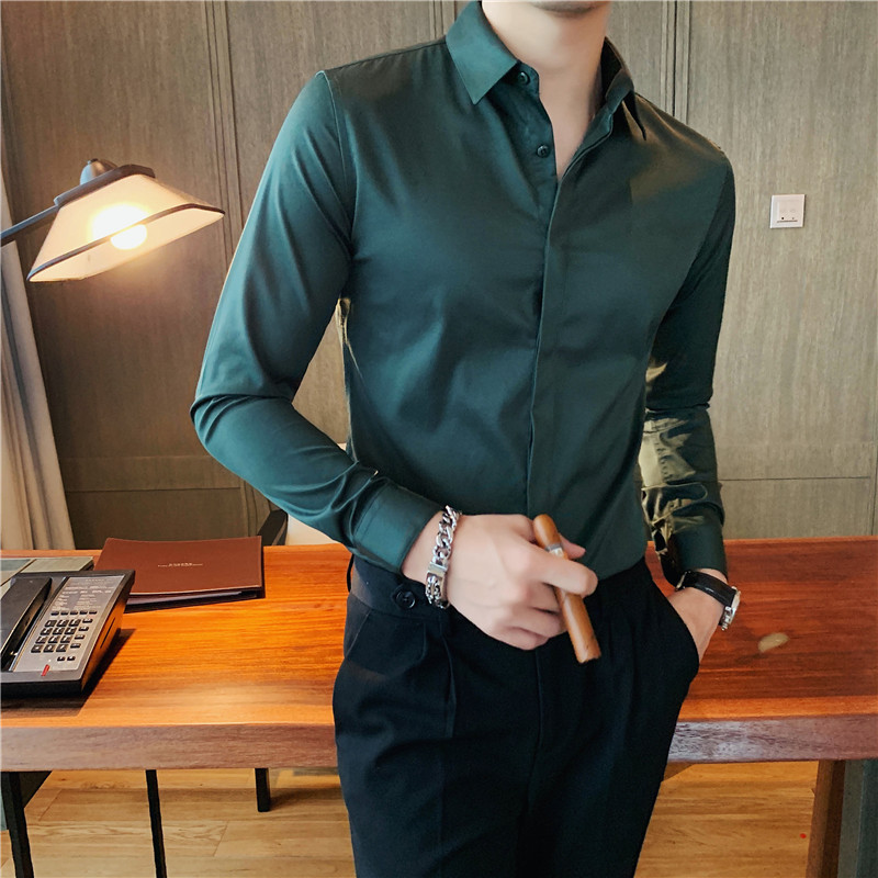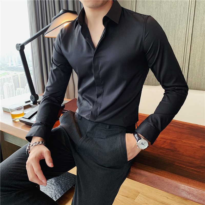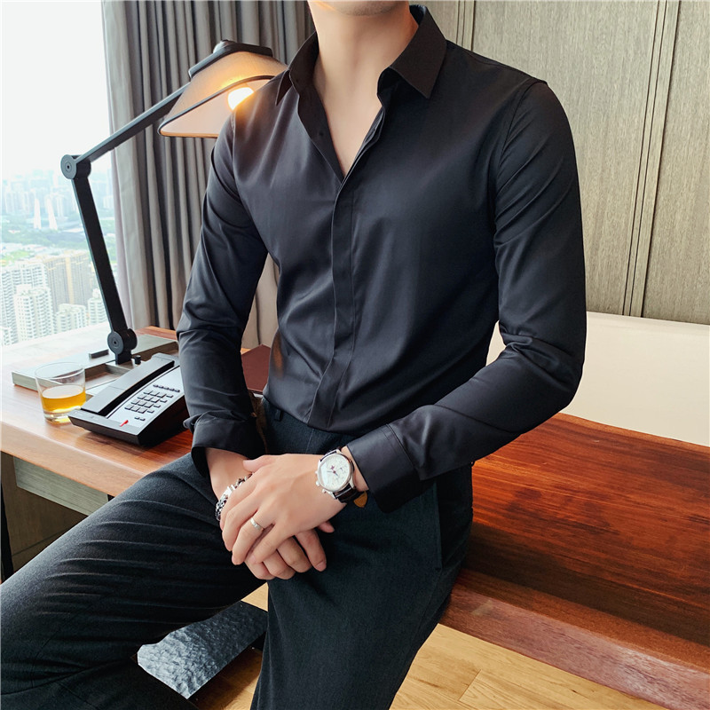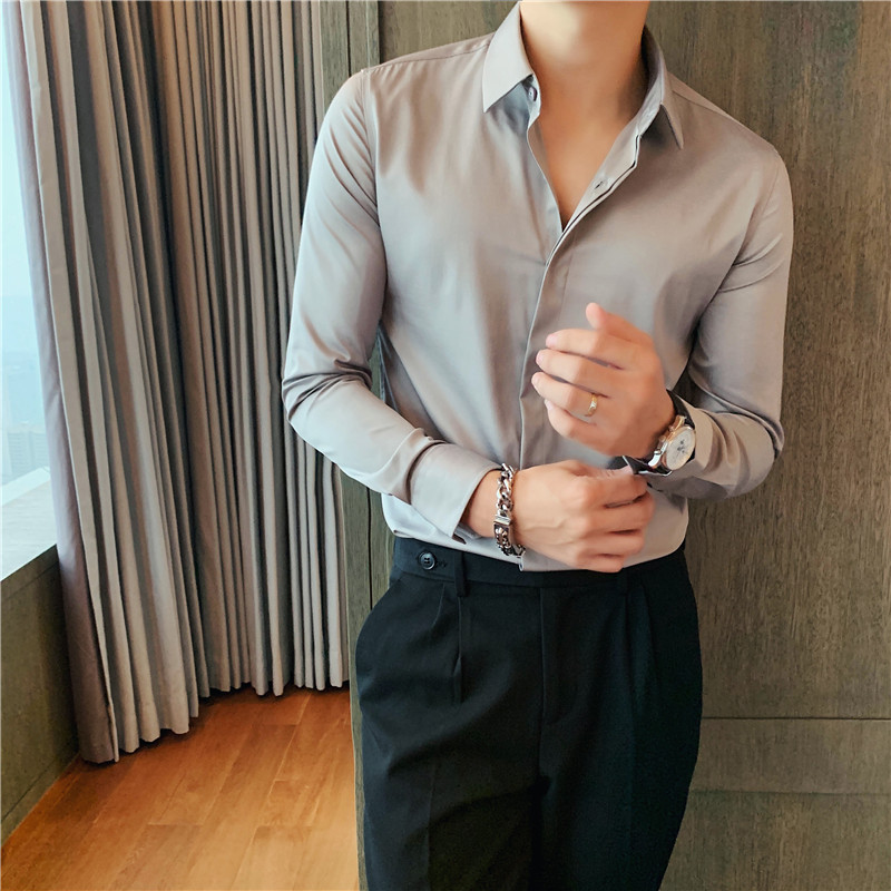 A213-C6637-2024 가을 새 스타일 남성용 잘 생긴 단색 다크 플래켓 슬림 올매치 캐주얼 긴팔 셔츠스토어 가기