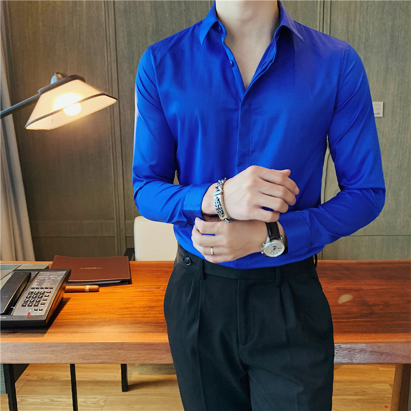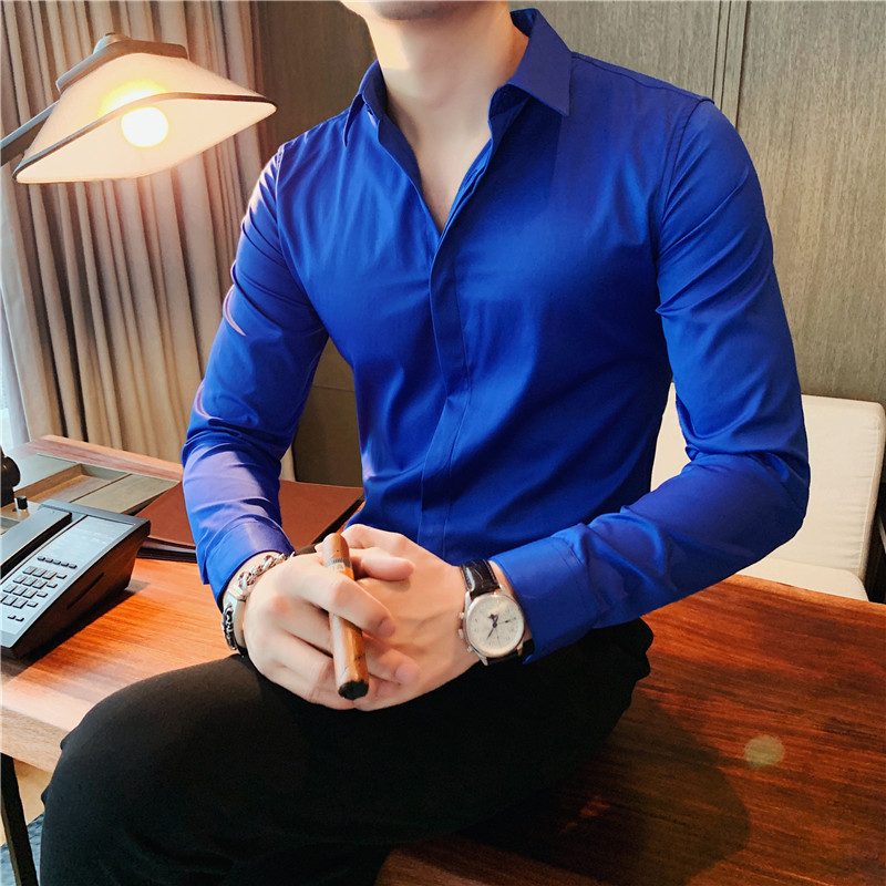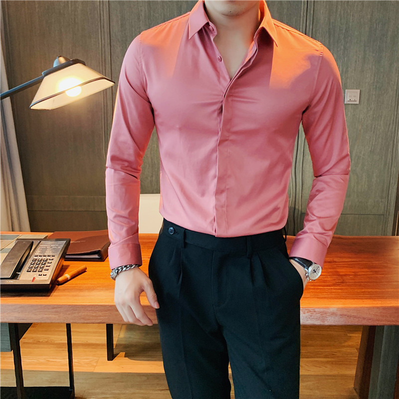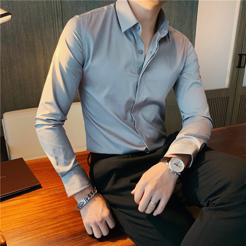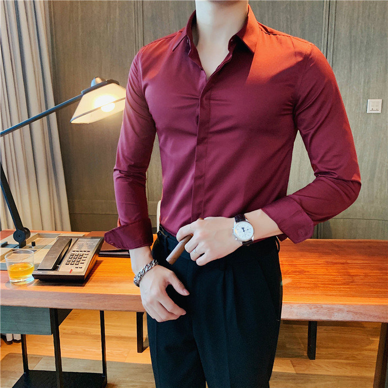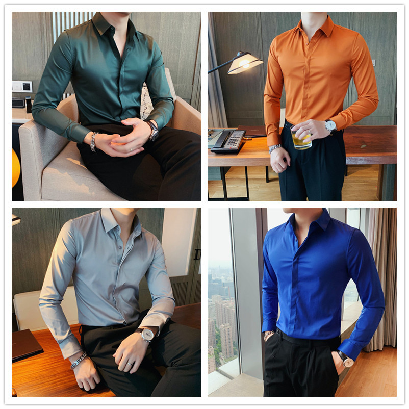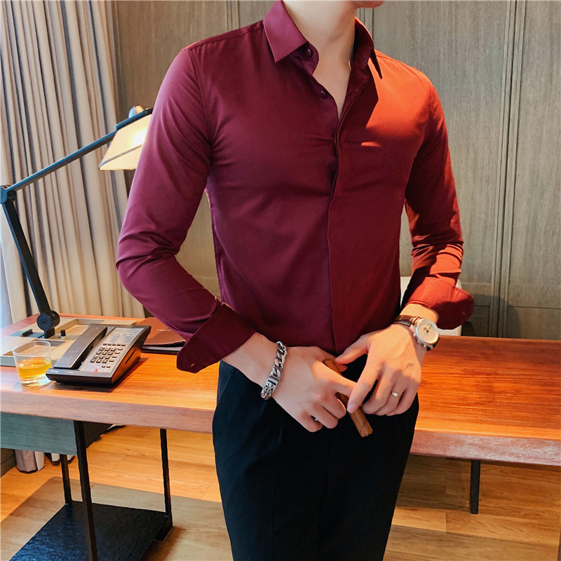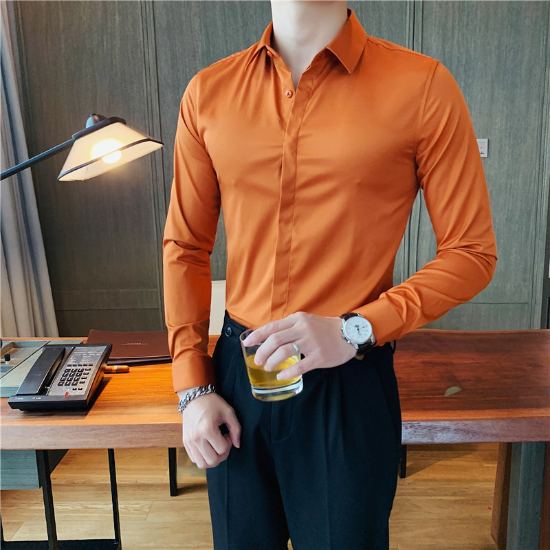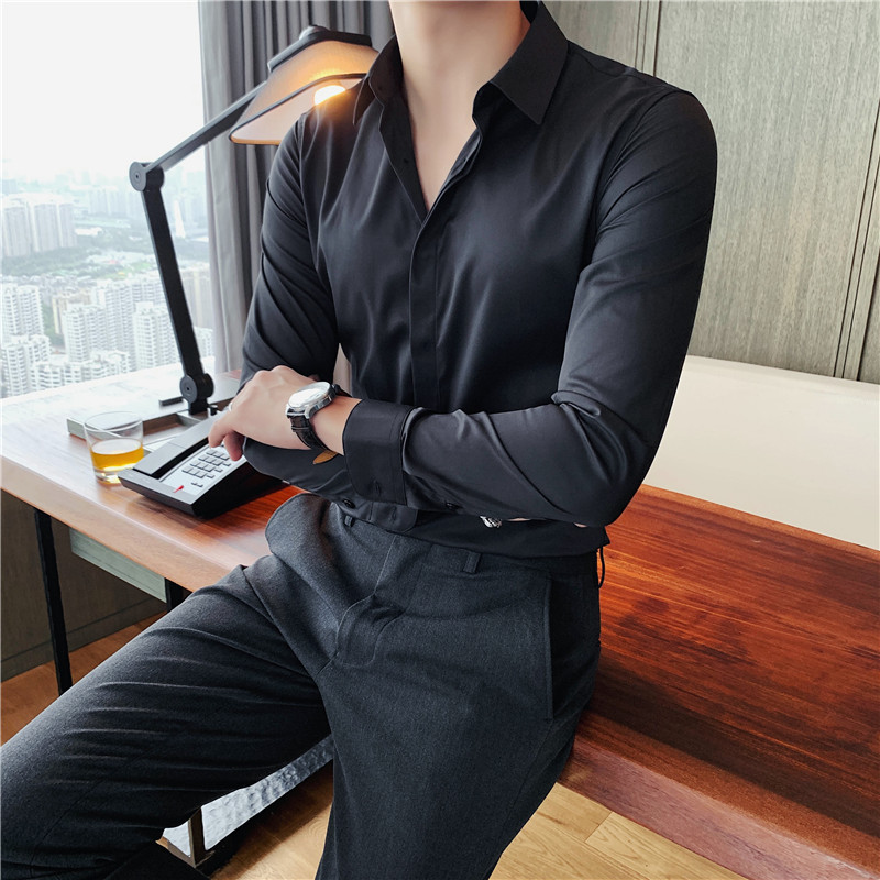 A213-C6637-2024 가을 새 스타일 남성용 잘 생긴 단색 다크 플래켓 슬림 올매치 캐주얼 긴팔 셔츠스토어 가기