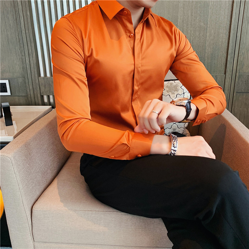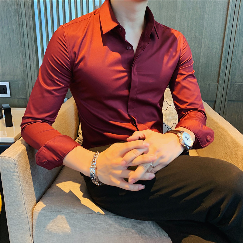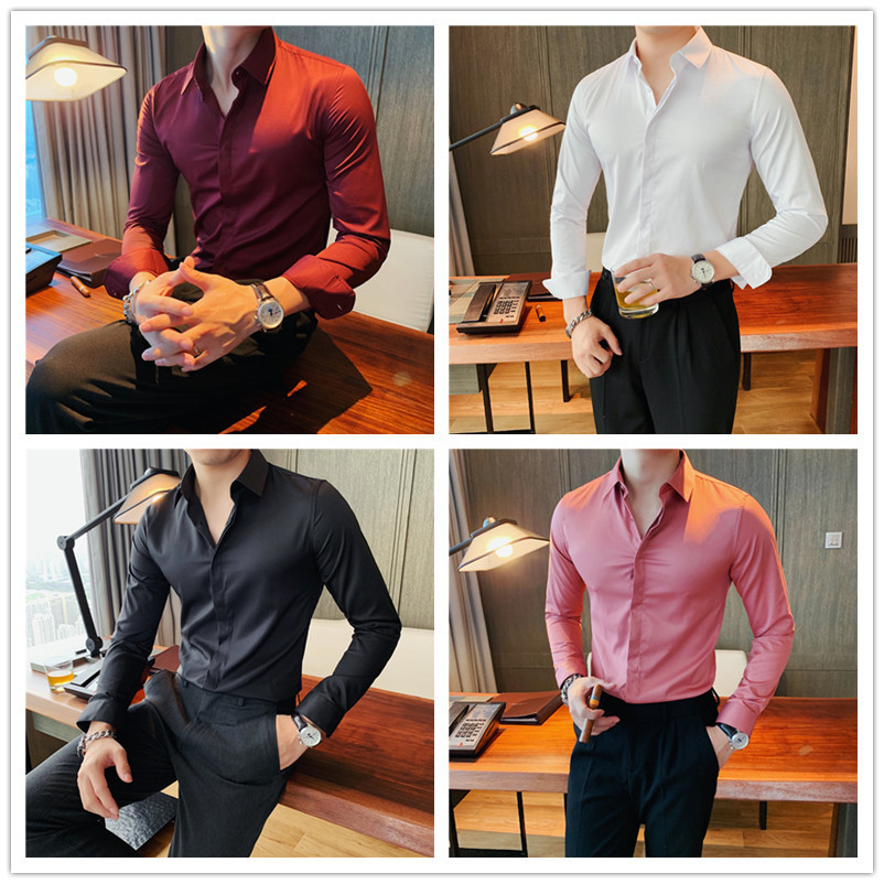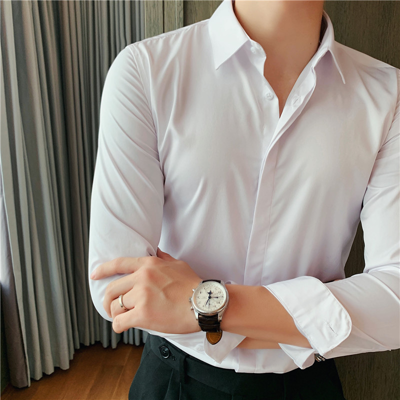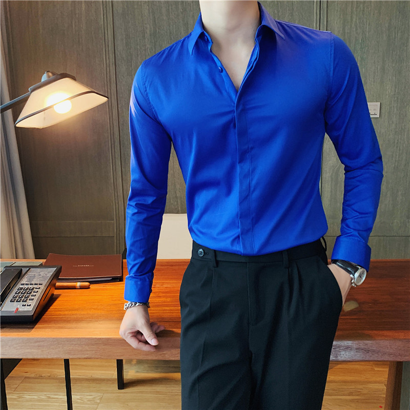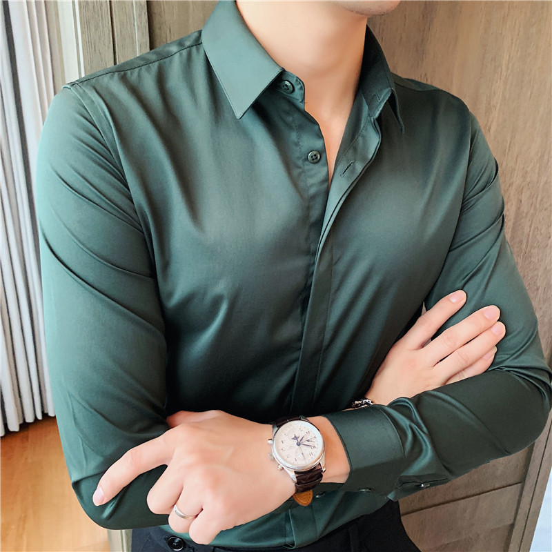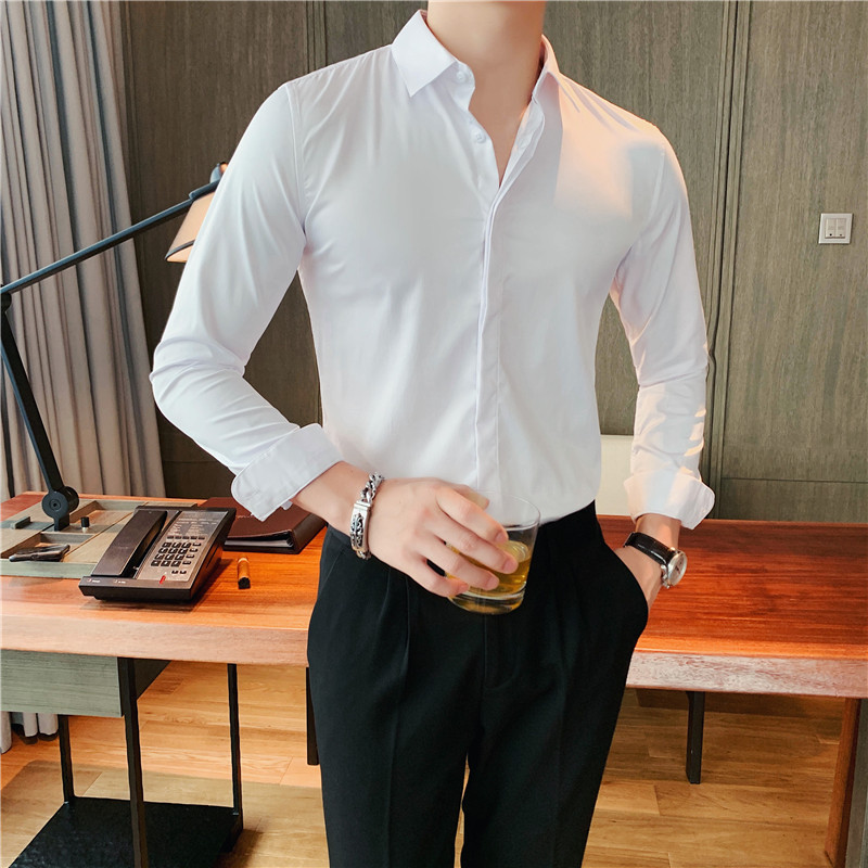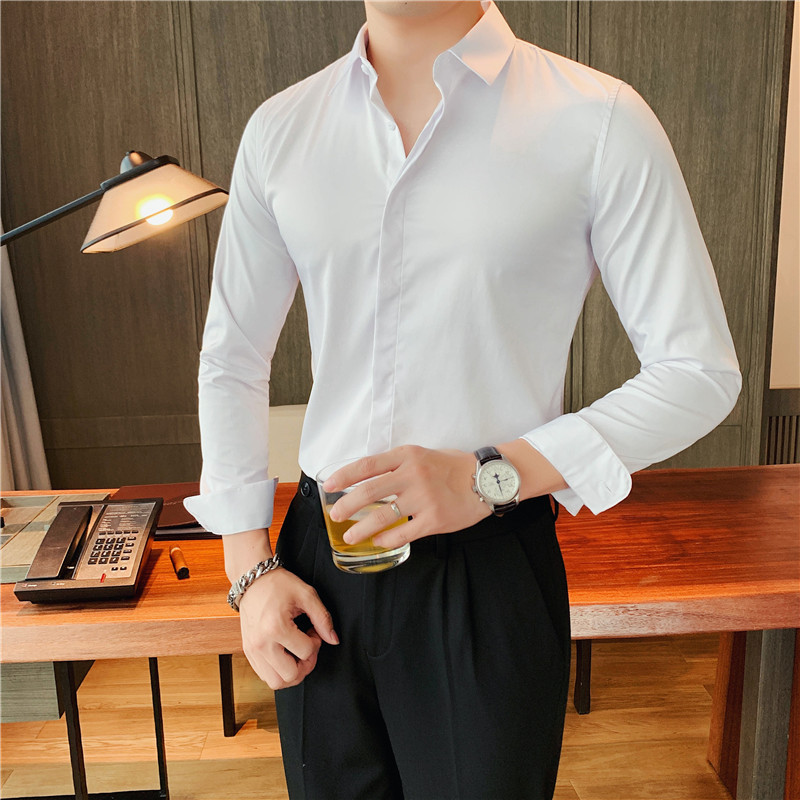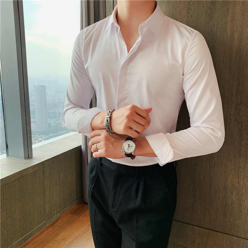 A213-C6637-2024 가을 새 스타일 남성용 잘 생긴 단색 다크 플래켓 슬림 올매치 캐주얼 긴팔 셔츠스토어 가기