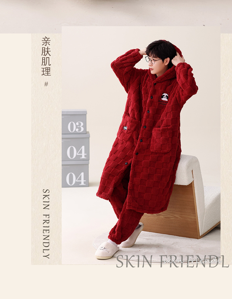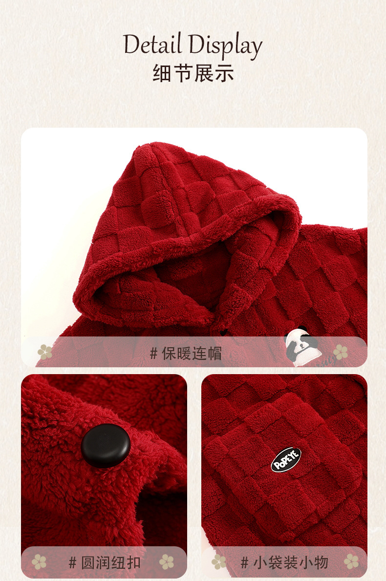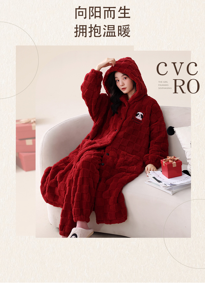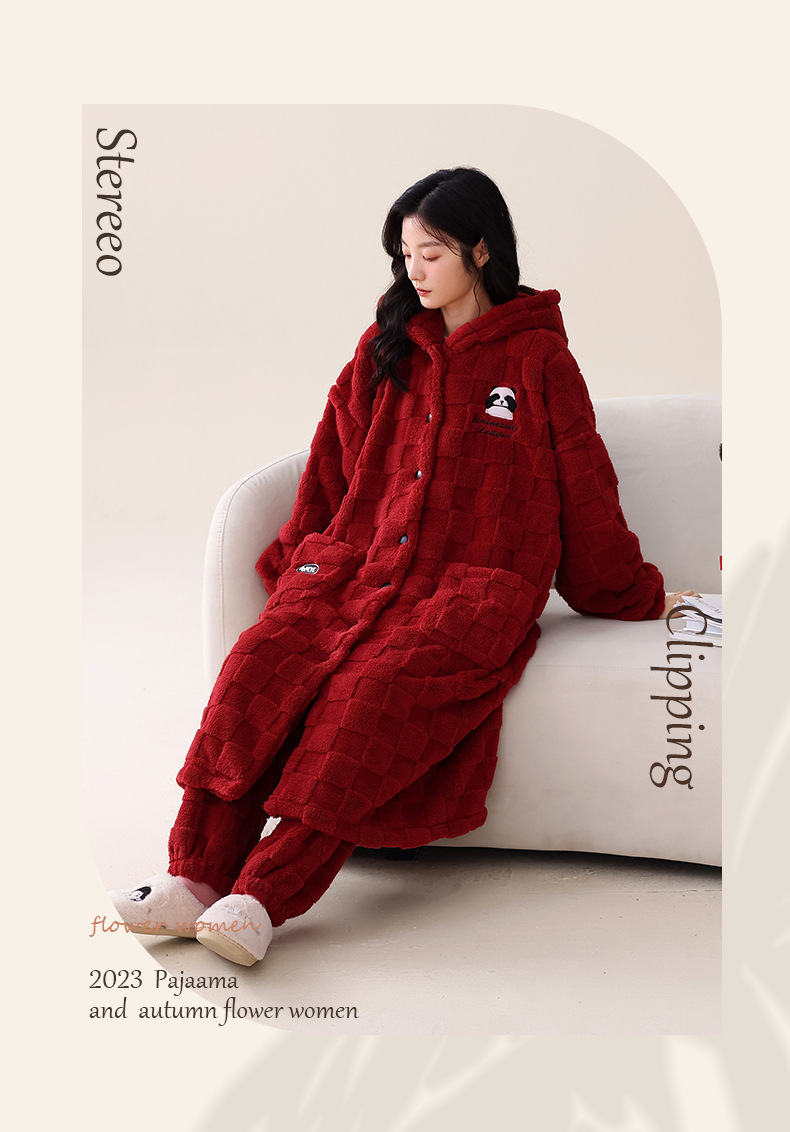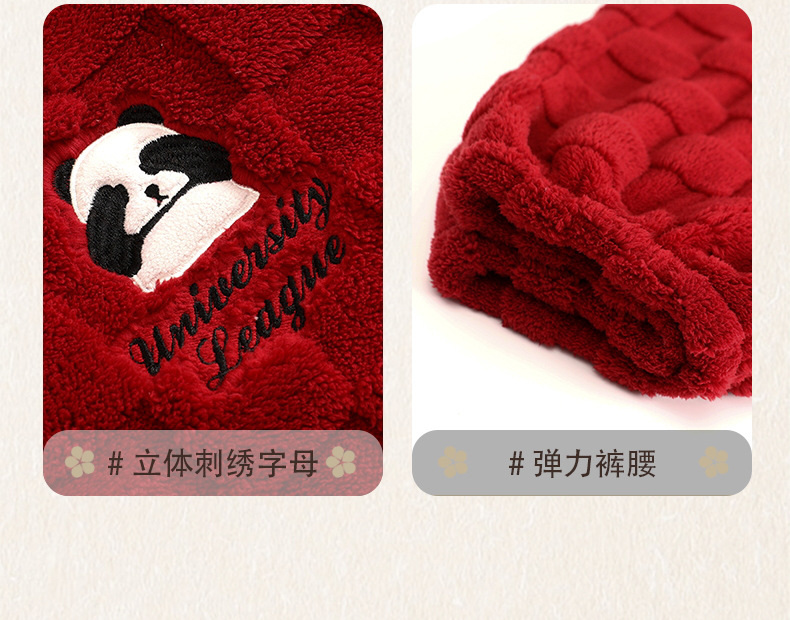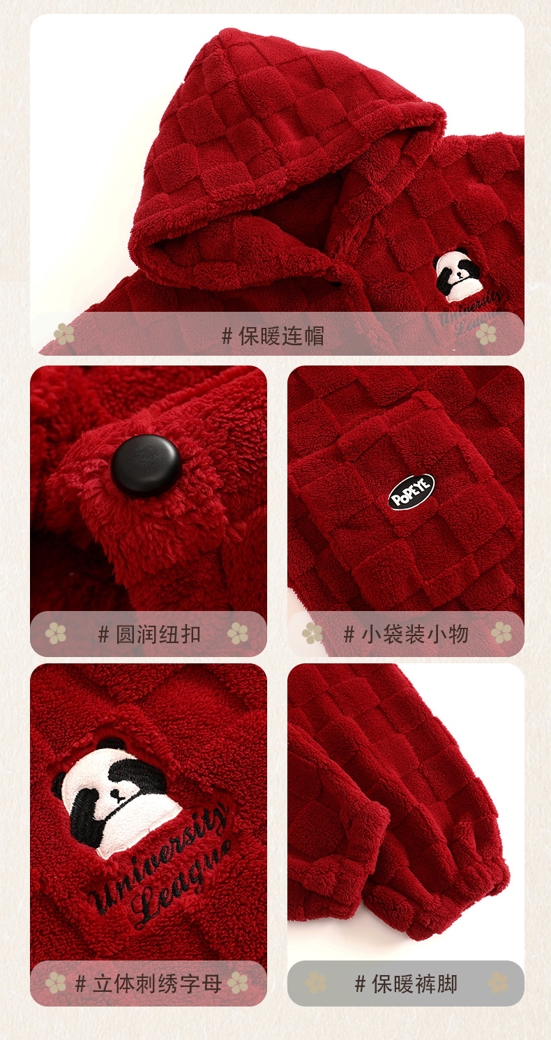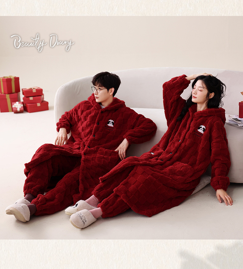 빨간 커플 잠옷 여성의 가을과 겨울 기모 두꺼운 플란넬 바지 파자마 남자 결혼식 신혼 후드 세트