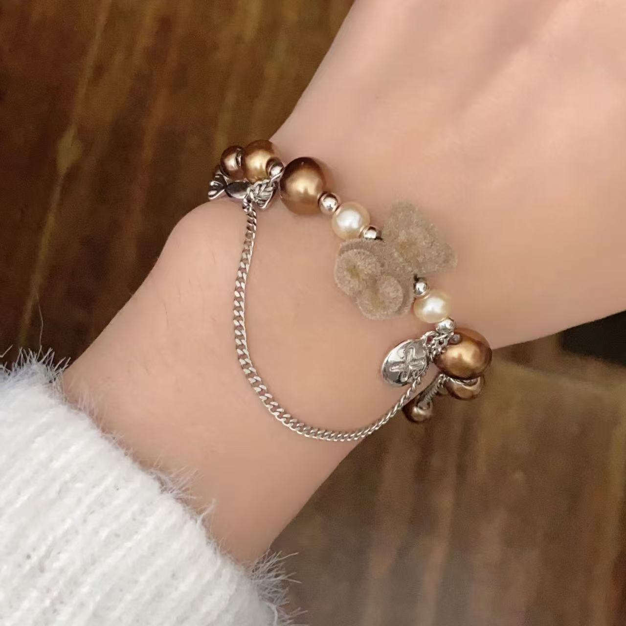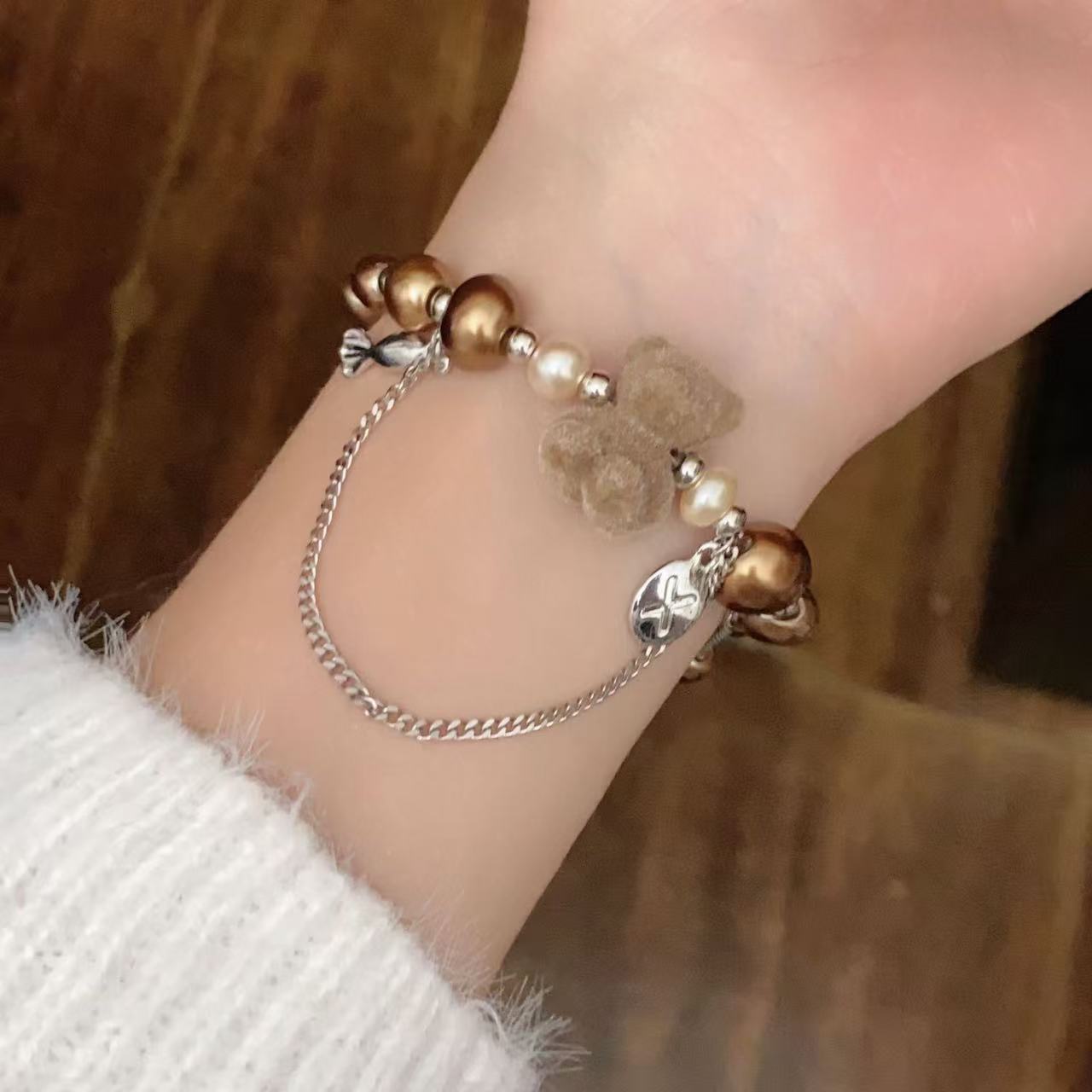 곰 구슬 대비 컬러 스티칭 팔찌 가을과 겨울 하이 엔드 여성 틈새 디자인 패션 우아한 올 매치 팔찌 액세서리스토어 가기