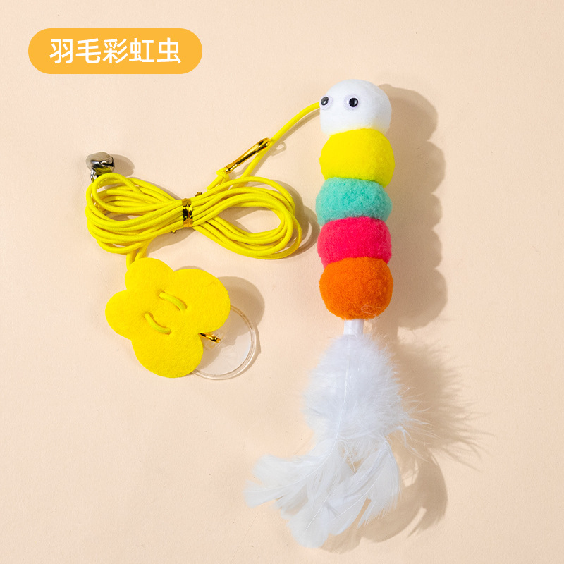 고양이 장난감 자기 구호 스윙 교수형 문 매달린 탄성 깃털 고양이 스틱 벨 작은 마우스 고양이 용품